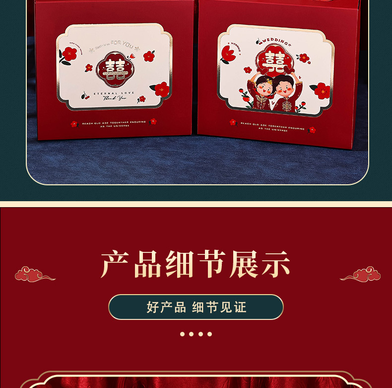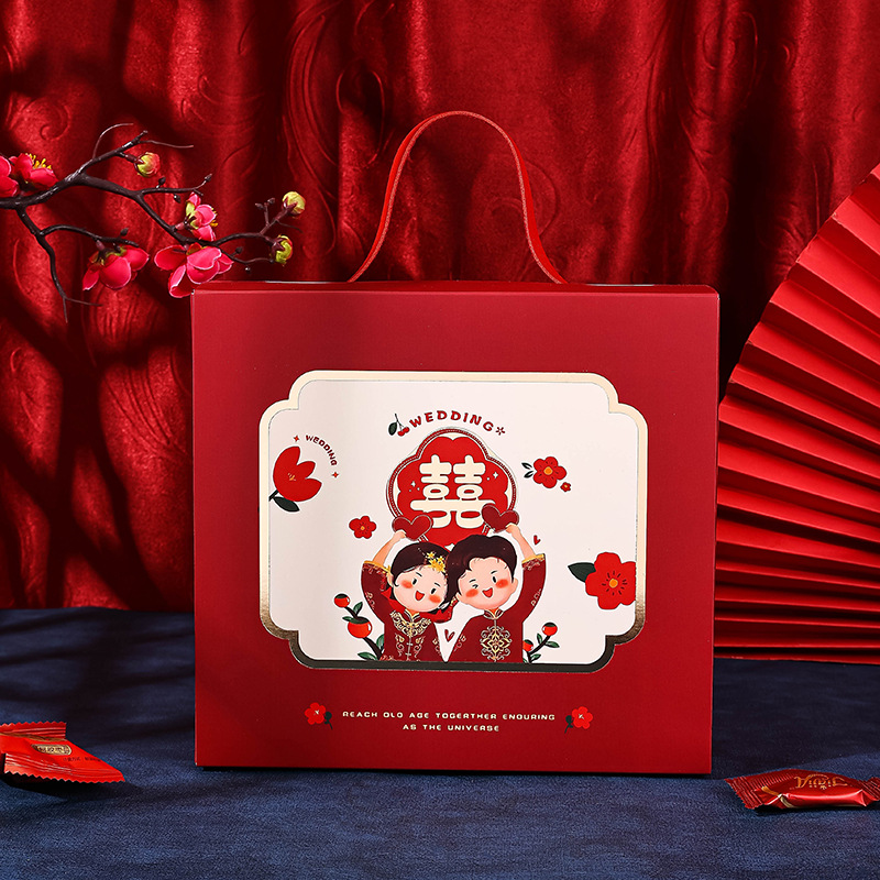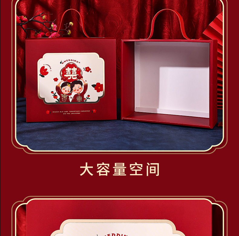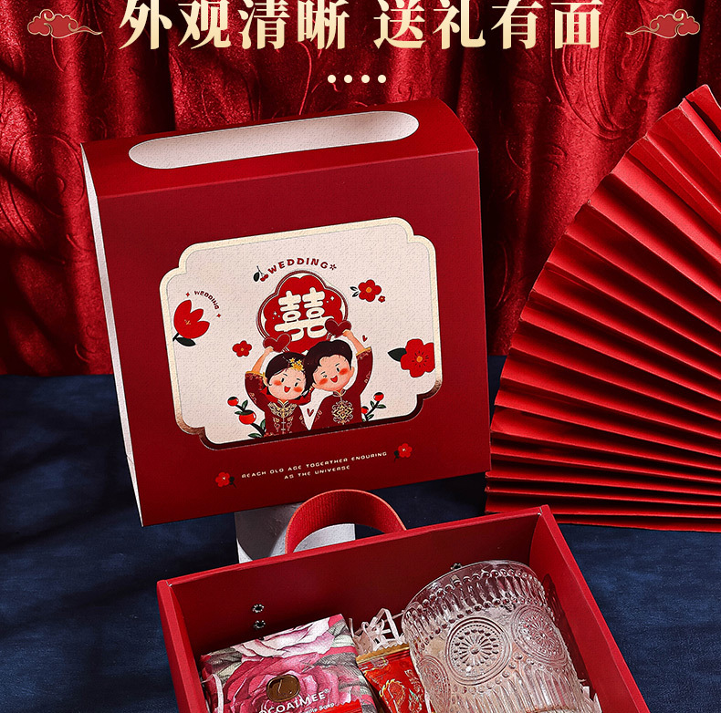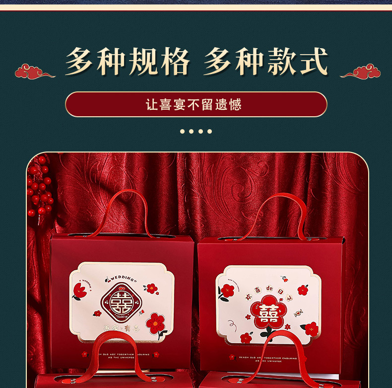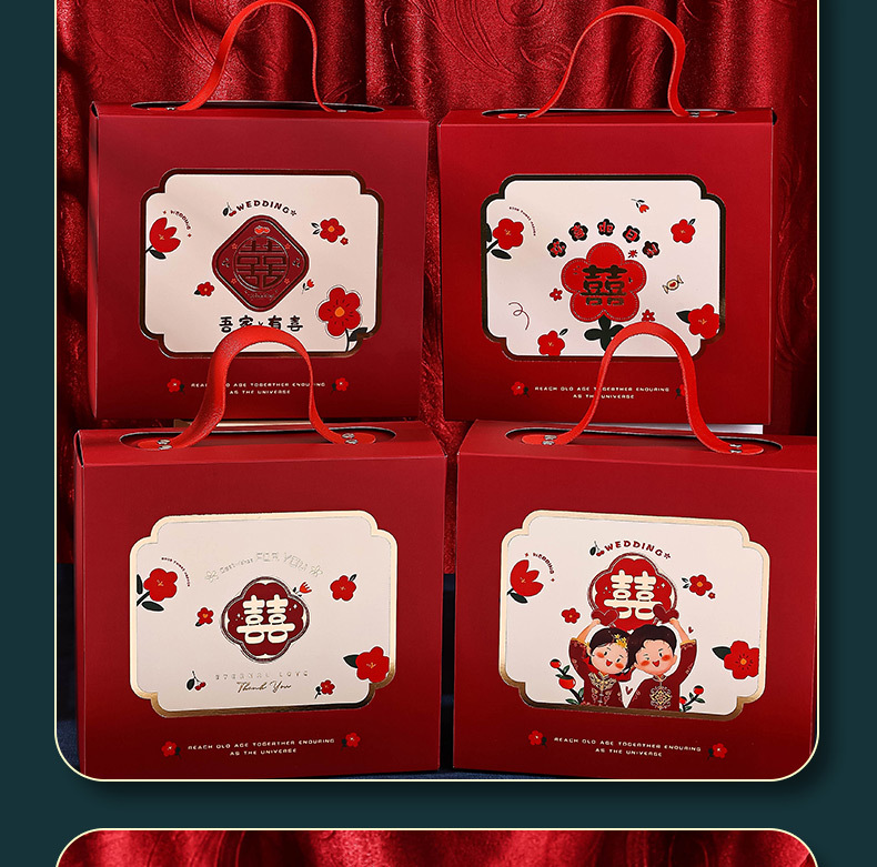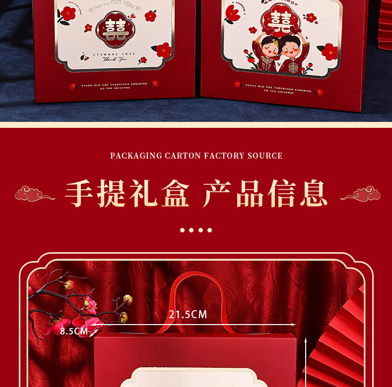 结婚伴手礼盒中式婚庆回礼礼盒手提喜糖盒空盒子包装盒批发囍盒