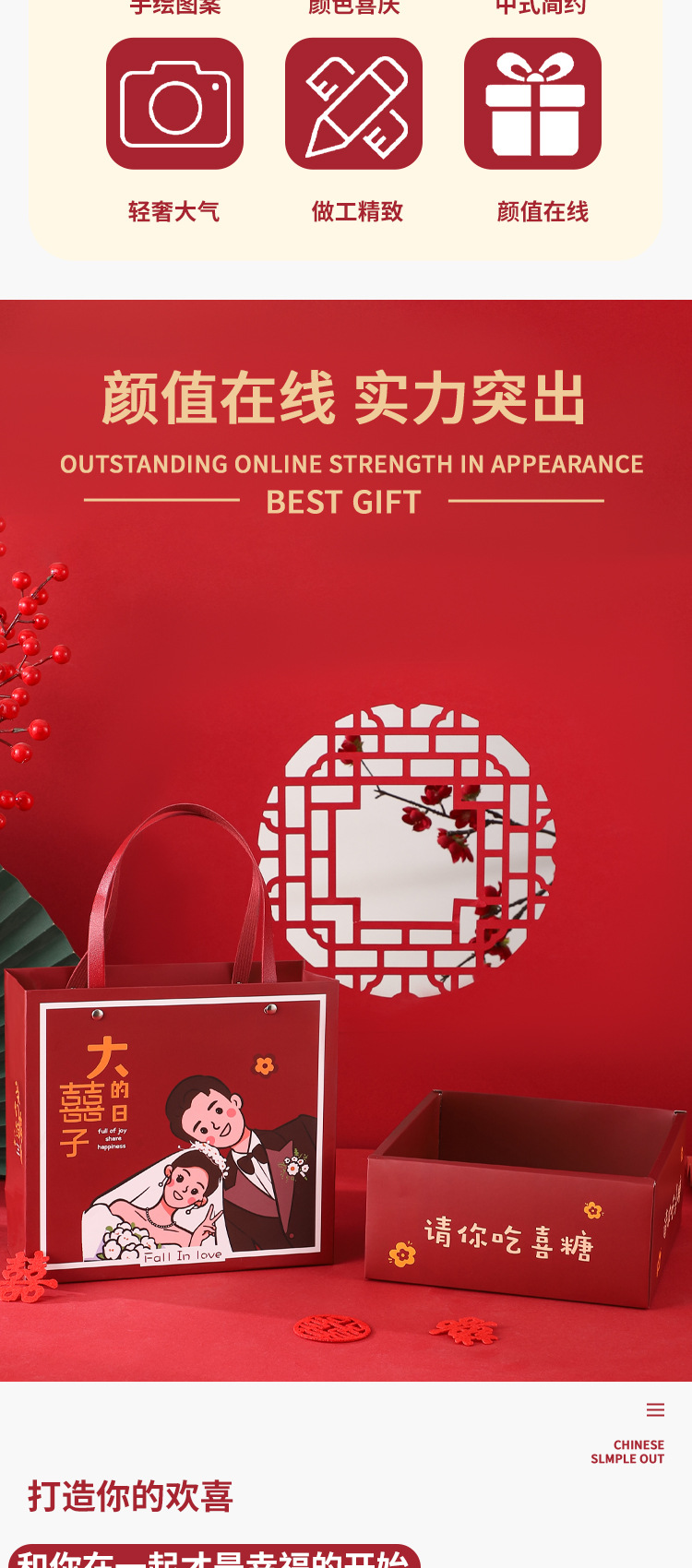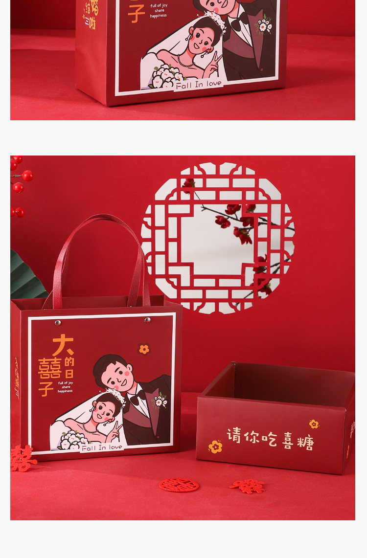 中式结婚喜糖盒婚礼物盒伴娘伴手礼盒抽屉盒盒盒空盒创意婚庆礼盒