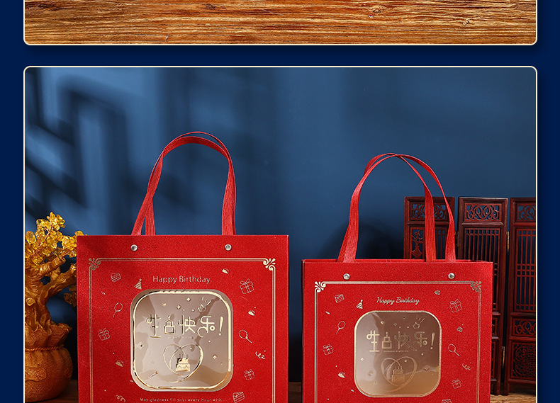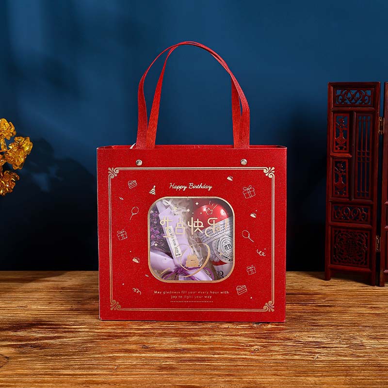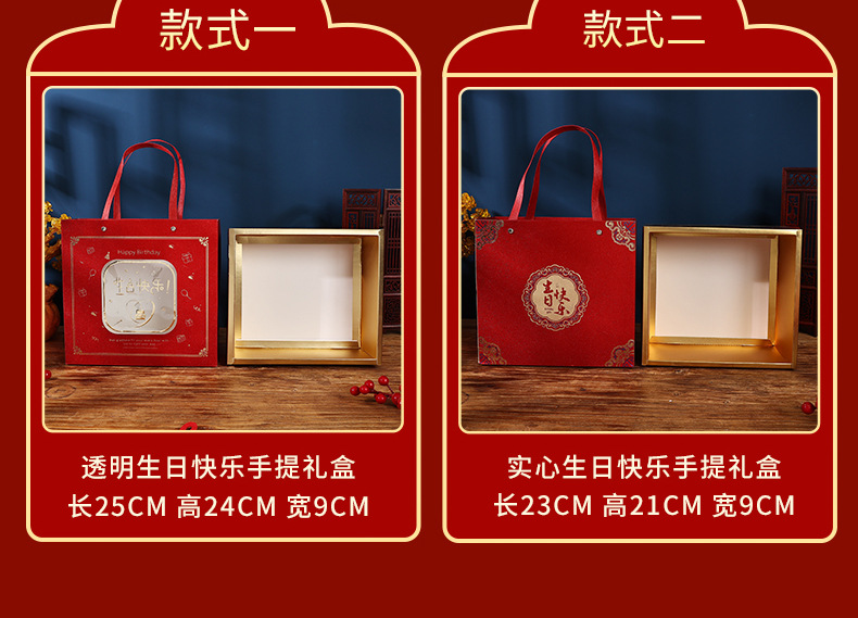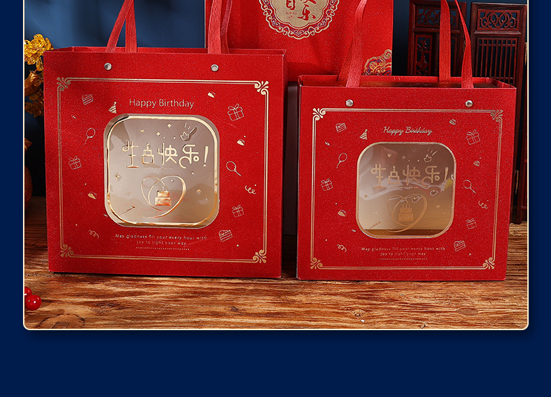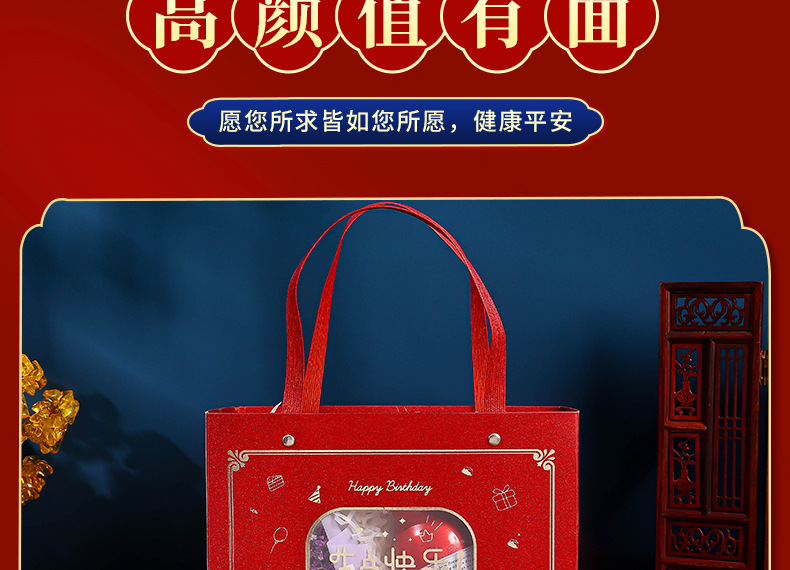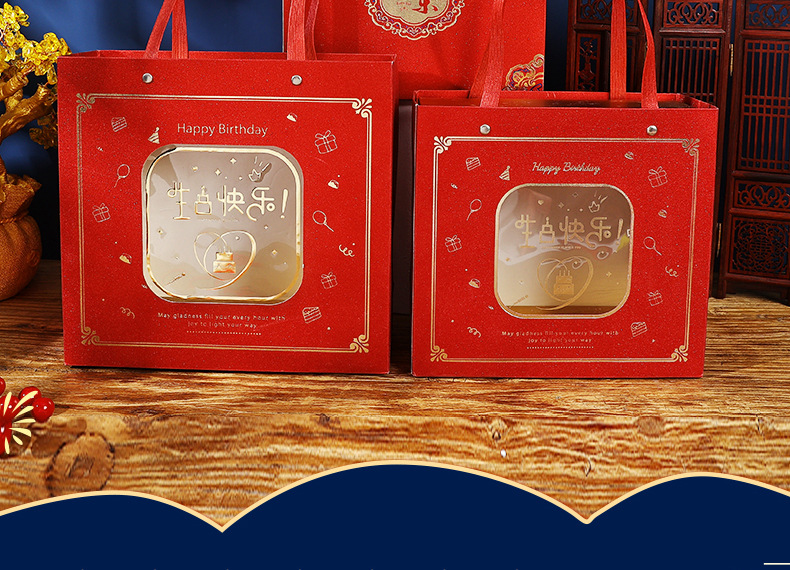 2024款生日快乐伴手礼盒磨砂款透明开窗盒子国风喜糖盒批发轻奢风
