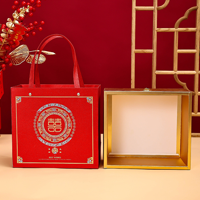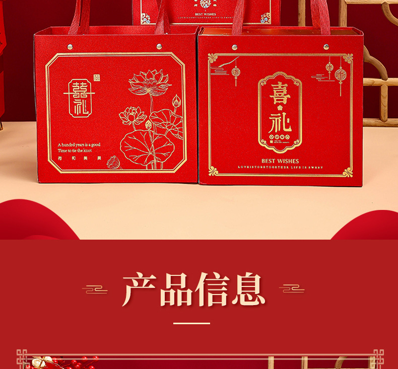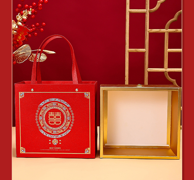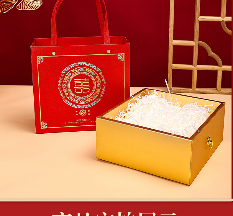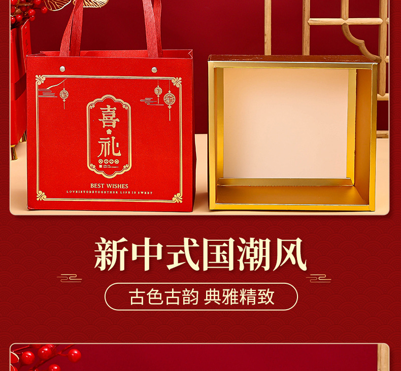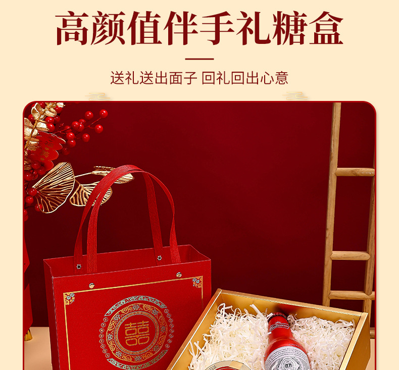 中式婚庆伴手礼礼盒喜礼款喜糖袋结婚回礼喜糖盒双色金婚庆专用