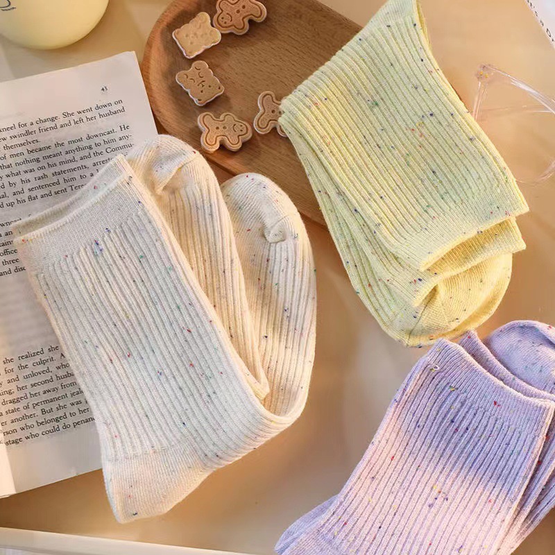 同款满天星袜子女可爱中筒袜学生袜点子纱细条纯色袜子女简约百搭