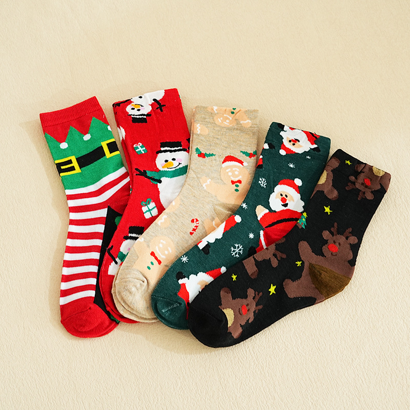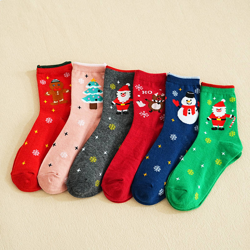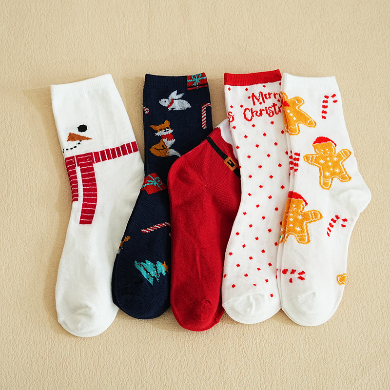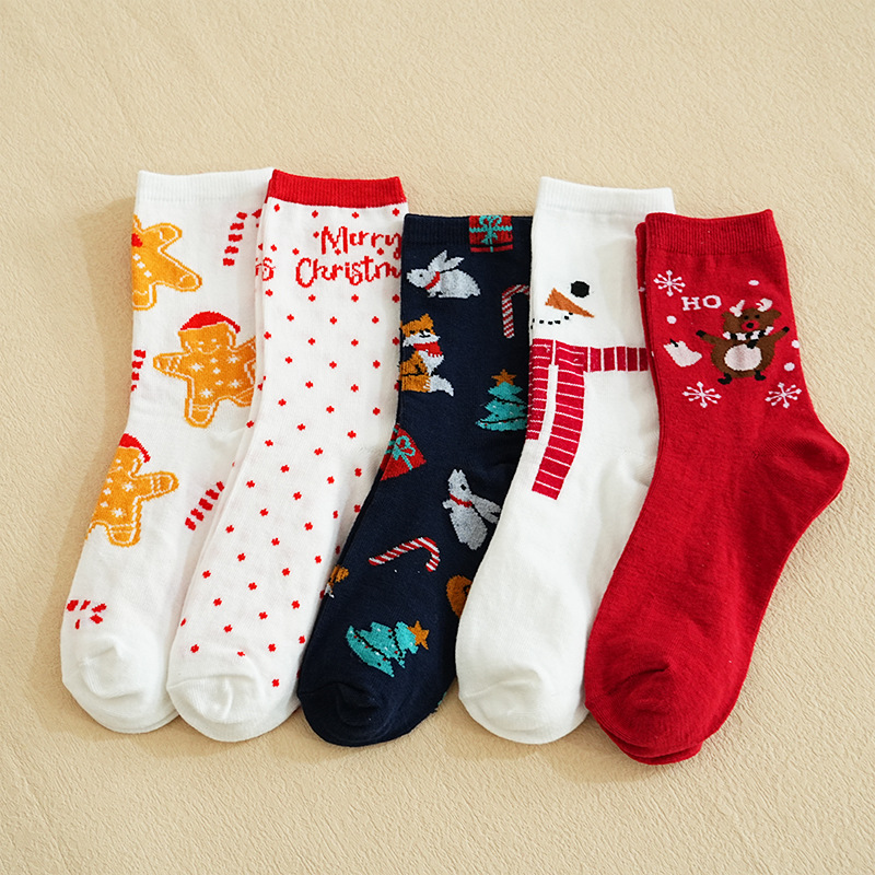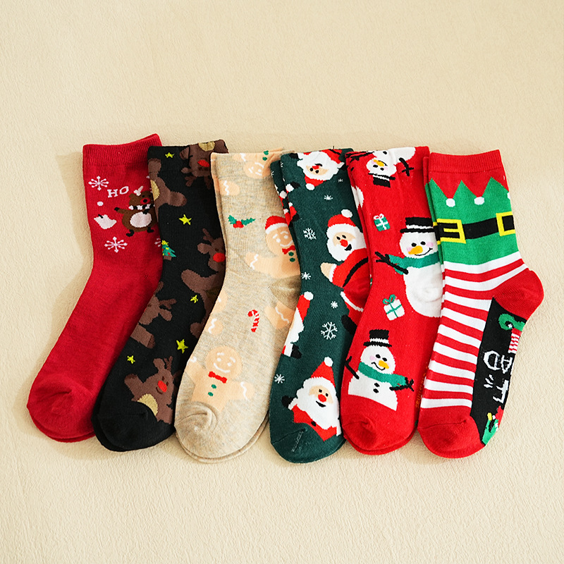 秋冬款 卡通圣诞袜子 圣诞袜麋鹿中筒款袜圣诞女袜跨境外贸