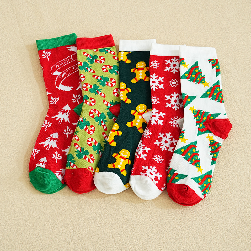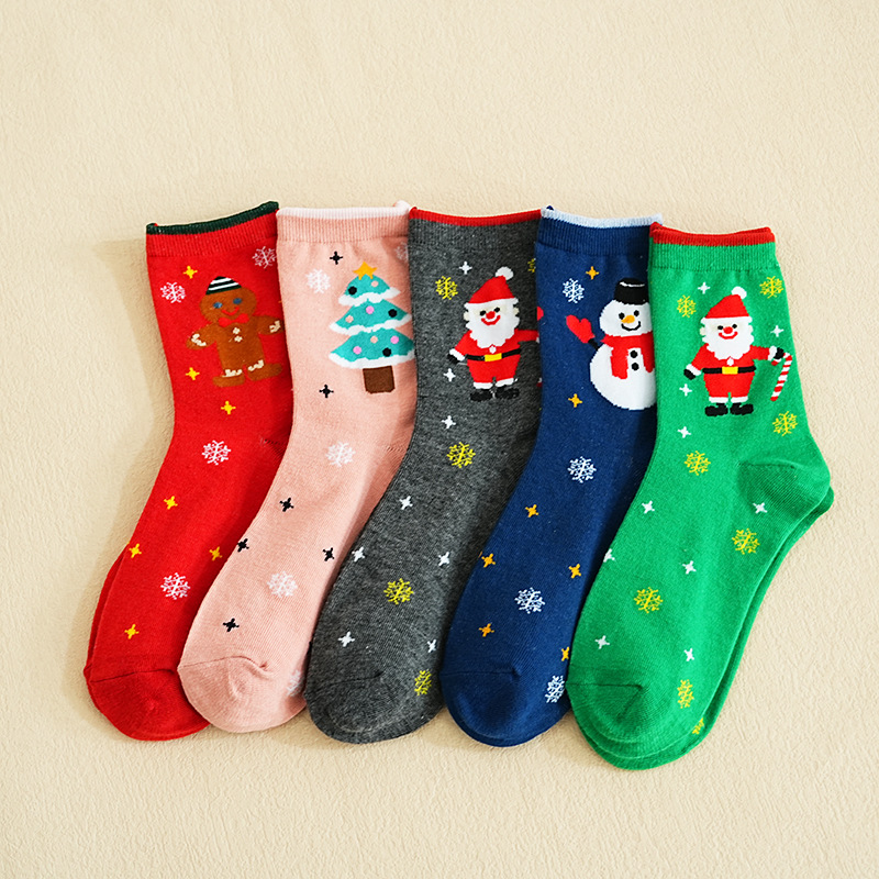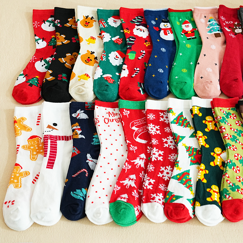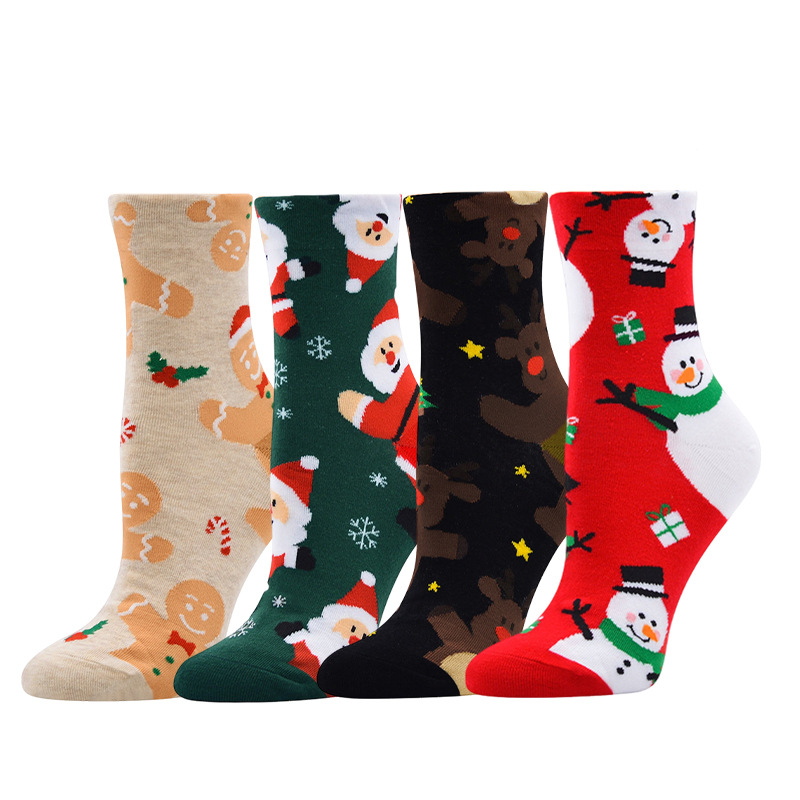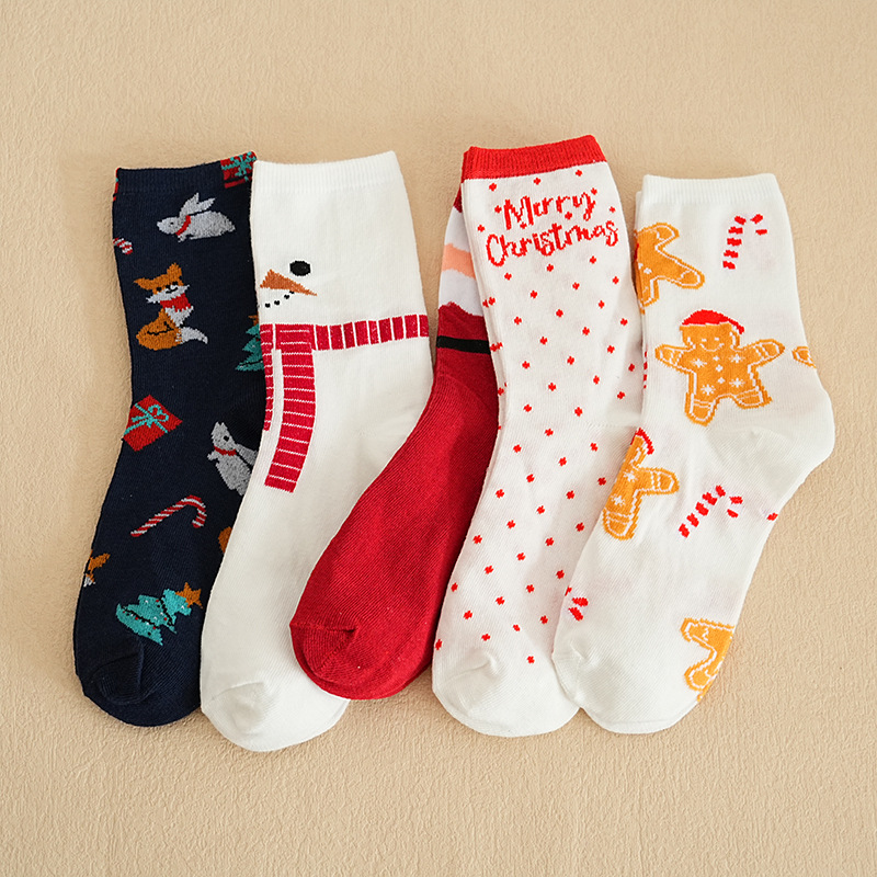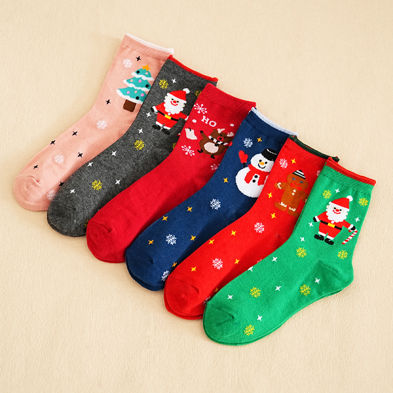 秋冬款 卡通圣诞袜子 圣诞袜麋鹿中筒款袜圣诞女袜跨境外贸
