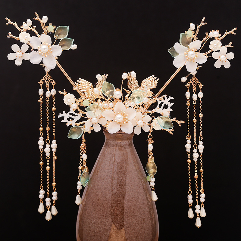 汉服头饰流苏步摇发簪古风超仙发冠发梳对簪全套古装仙气簪子发饰