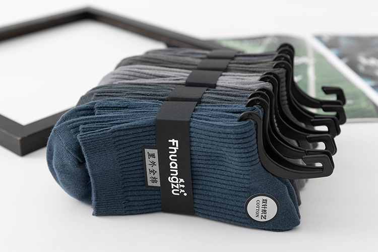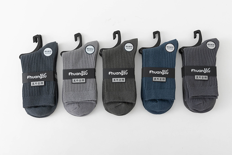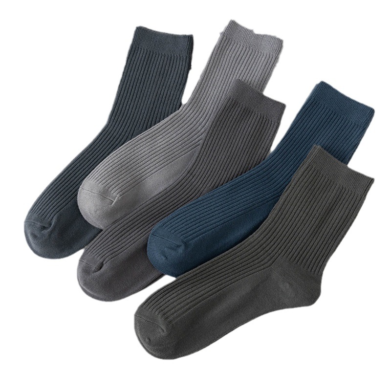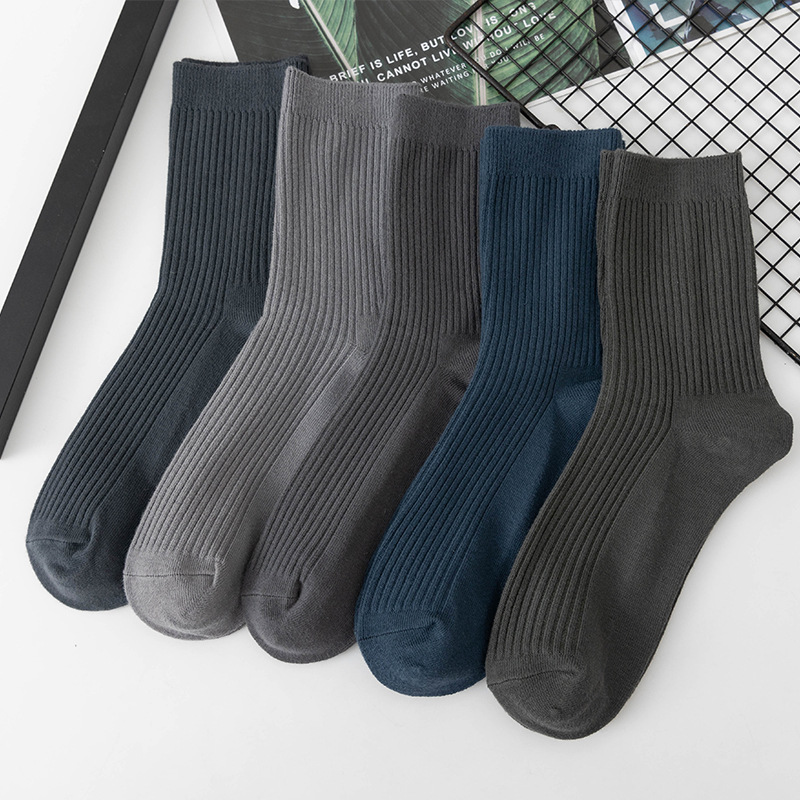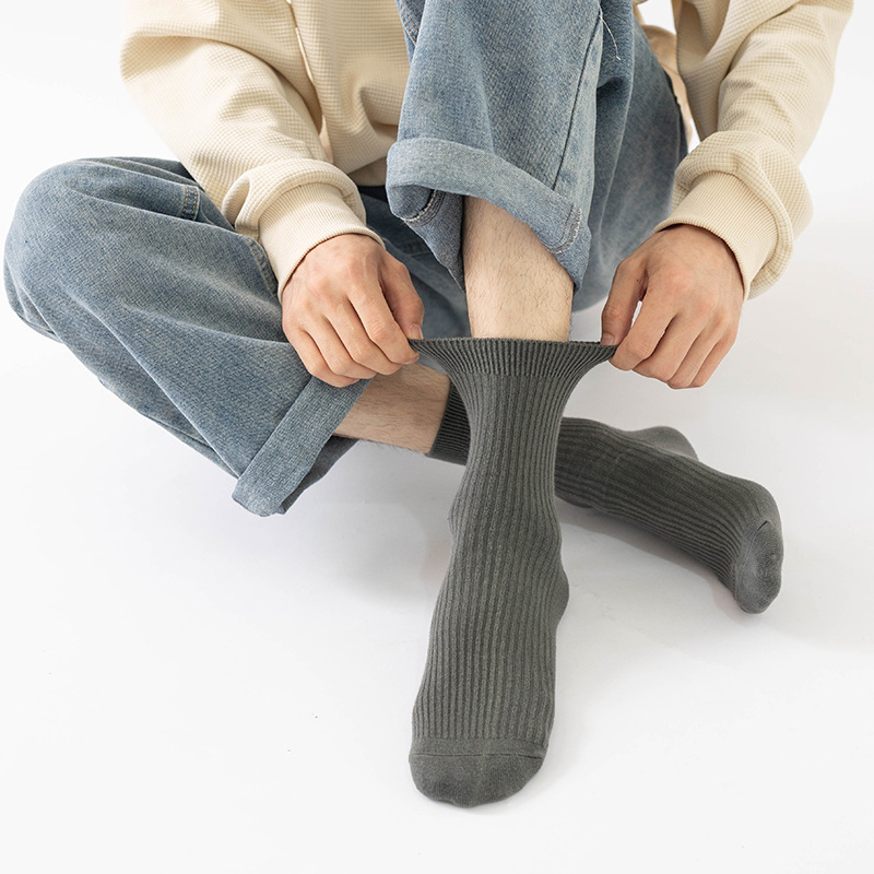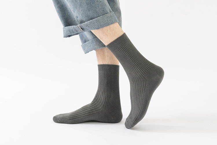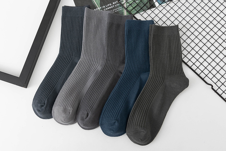 秋冬双针加厚男士商务袜深色系纯色精梳棉中筒袜竖条无骨休闲男袜