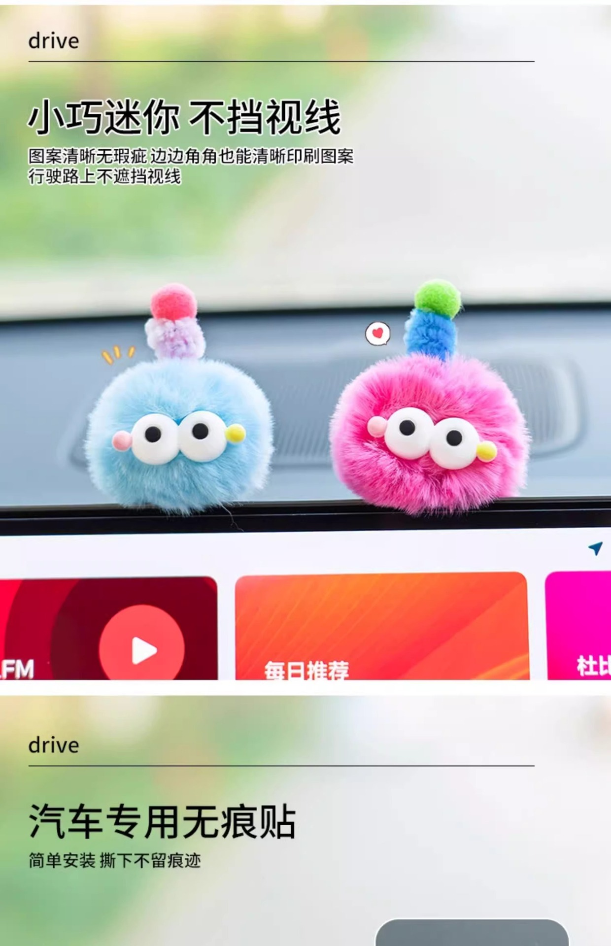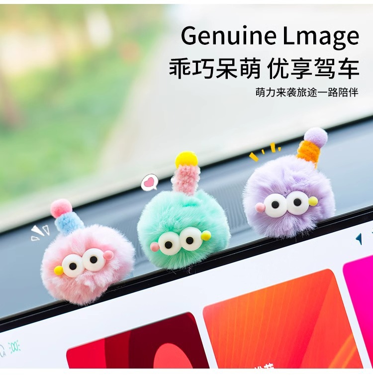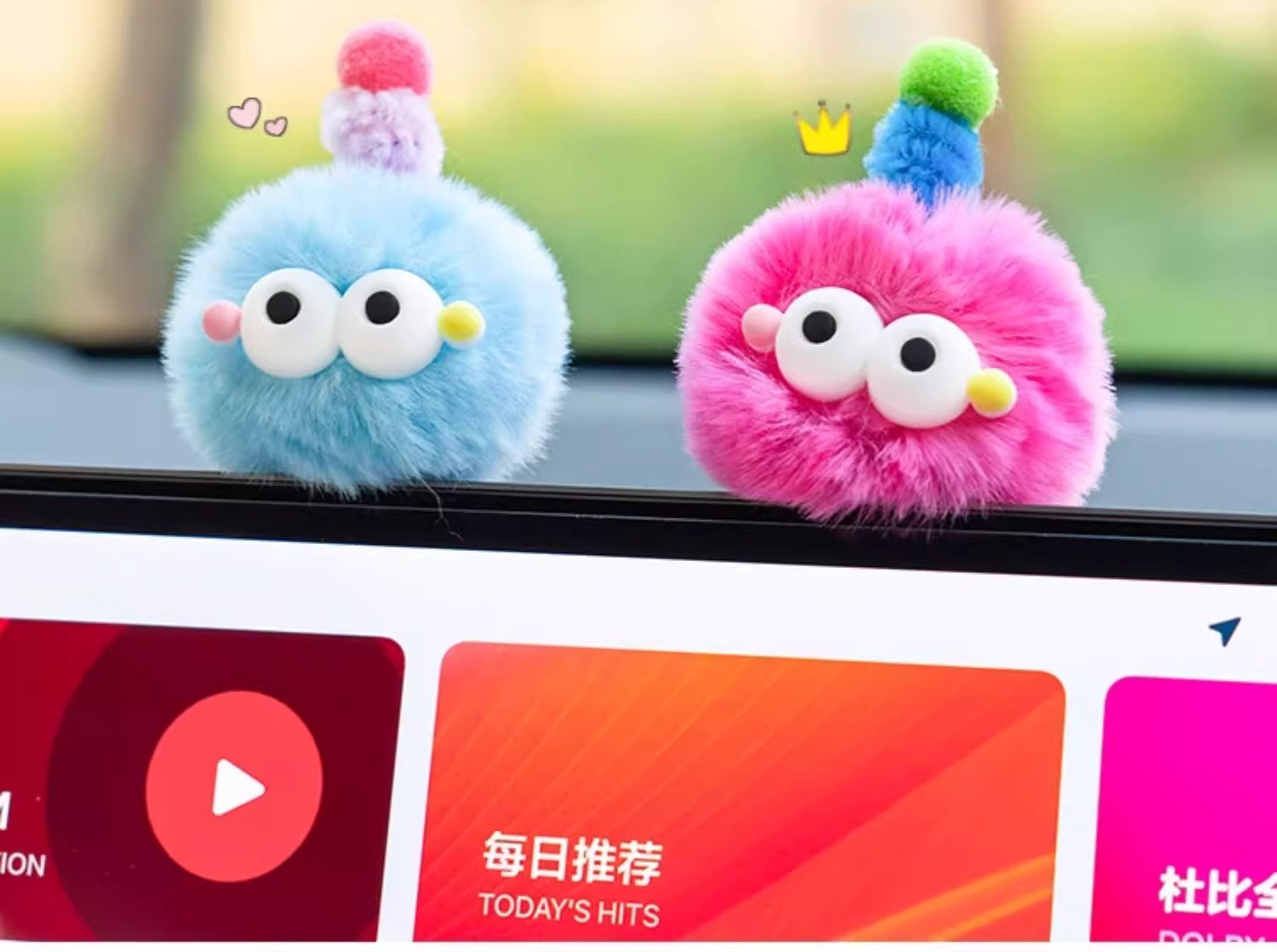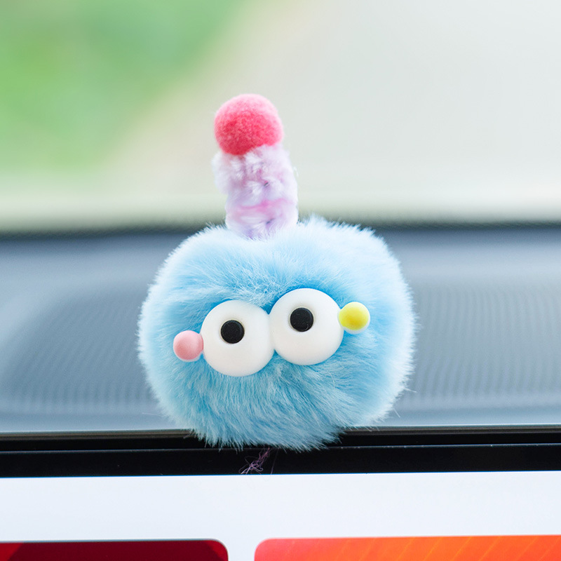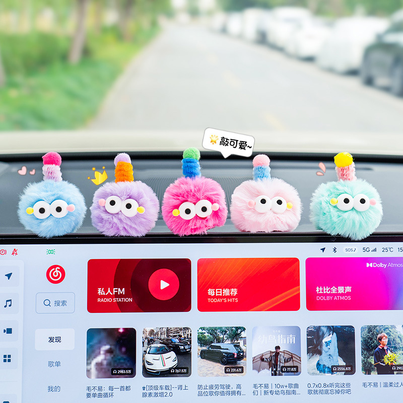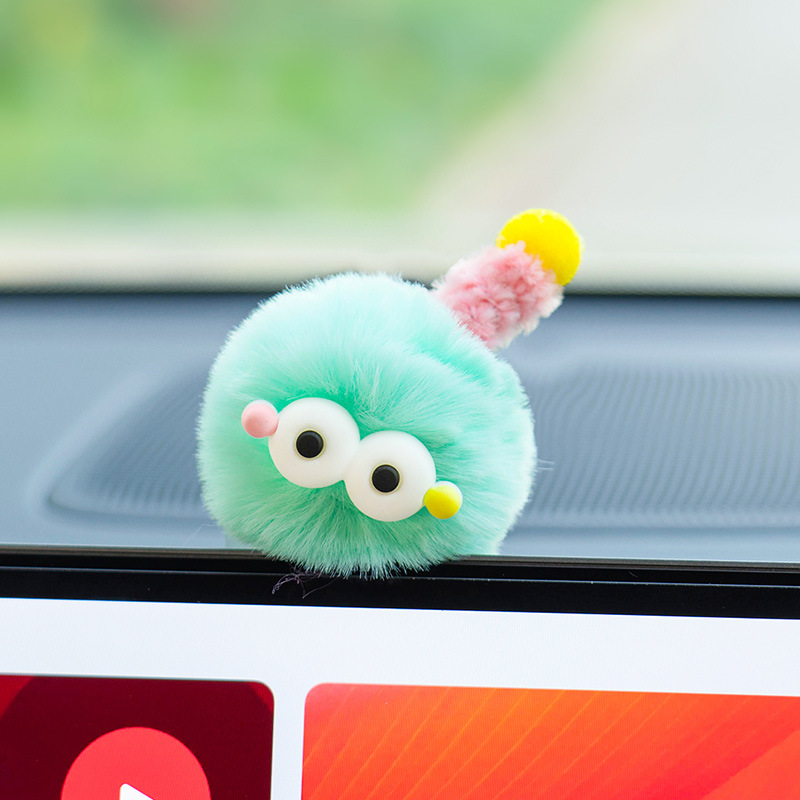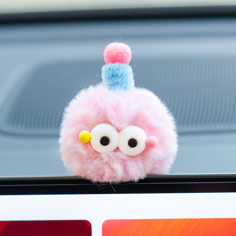 毛球小怪兽车载摆件创意可爱玩偶汽车中控台车上天线小怪装饰摆件