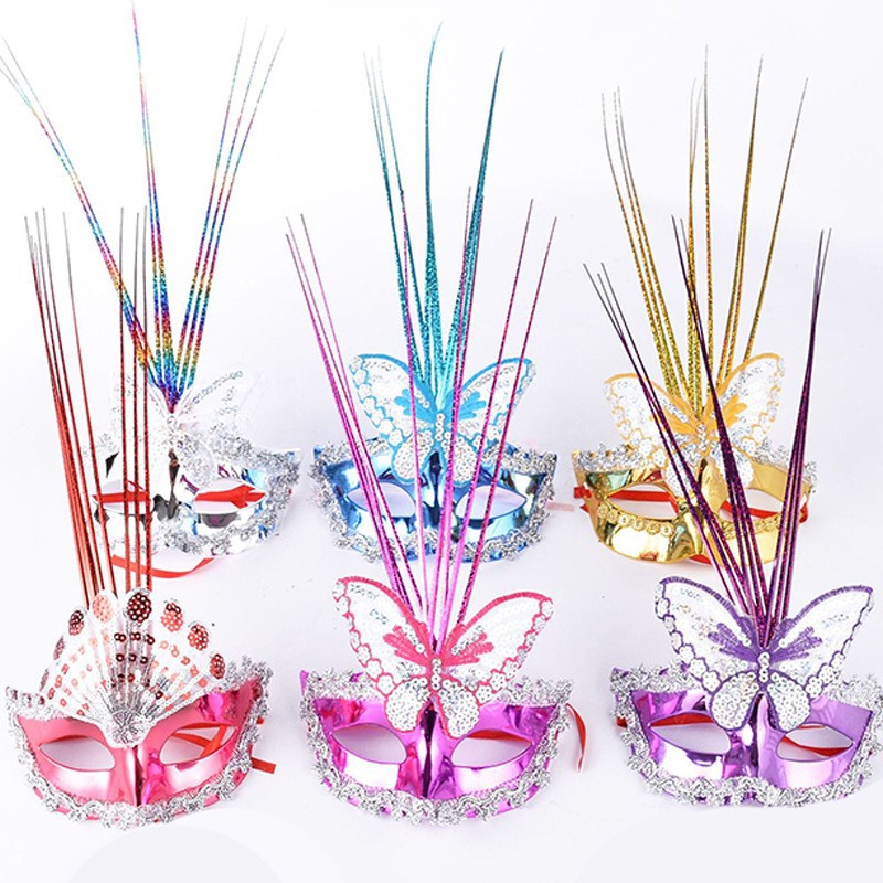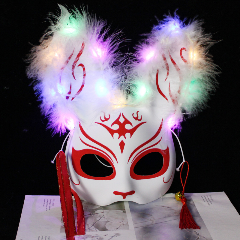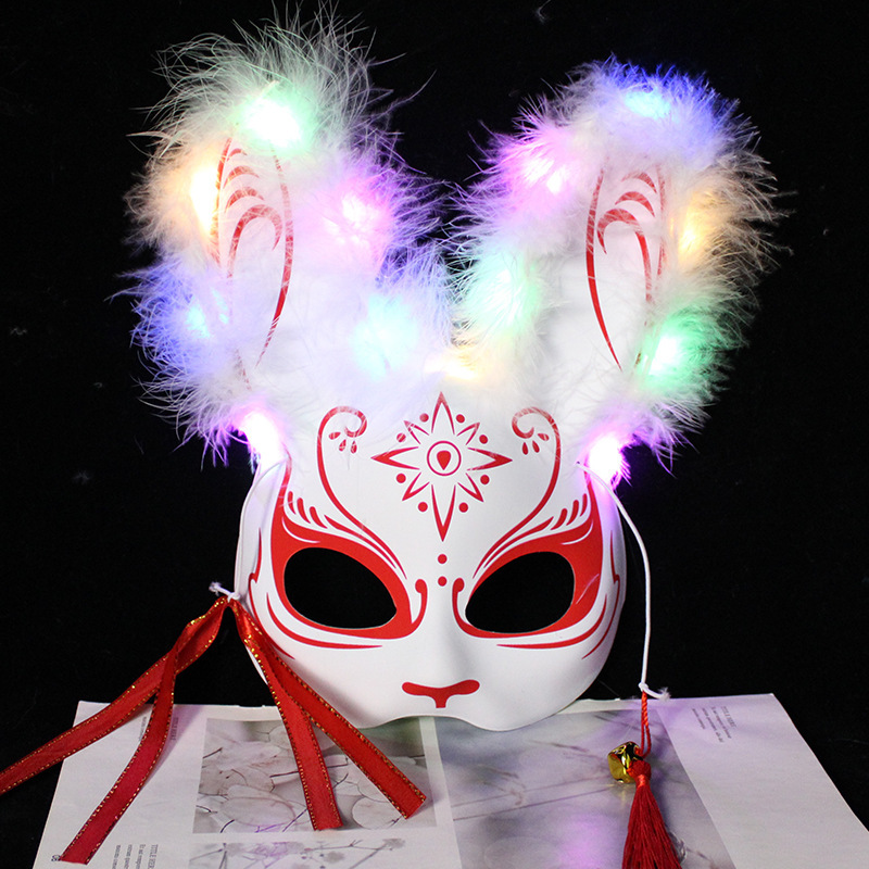 发光半脸面具羽毛兔子面具动漫狐狸舞会装扮狐狸兔子地摊批发玩具
