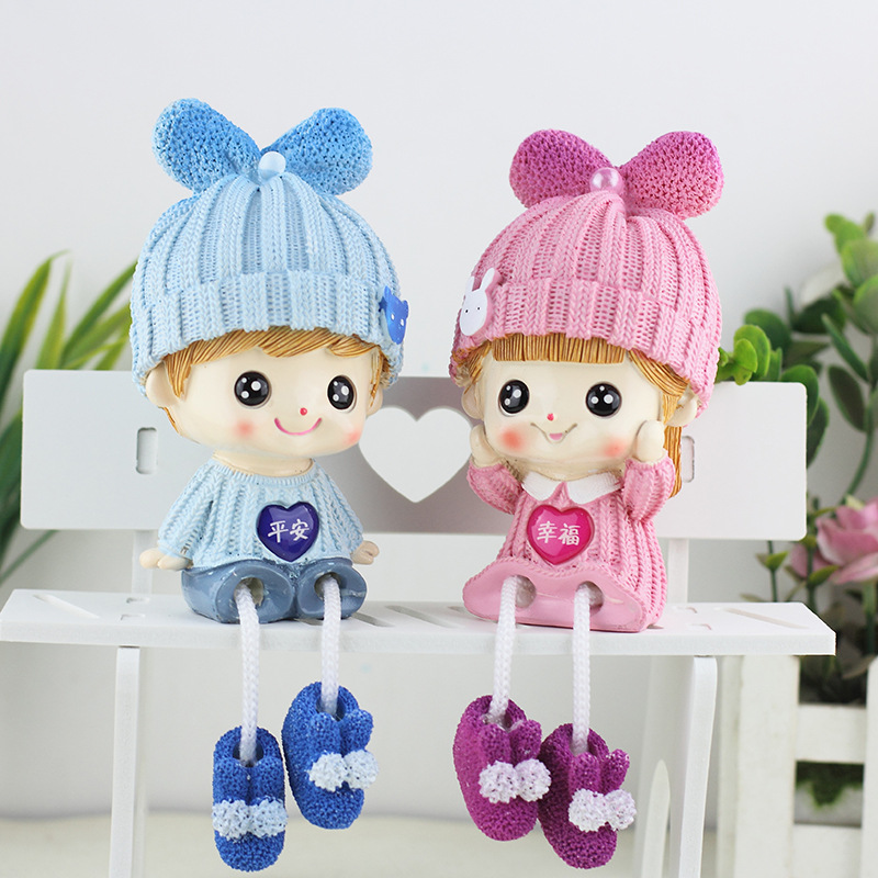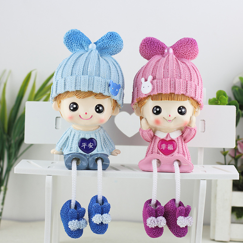 创意情侣吊脚娃娃结婚生日礼物少女心树脂工艺品客厅房间装饰摆件