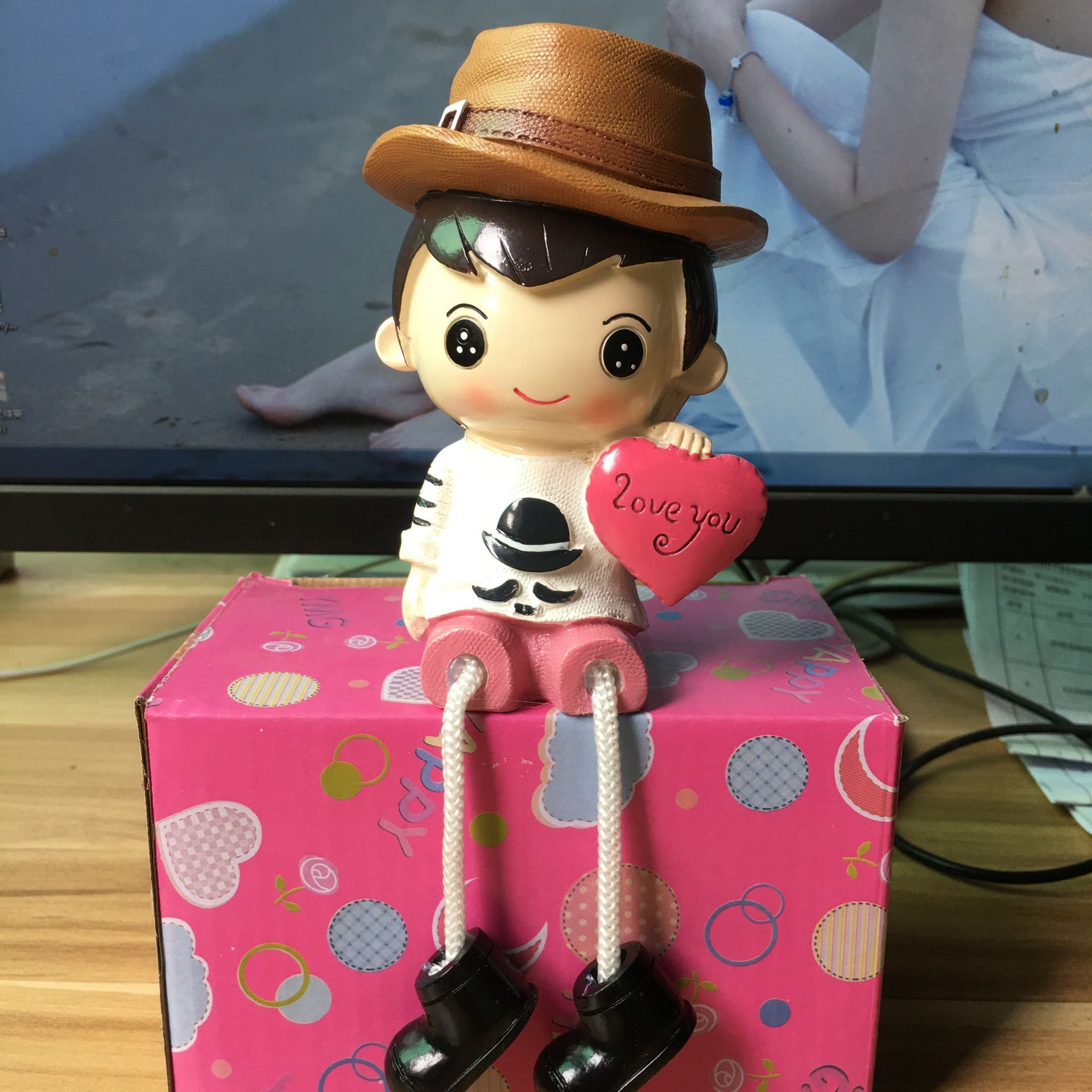 可爱卡通树脂情侣吊脚娃娃客厅卧室儿童房办公室桌面摆件送人礼物