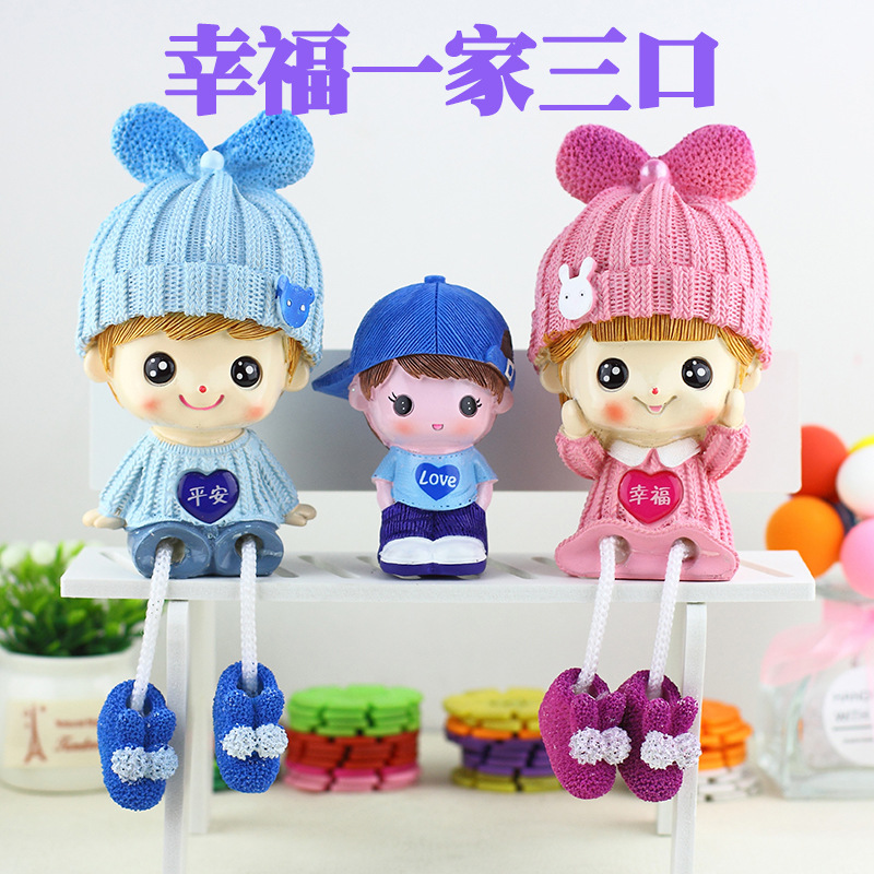 平安幸福一家人吊脚娃娃情侣结婚礼物创意树脂工艺品客厅卧室摆件