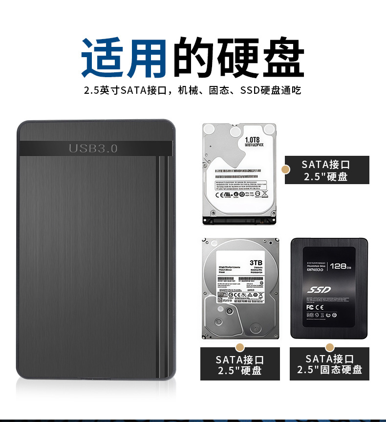 USB3.0拉丝硬盘盒2.5寸SSD机械固态硬盘盒工厂直销电脑移动硬盘盒