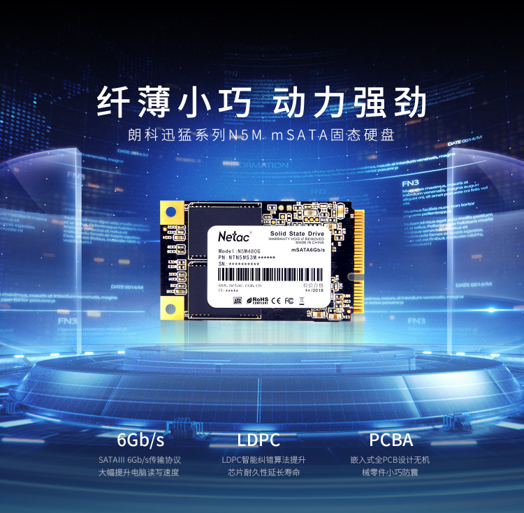朗科Netac固态硬盘M-SATA3接口256GB笔记本台式机工控机升级SSD