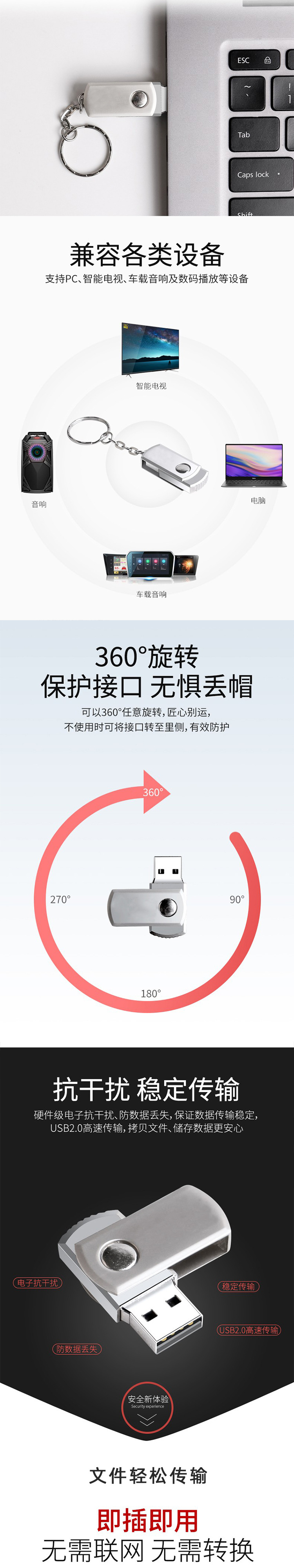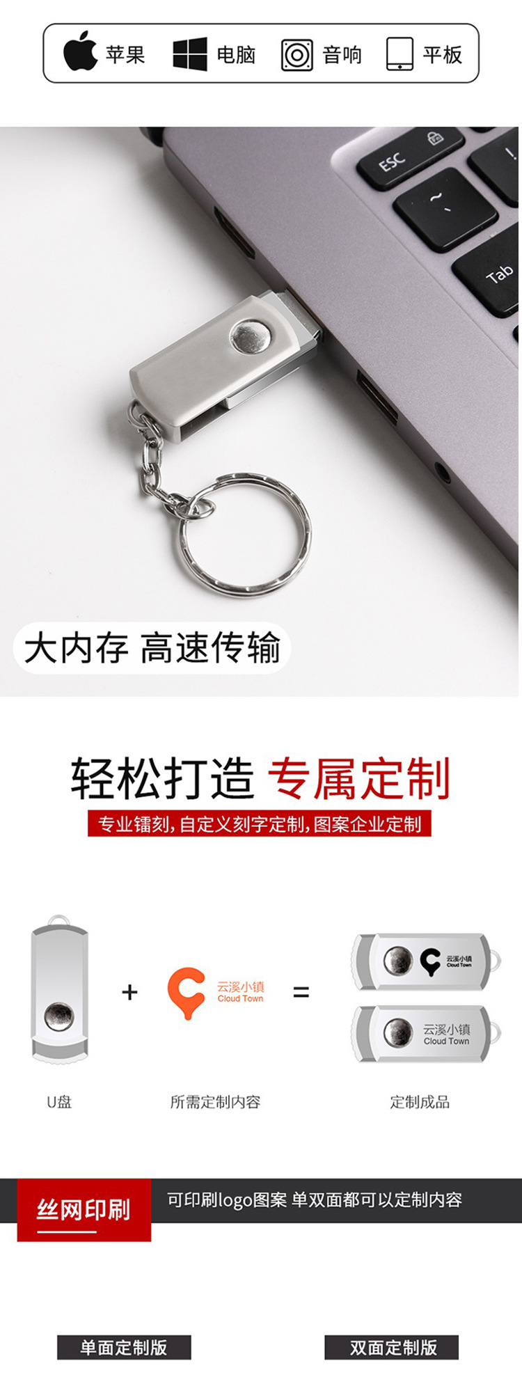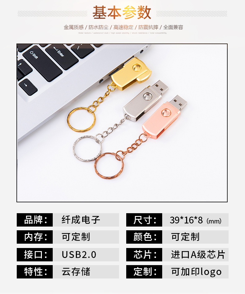 钥匙扣旋转u盘 刻字logo金属礼品车载U盘8/32/64/128g小胖子优盘