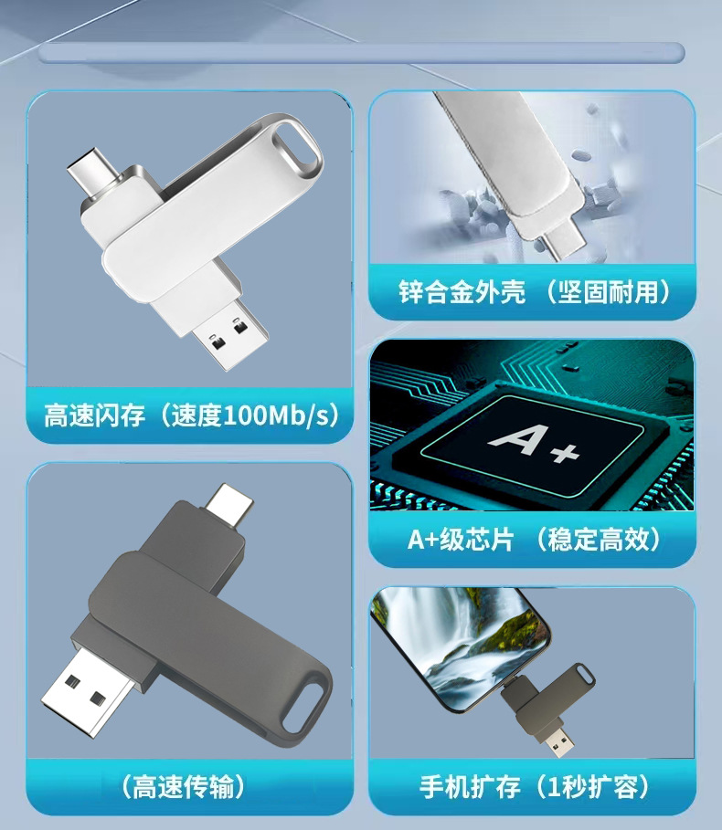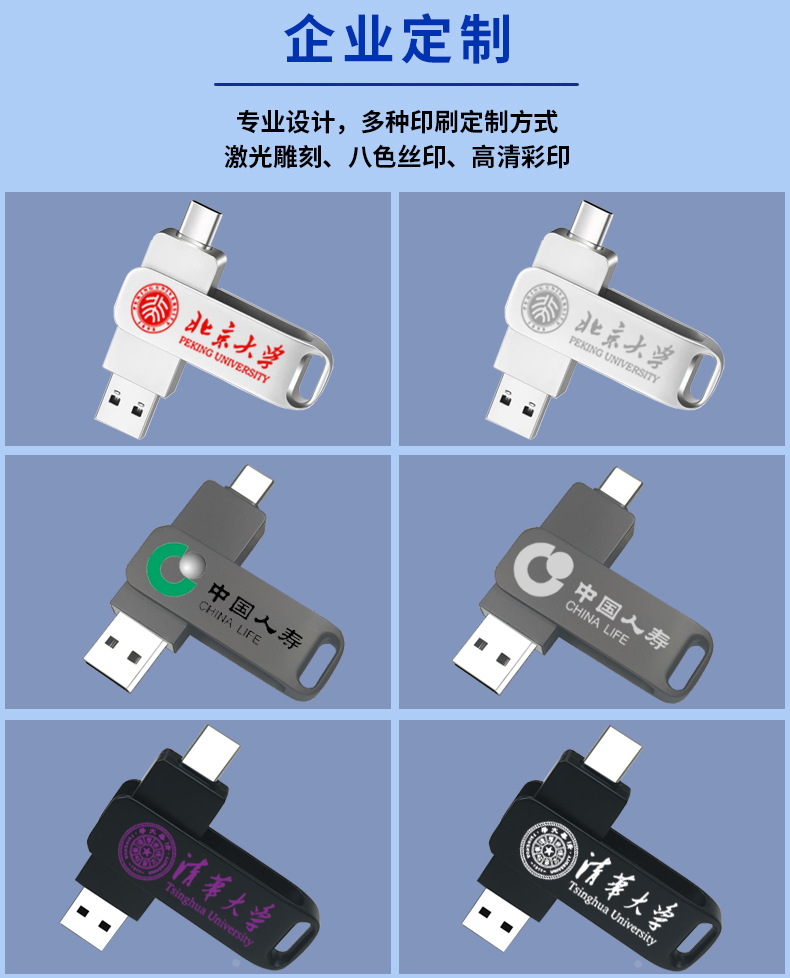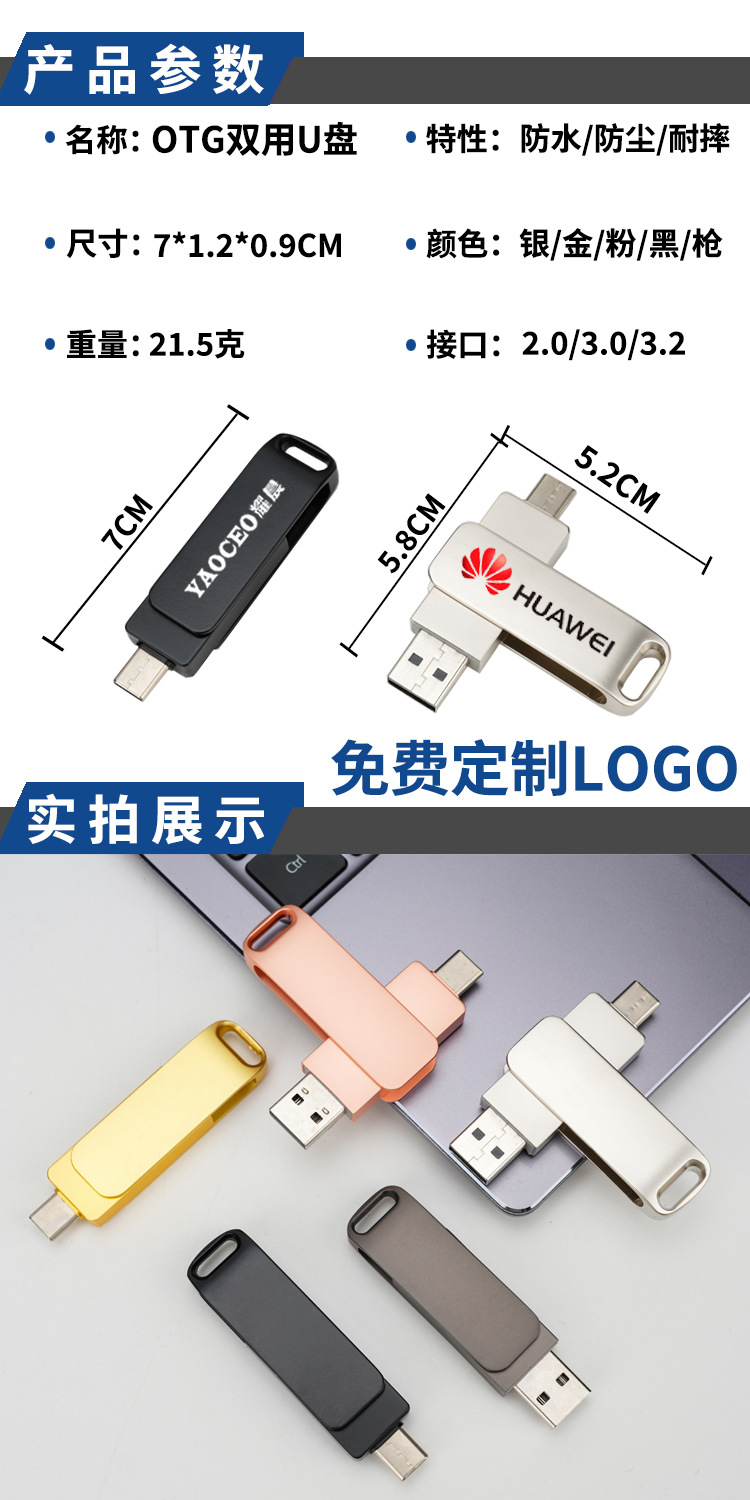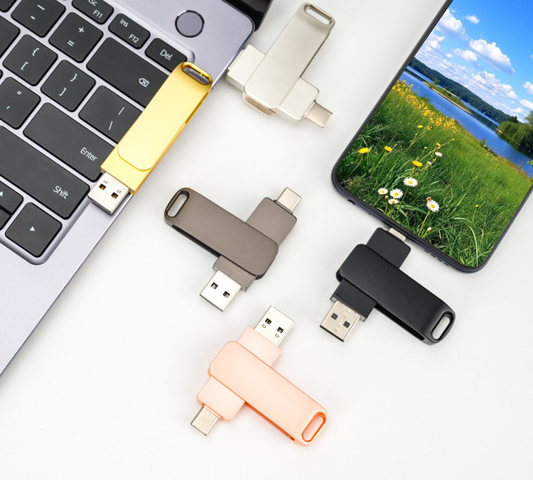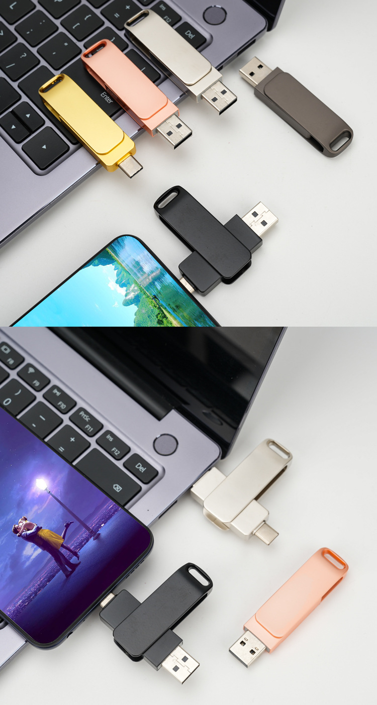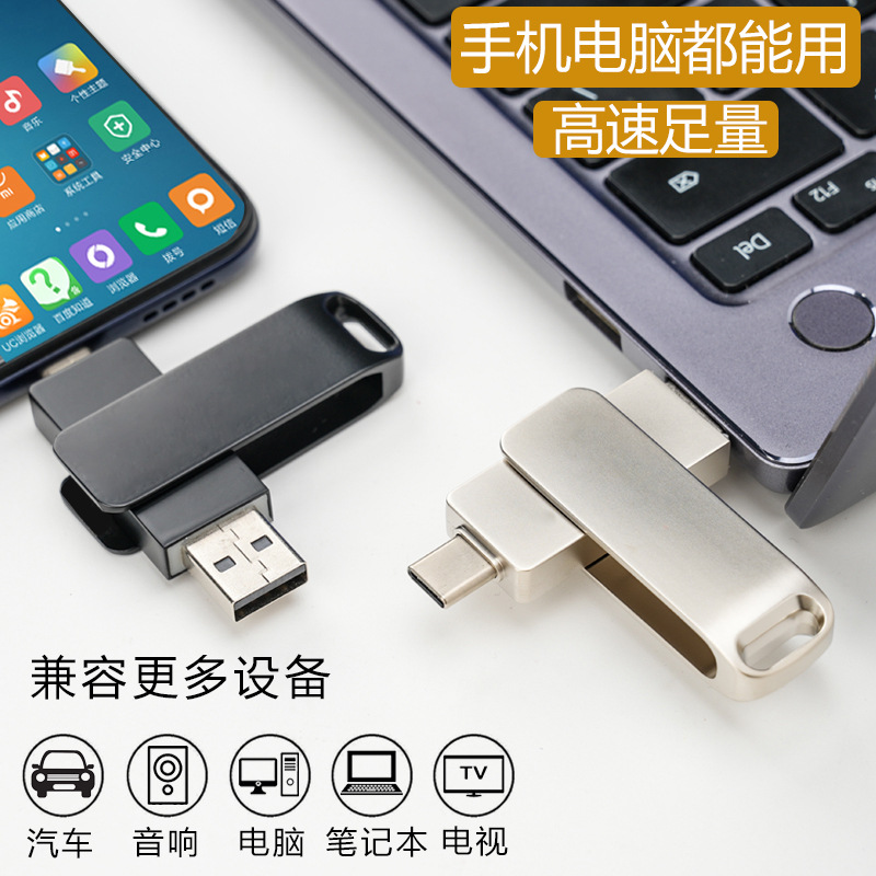批发金属旋转u盘投标8g手机type-c电脑双接口128g高速3.0定制u盘