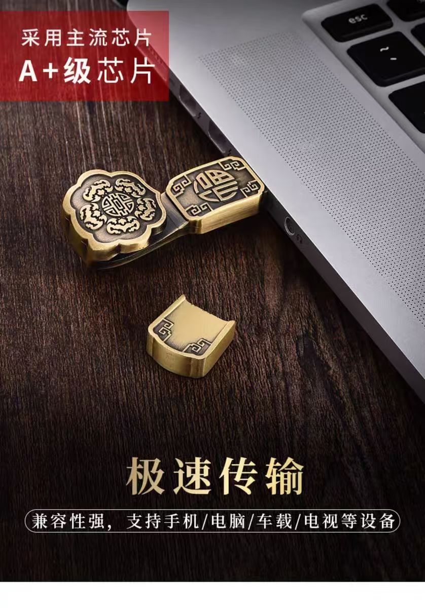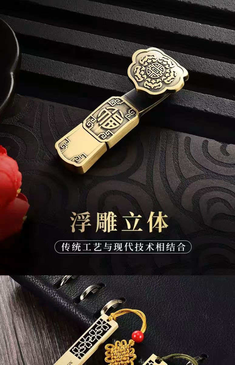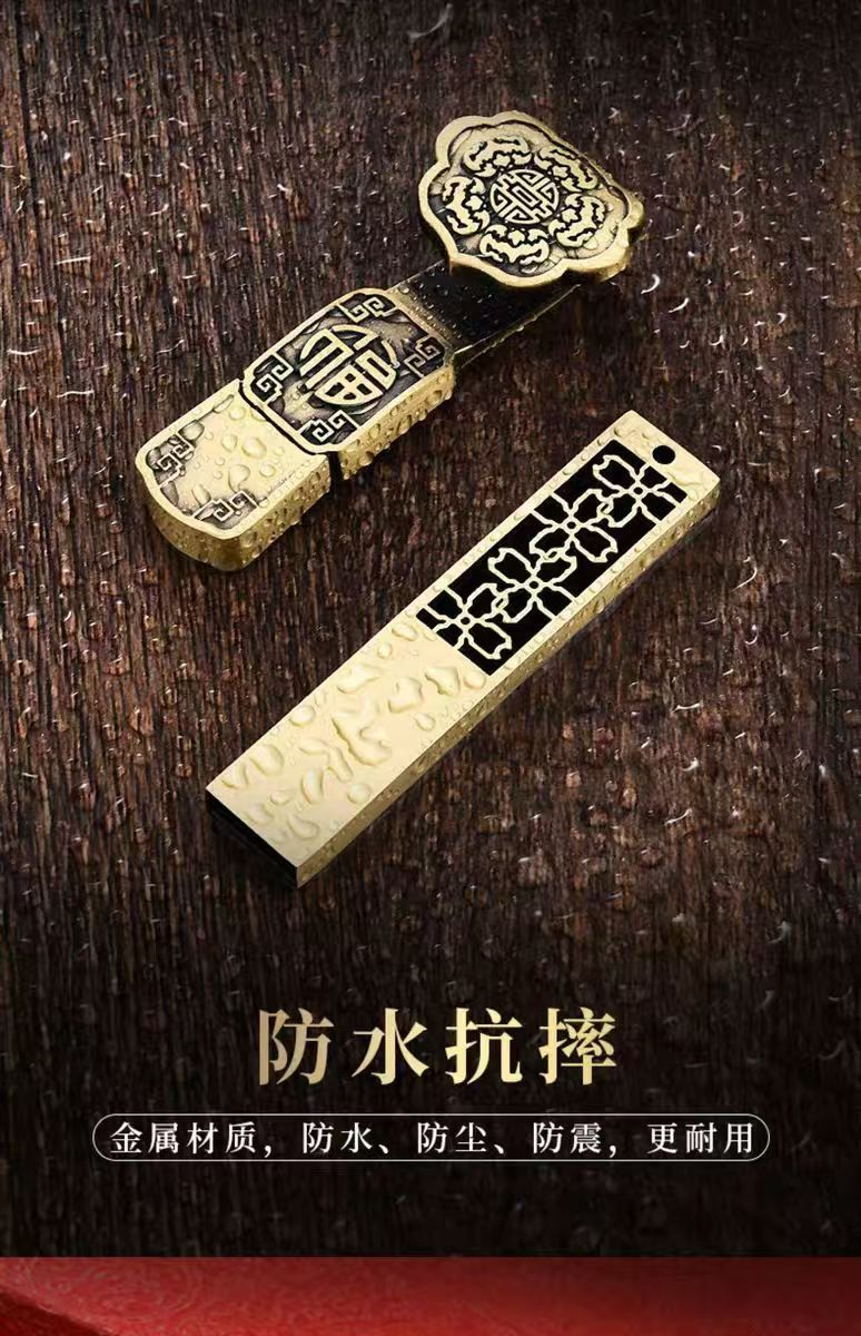 中国风u盘8g高速金属创意复古大容量64g礼品刻字优盘古风如意投标