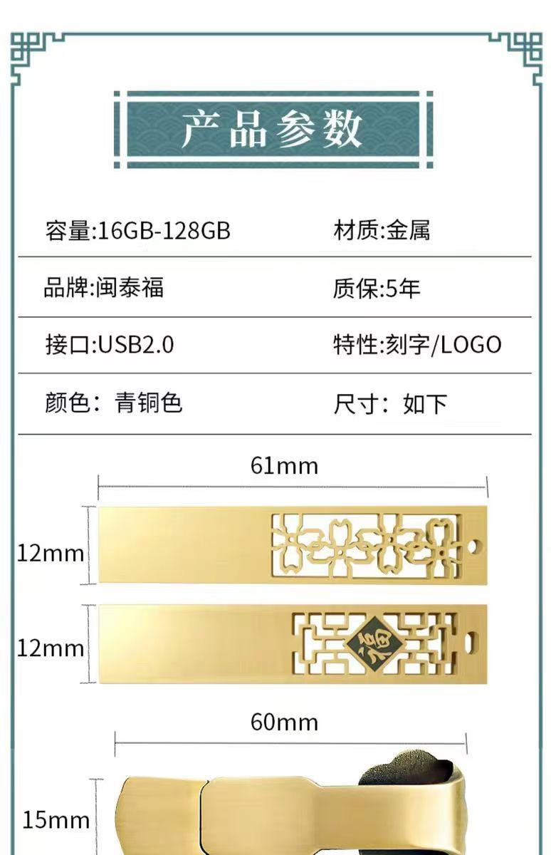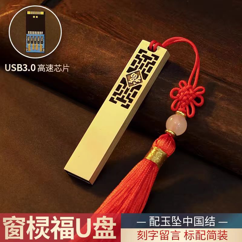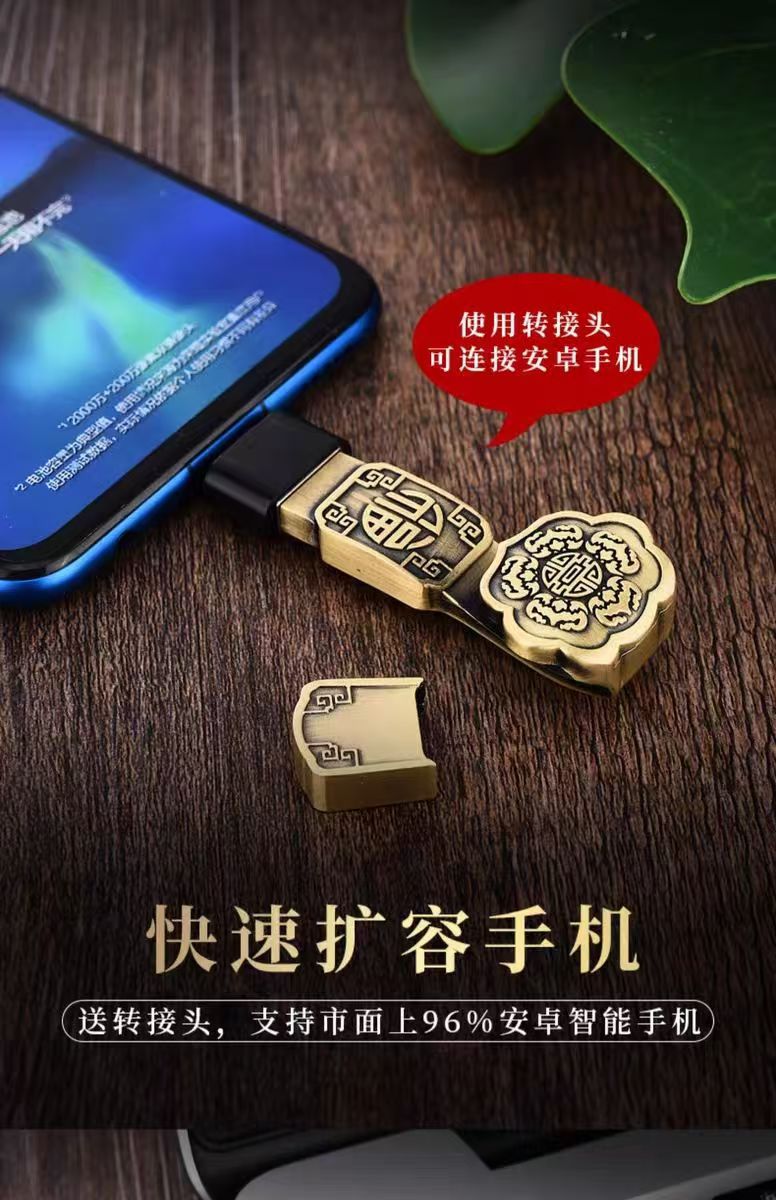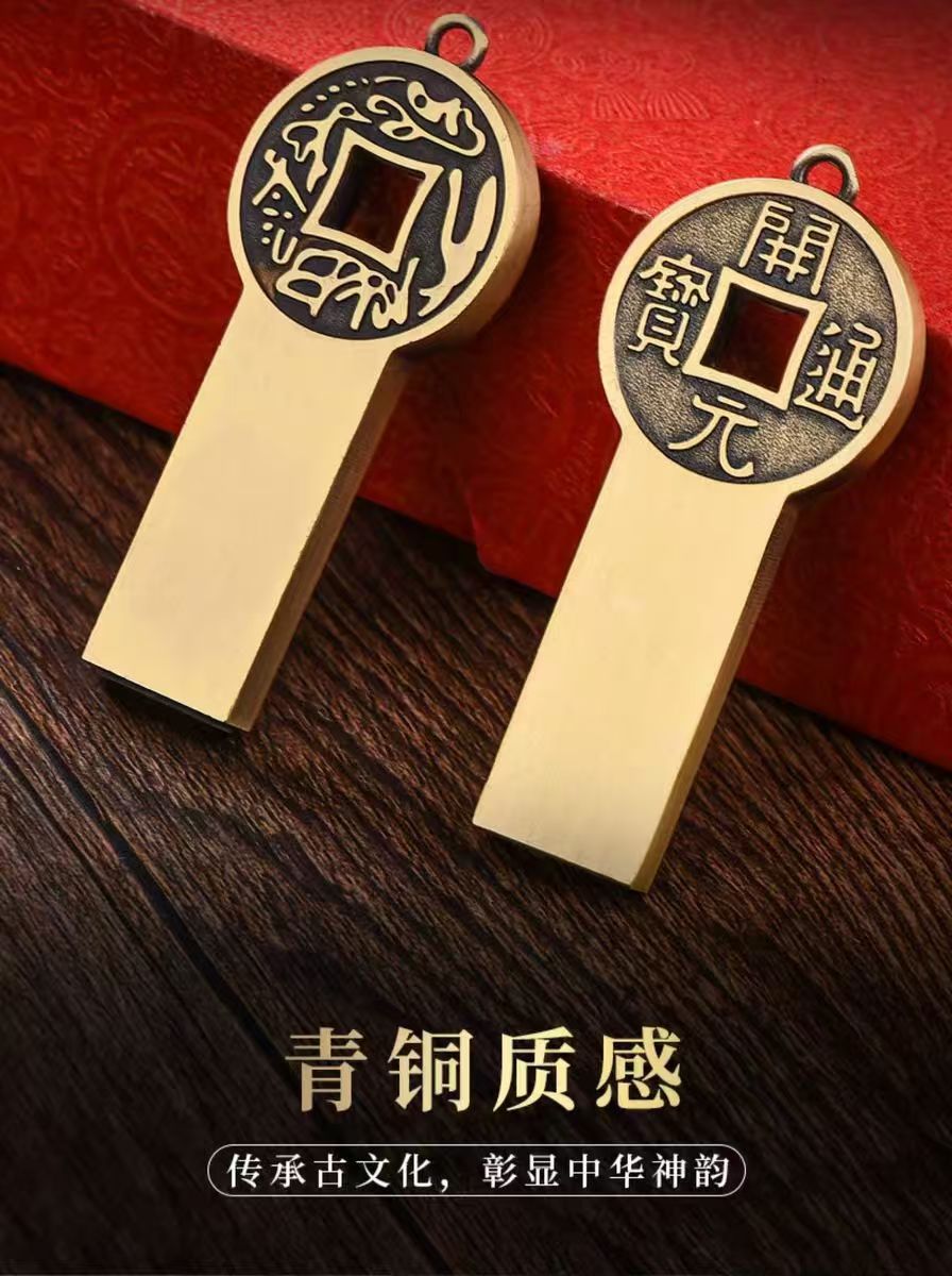 中国风u盘8g高速金属创意复古大容量64g礼品刻字优盘古风如意投标