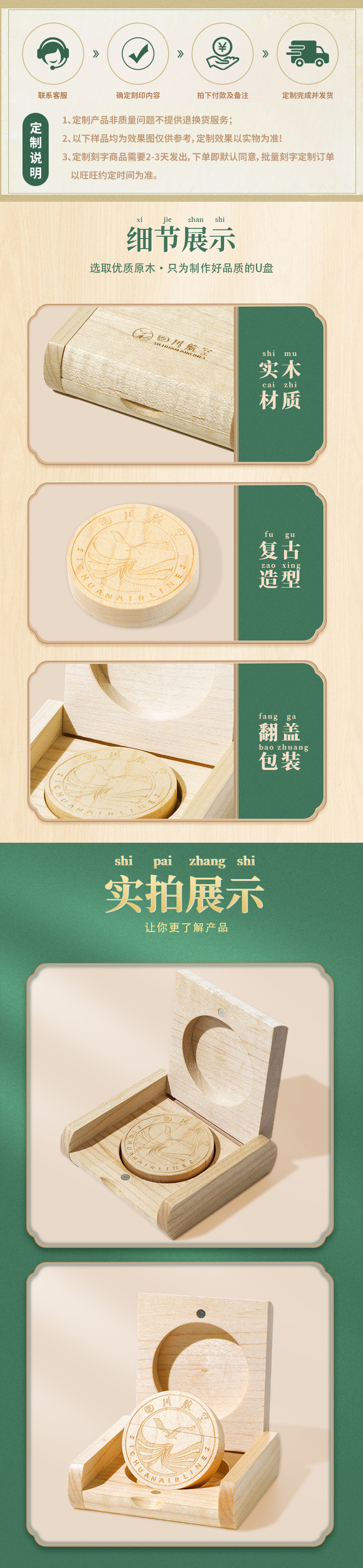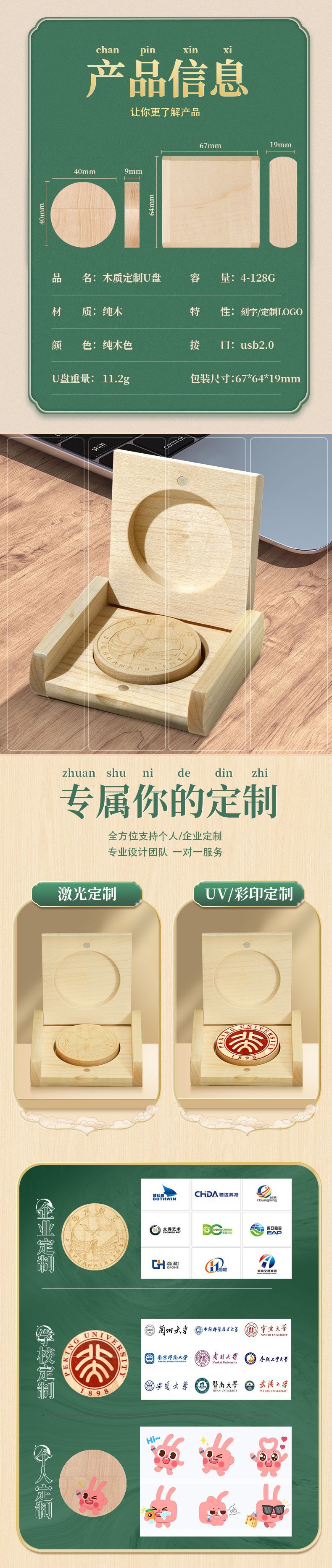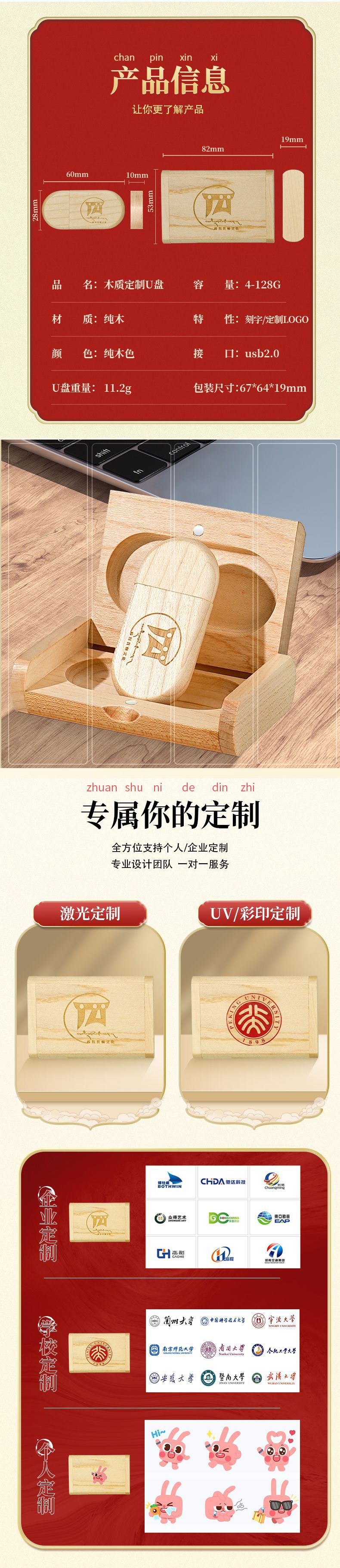 木质U盘批发刻字64g8g校徽企业礼品U盘定制logo跨境大容量手机32g