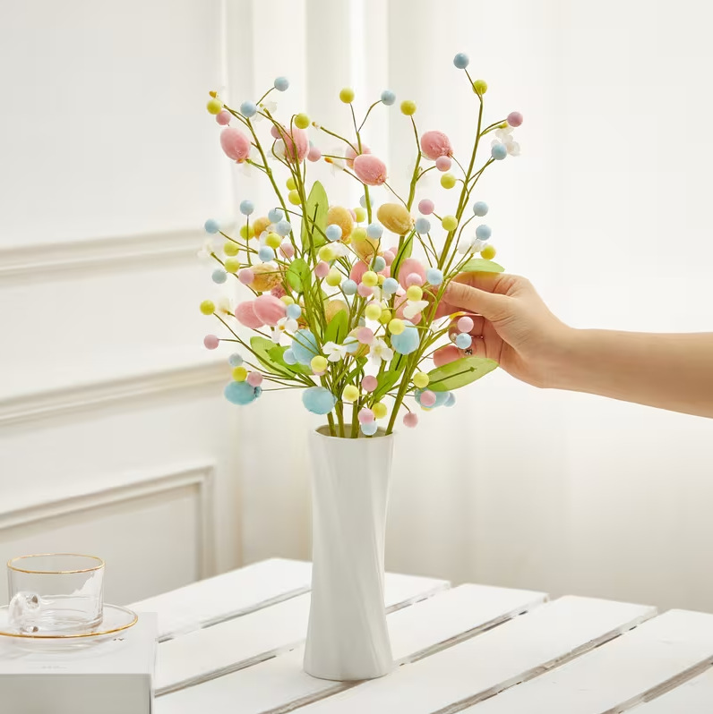 仿真彩蛋浆果插枝复活节新品插枝室内插花配件装饰马卡龙彩蛋把束
