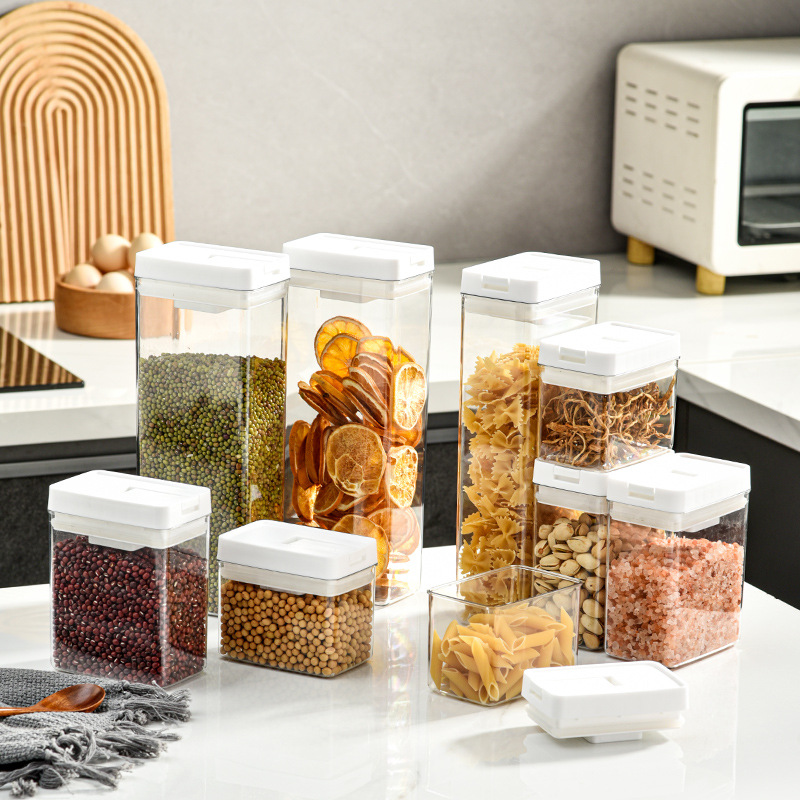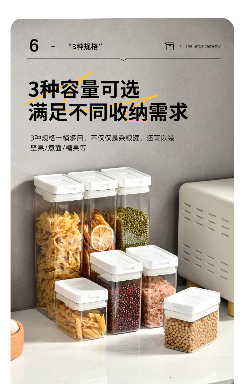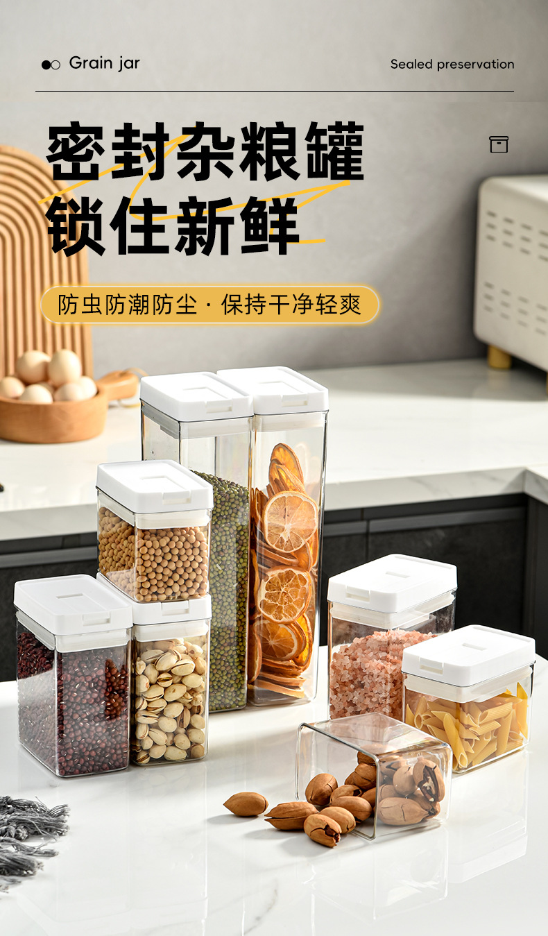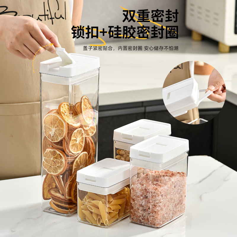 日式加厚方形密封罐五谷杂粮防潮厨房收纳盒透明塑料食品用储物罐