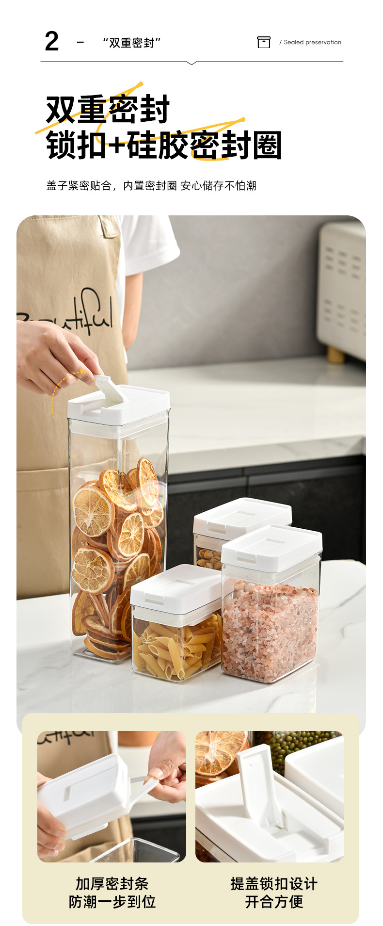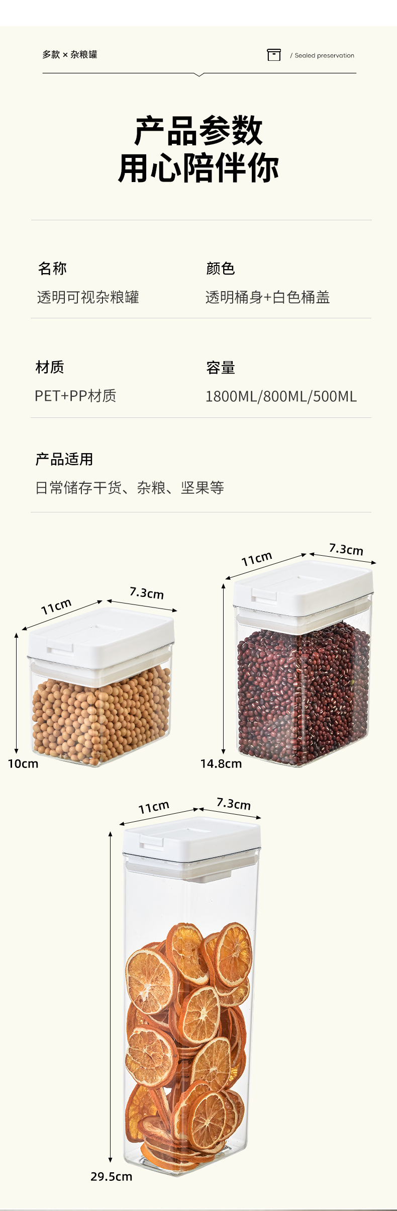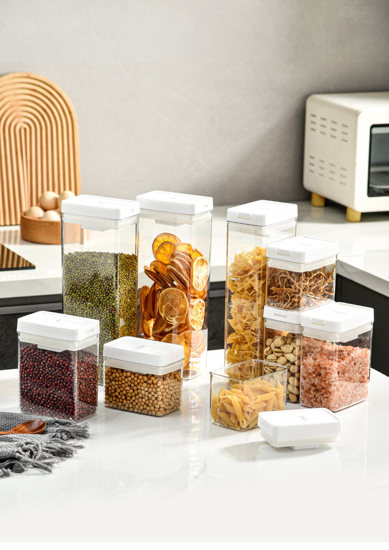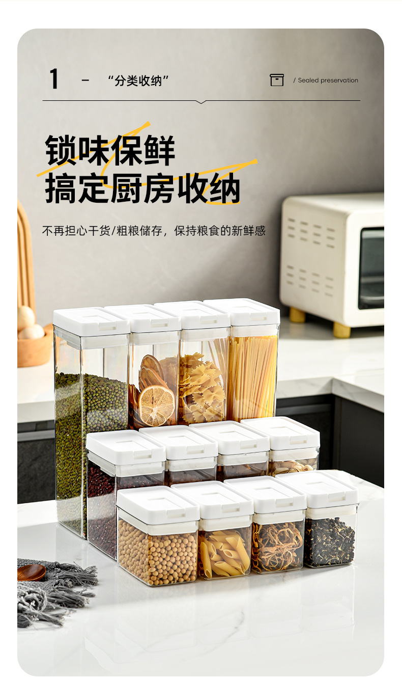 日式加厚方形密封罐五谷杂粮防潮厨房收纳盒透明塑料食品用储物罐