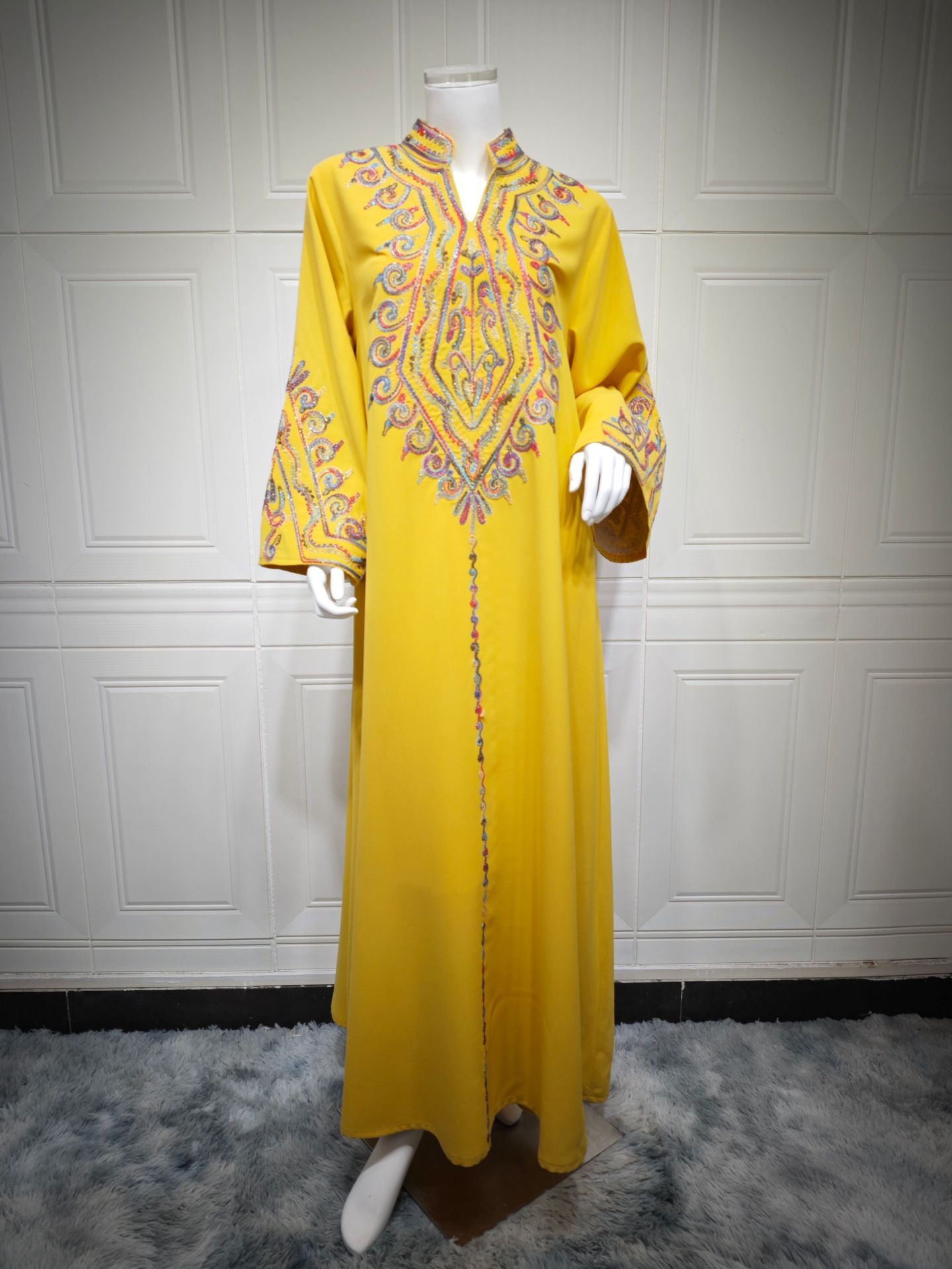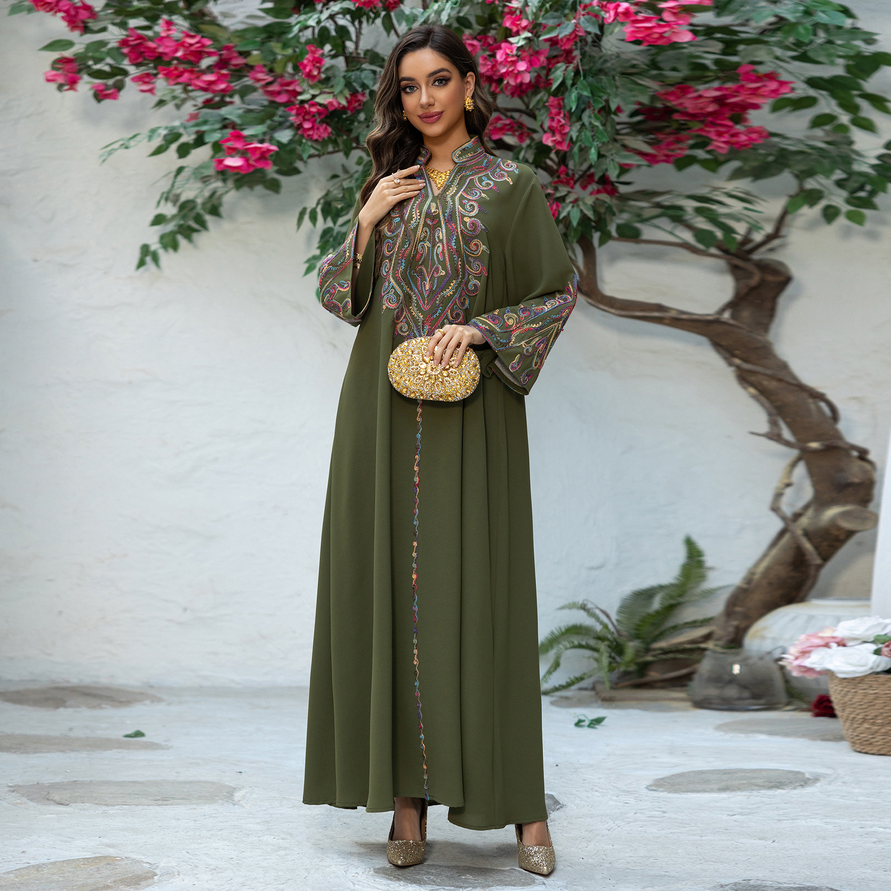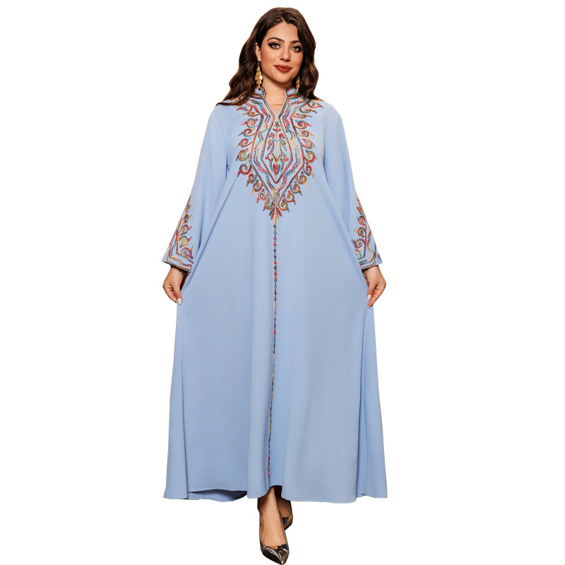时尚中东穆斯林优雅刺绣连衣裙长袍套头长袍