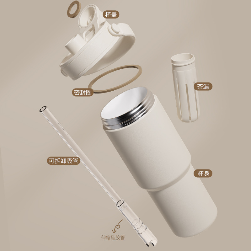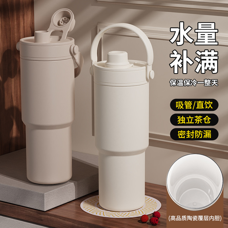 大容量316不锈钢陶瓷保温杯带吸管双饮咖啡杯汽车杯车载便携随行