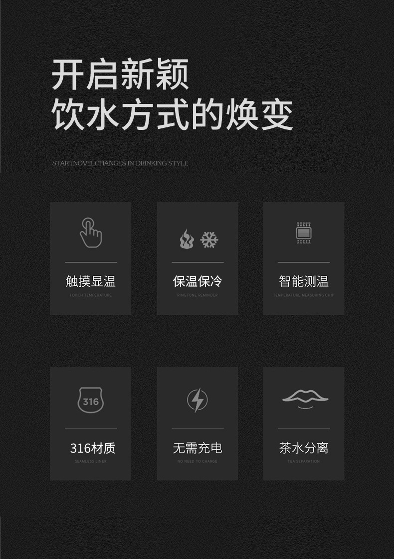 智能保温杯不锈钢316大容量水杯高颜值国潮带茶漏商务礼品杯定制