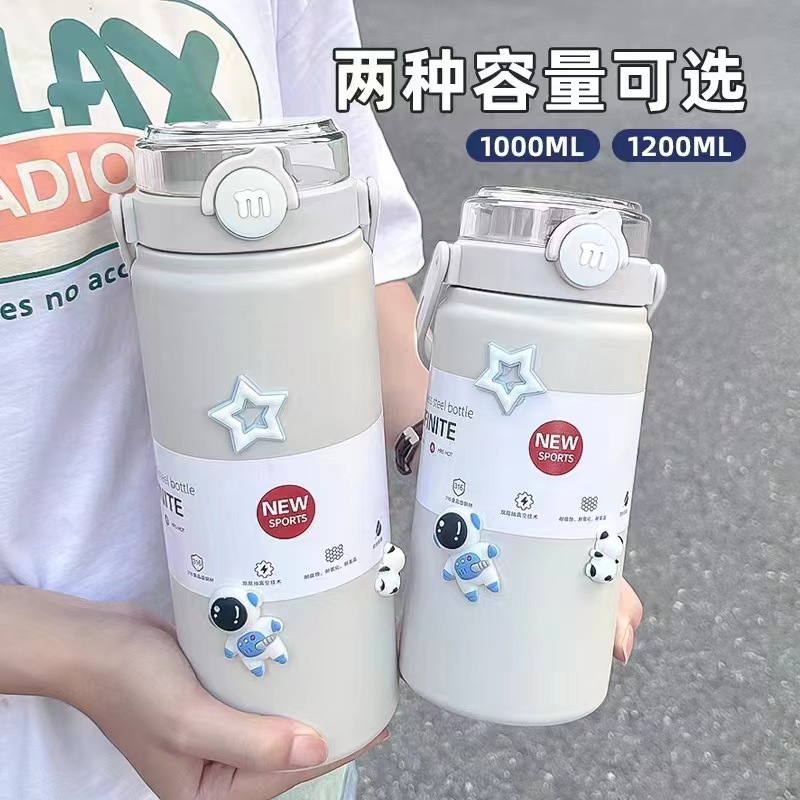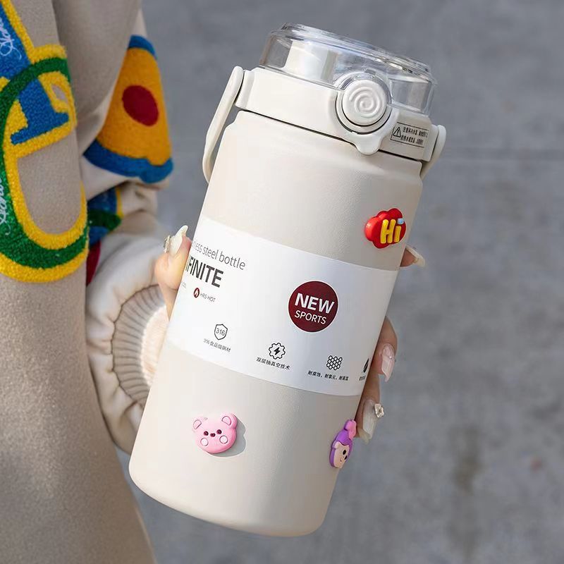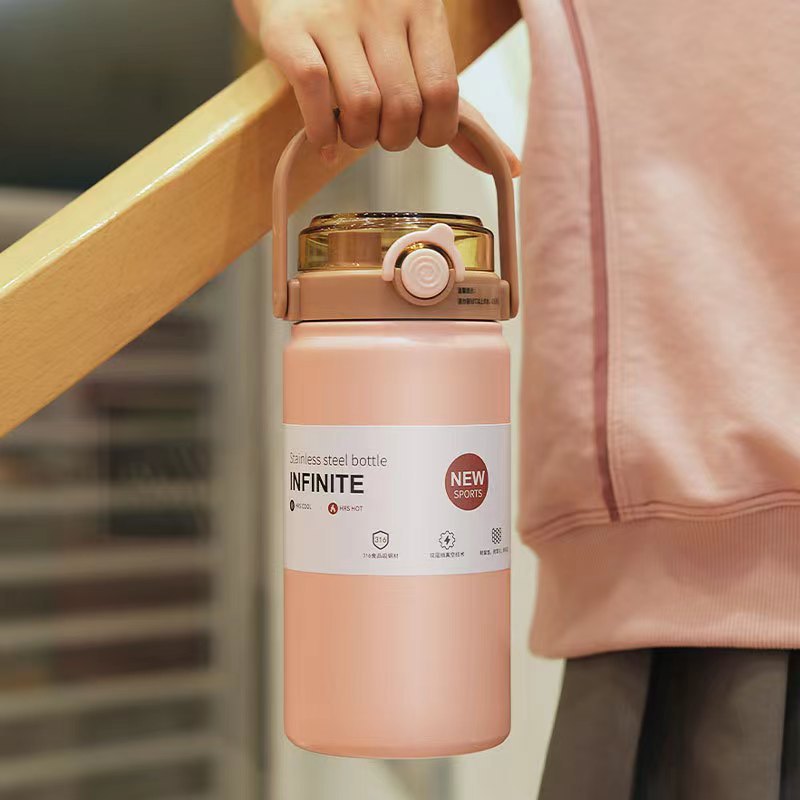 提手保温杯学生上学专用双饮大容量杯子不锈钢高颜值便携随行水壶