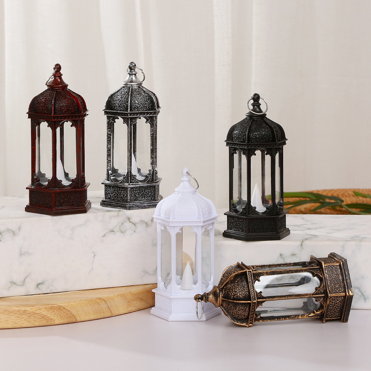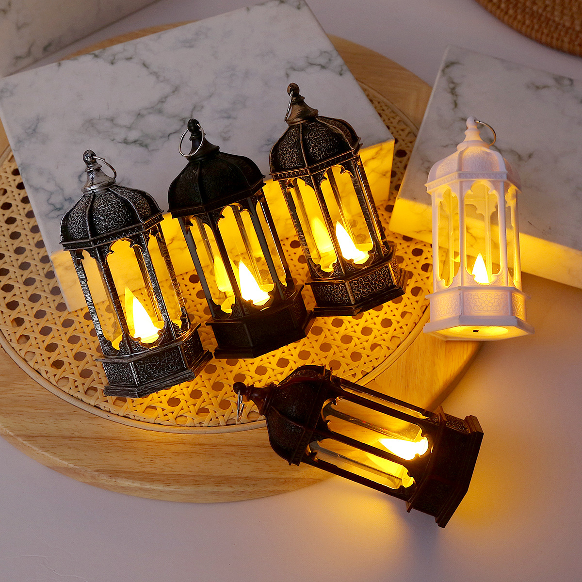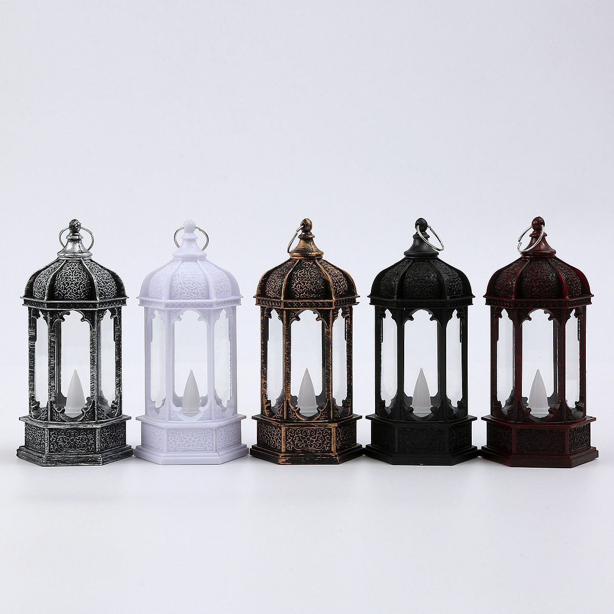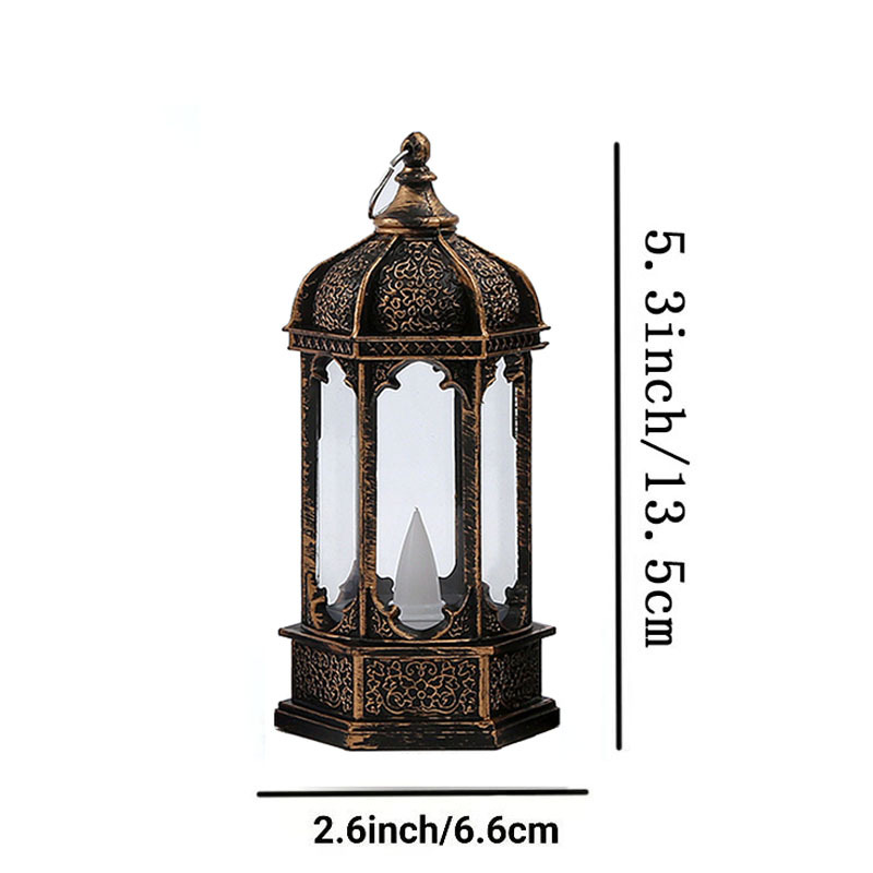圣诞节复古发光六角电子蜡烛风灯桌面摆件万圣节油灯场景布置装饰