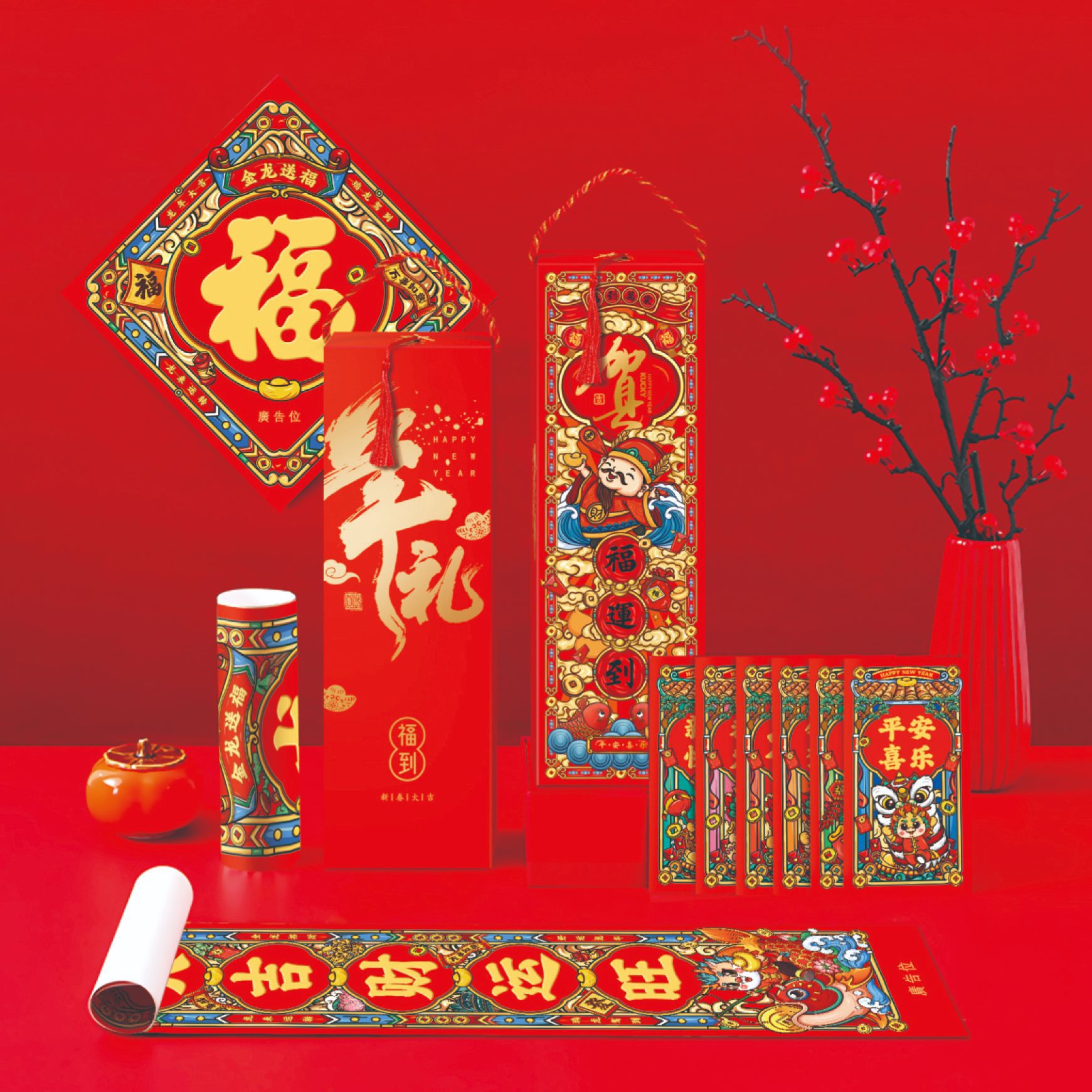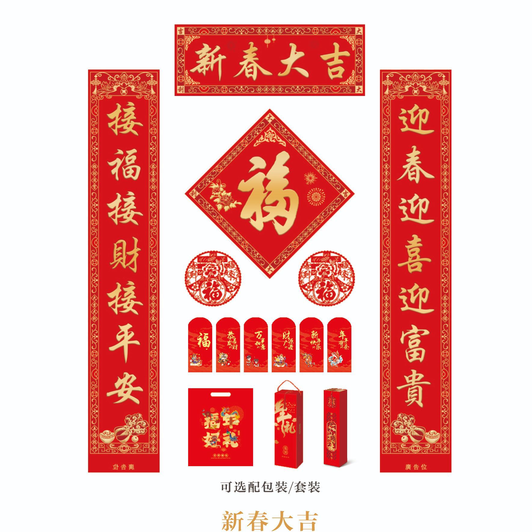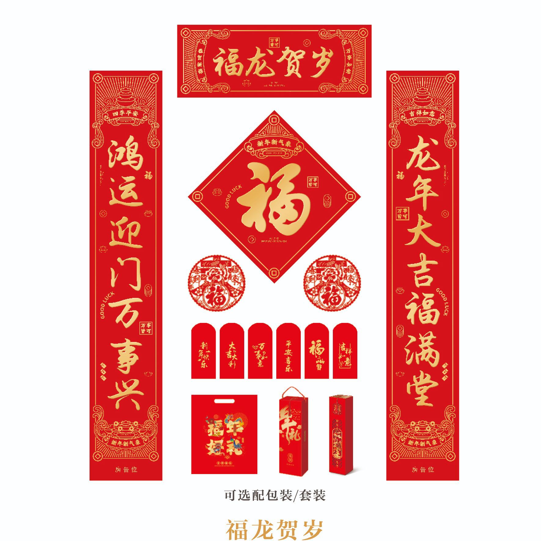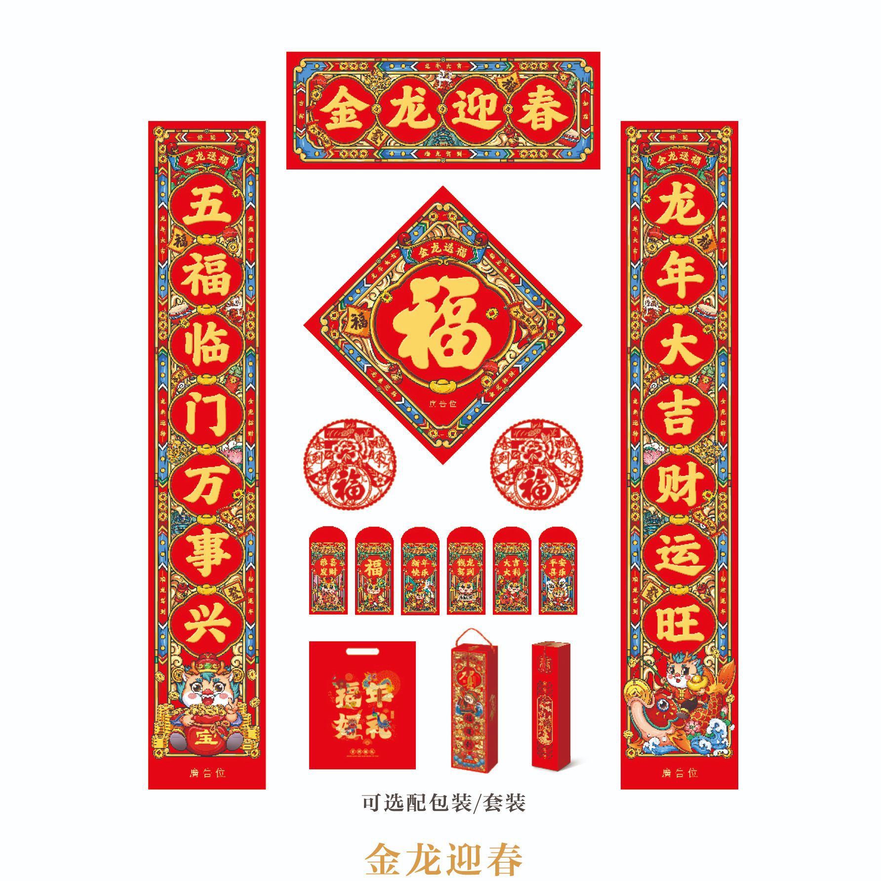 2024龙年春节对联定 制广告新年春联大礼包定 做福字红包礼盒烫金