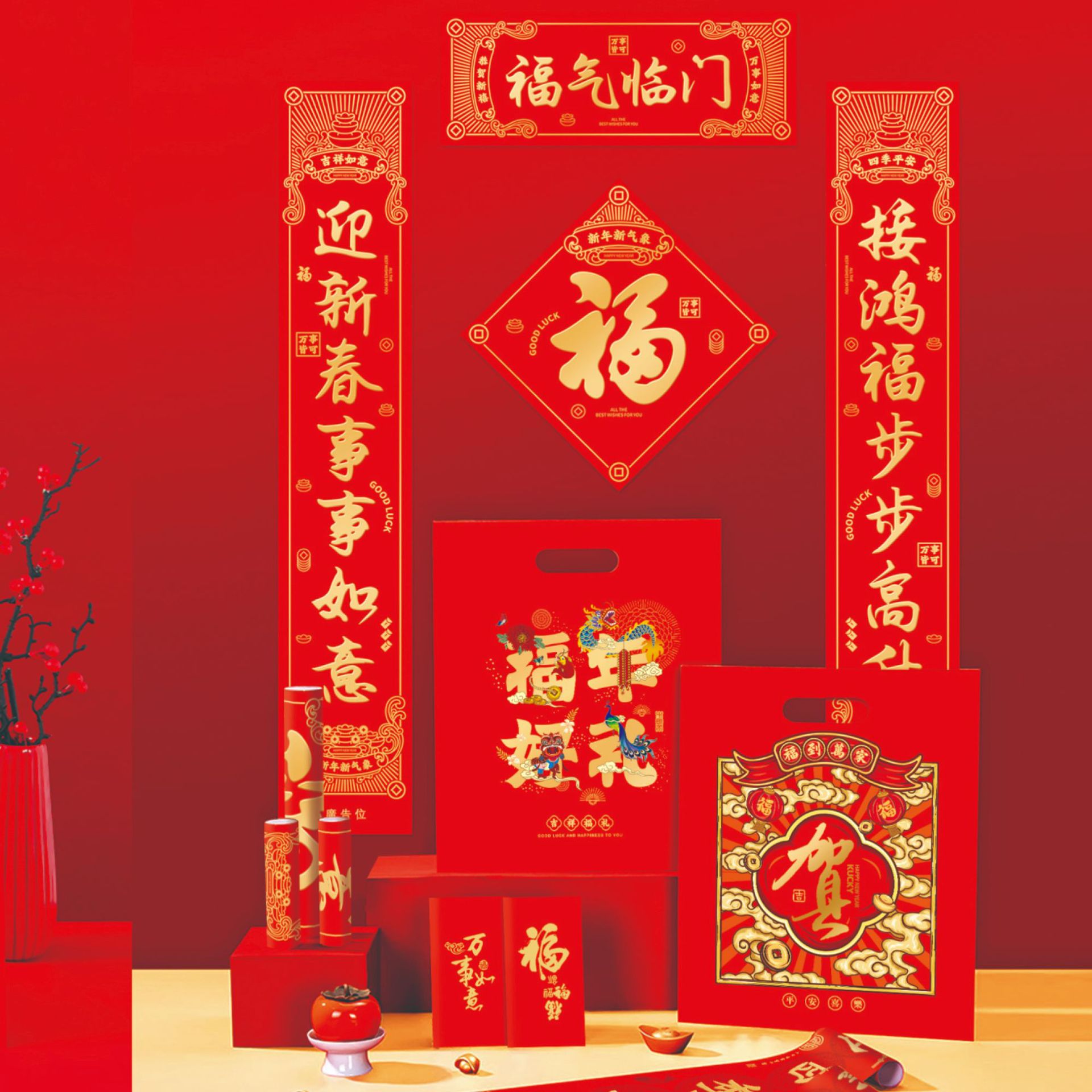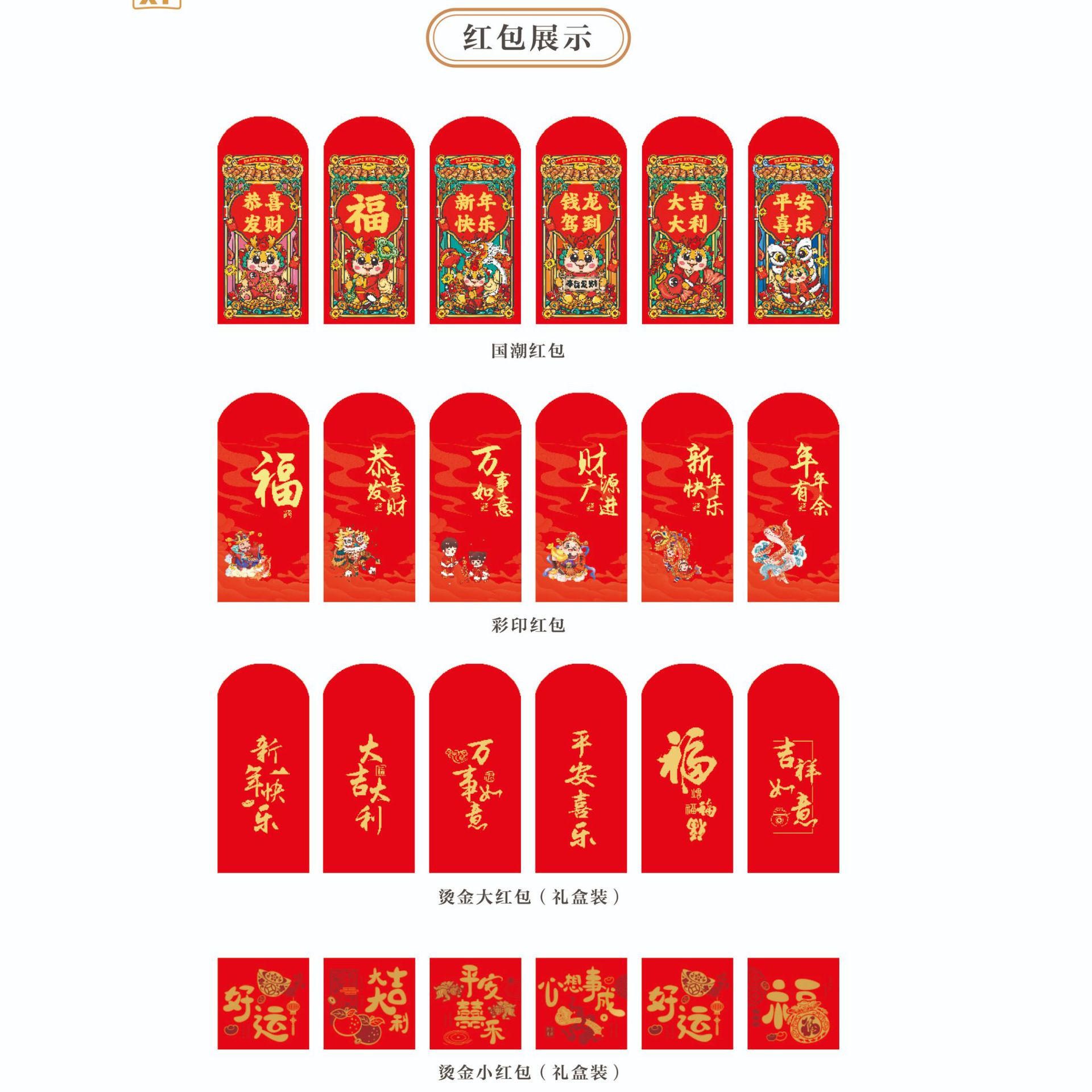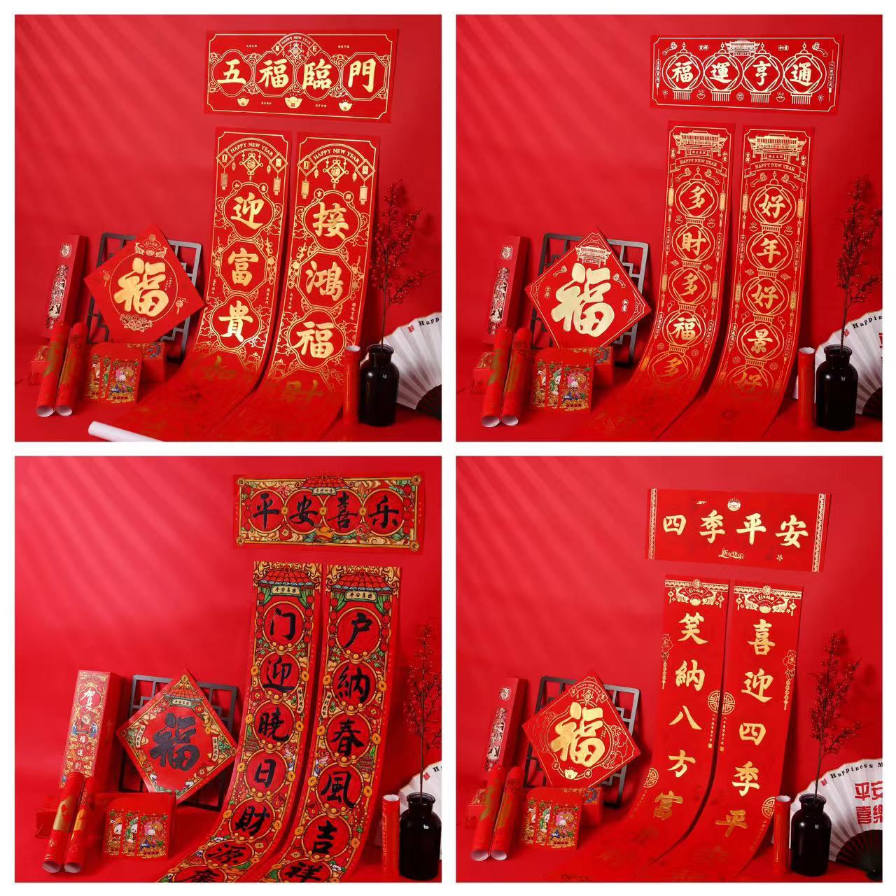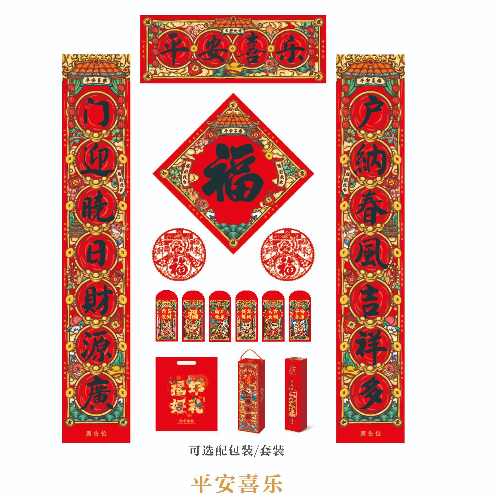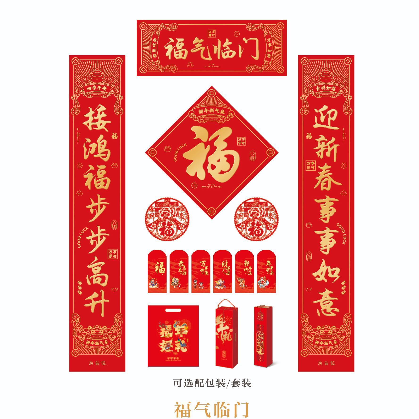 2024龙年春节对联定 制广告新年春联大礼包定 做福字红包礼盒烫金