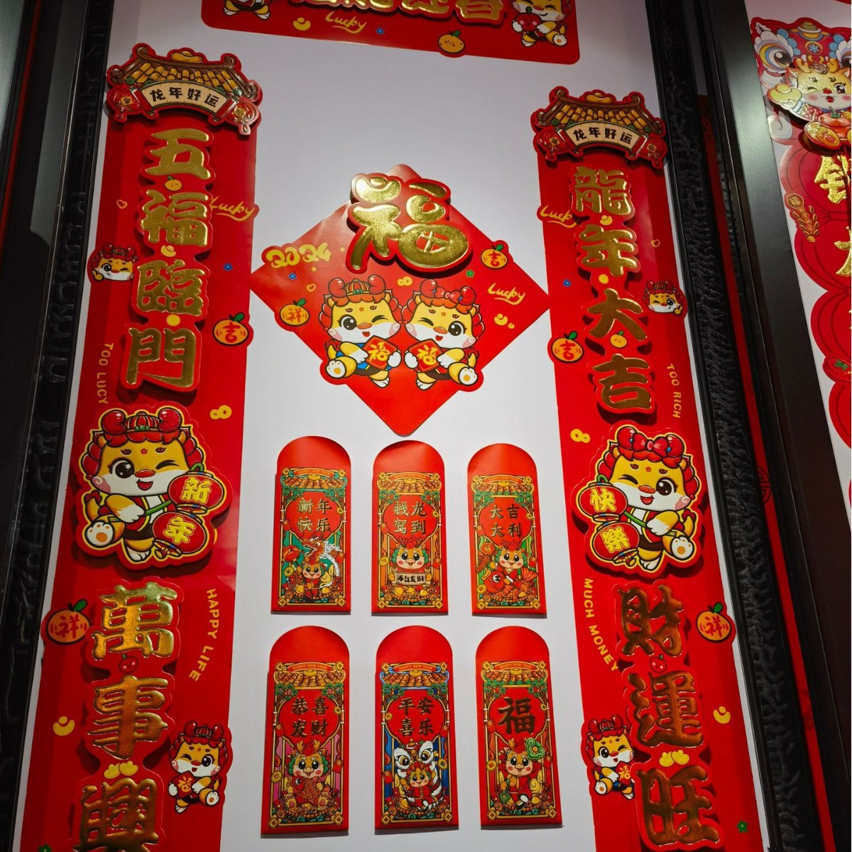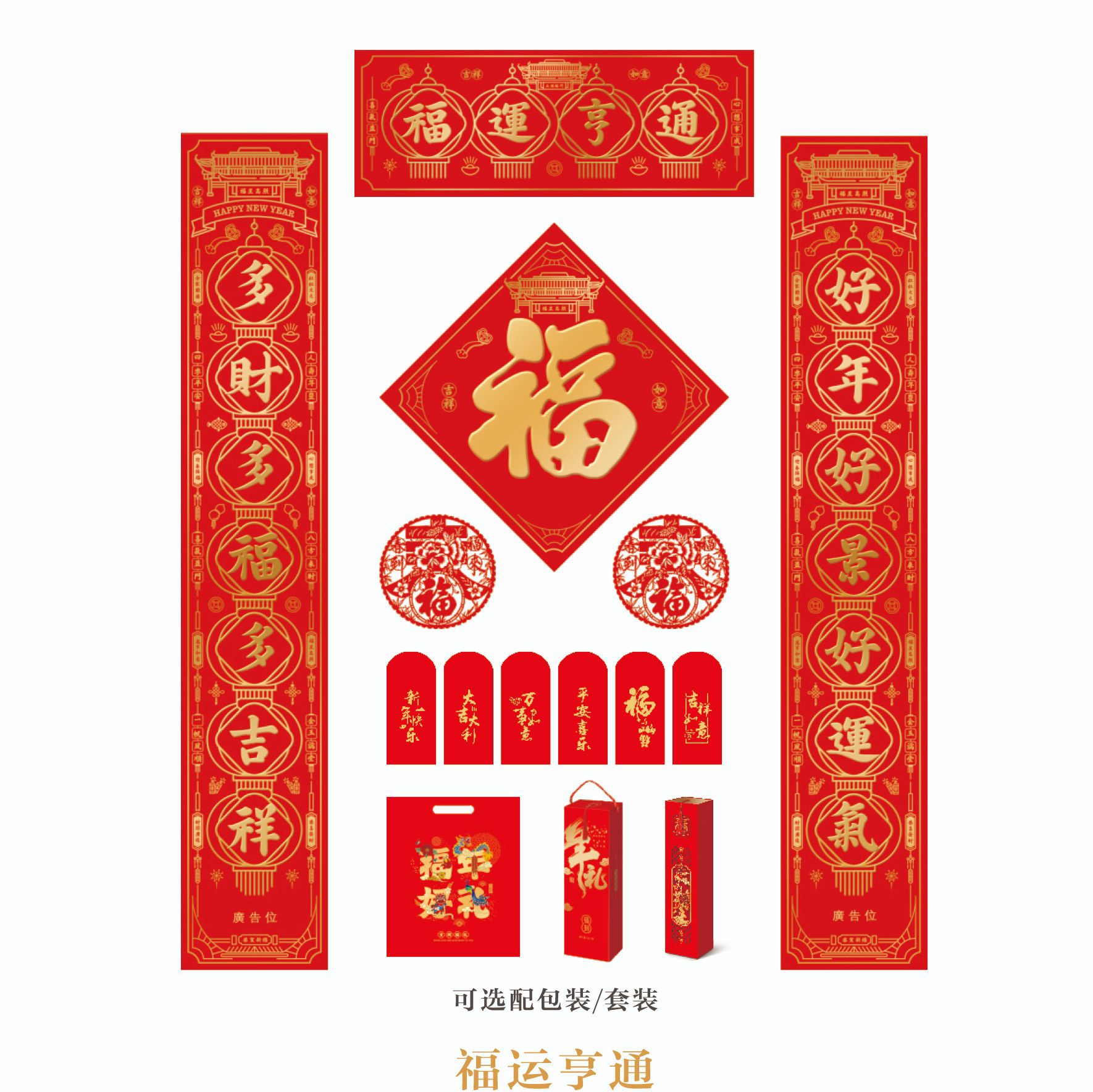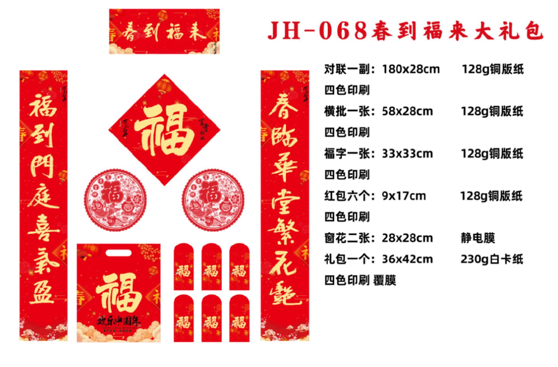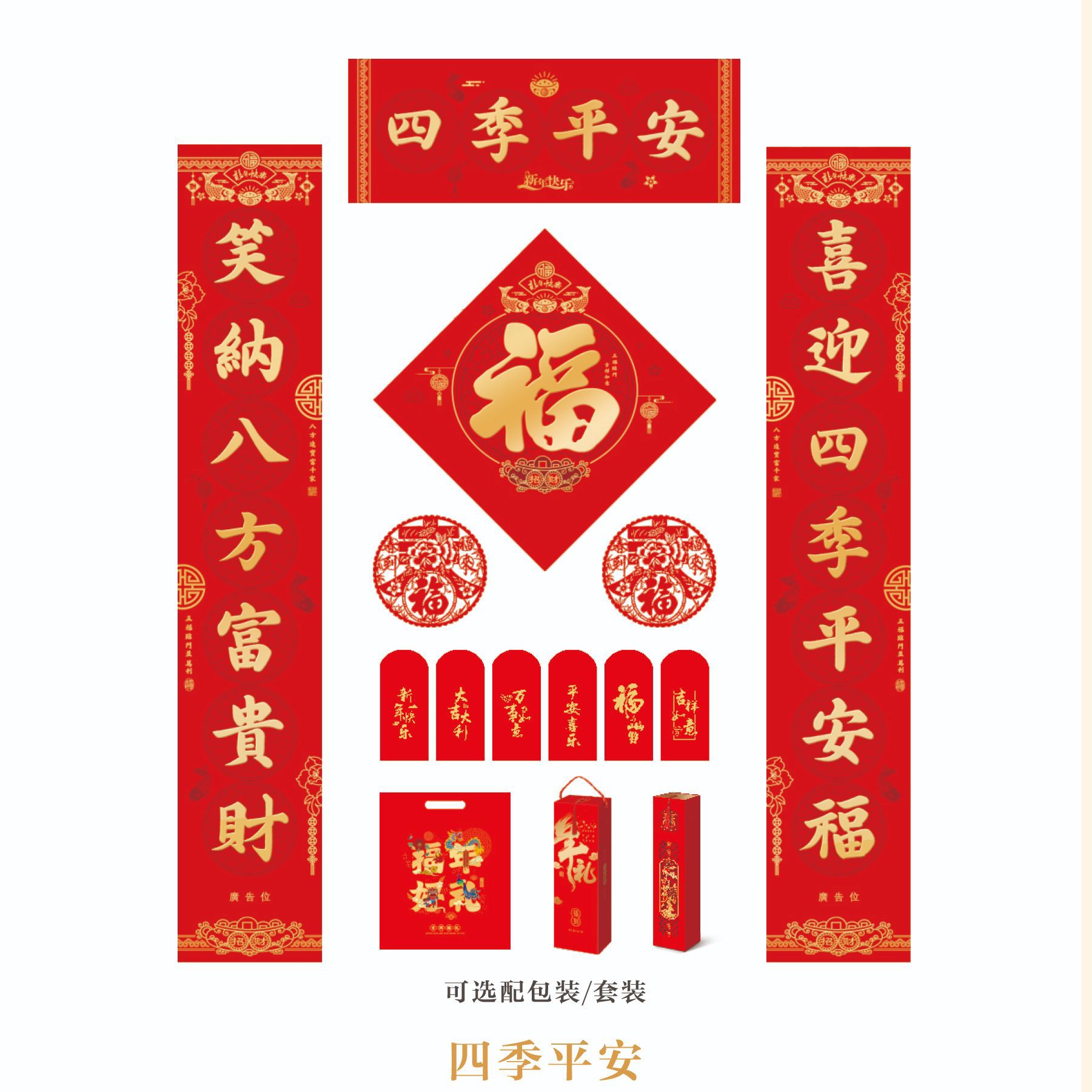 2024龙年春节对联定 制广告新年春联大礼包定 做福字红包礼盒烫金