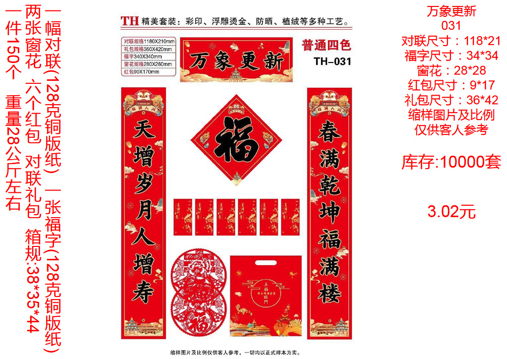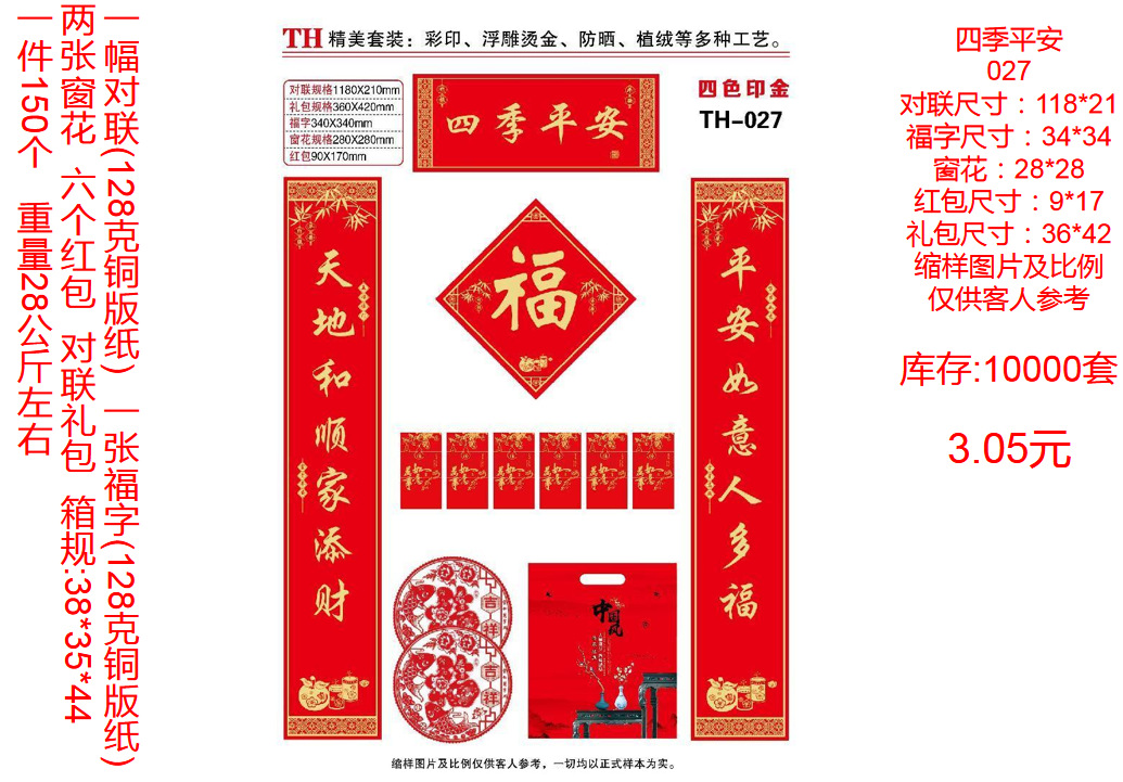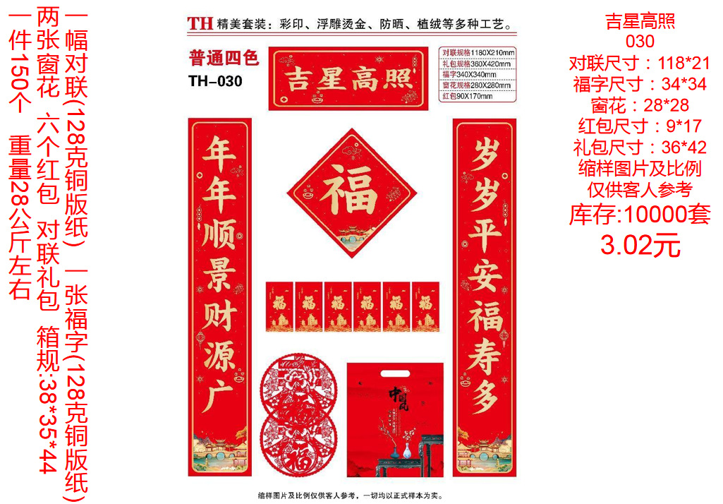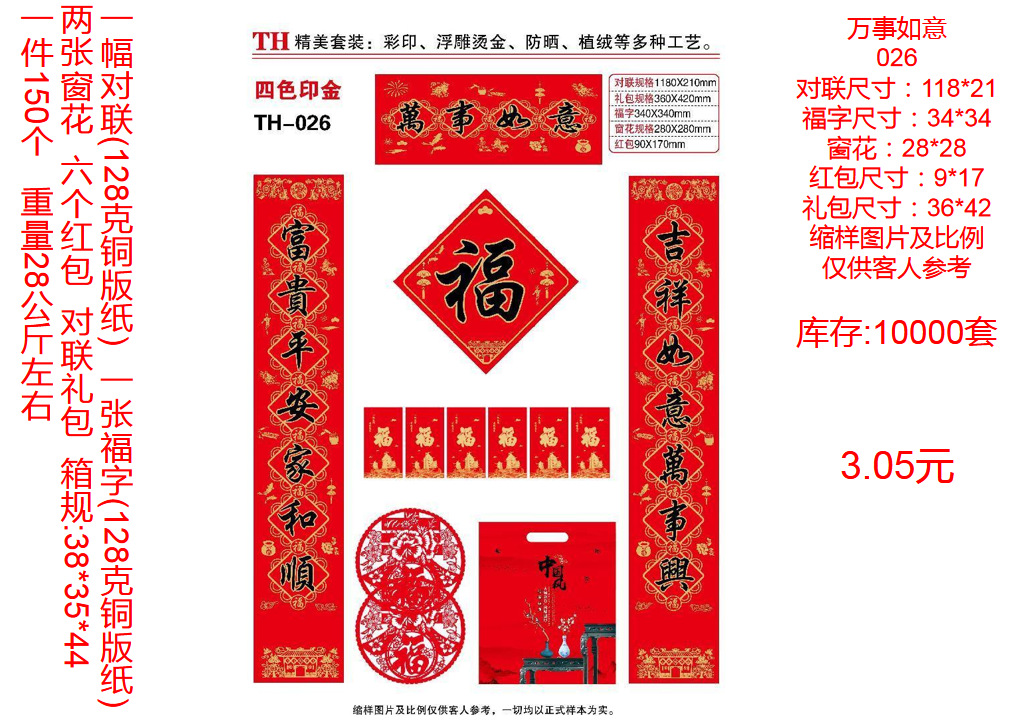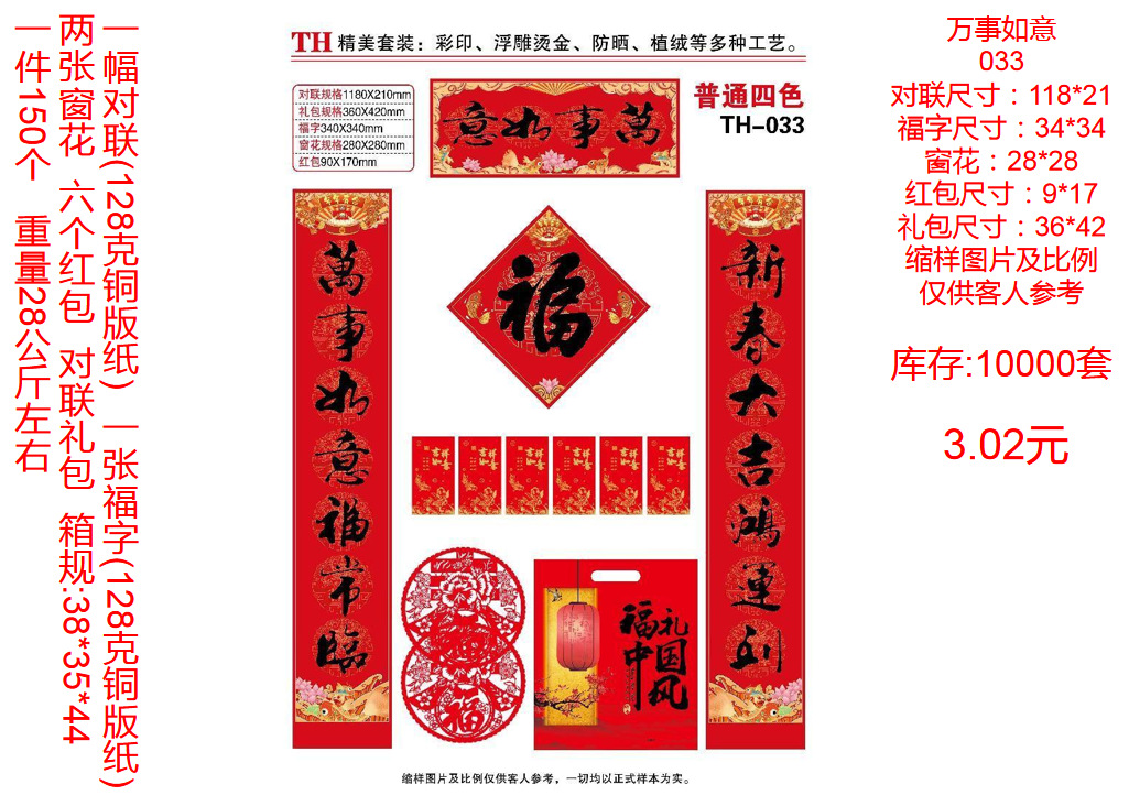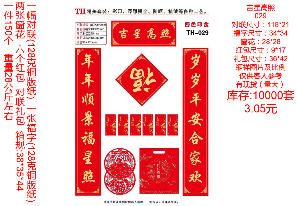 | ordinary couplet without packaging random style(普通对联无包装款式随机) | USD $0.22 | 9999359 set available |