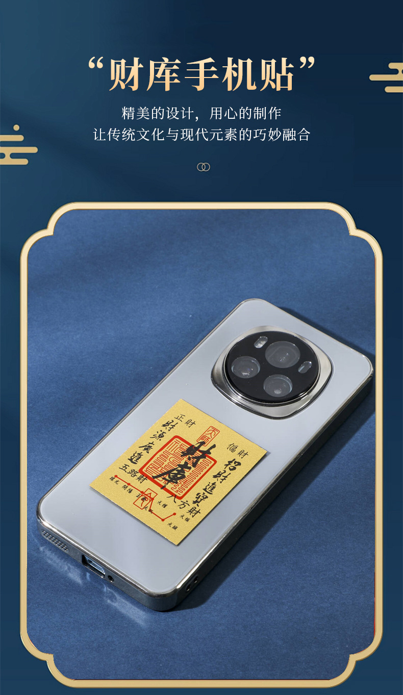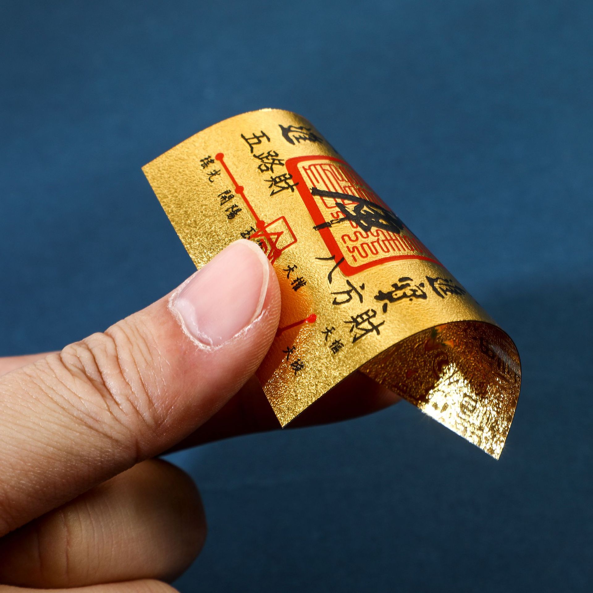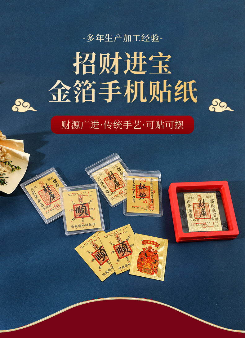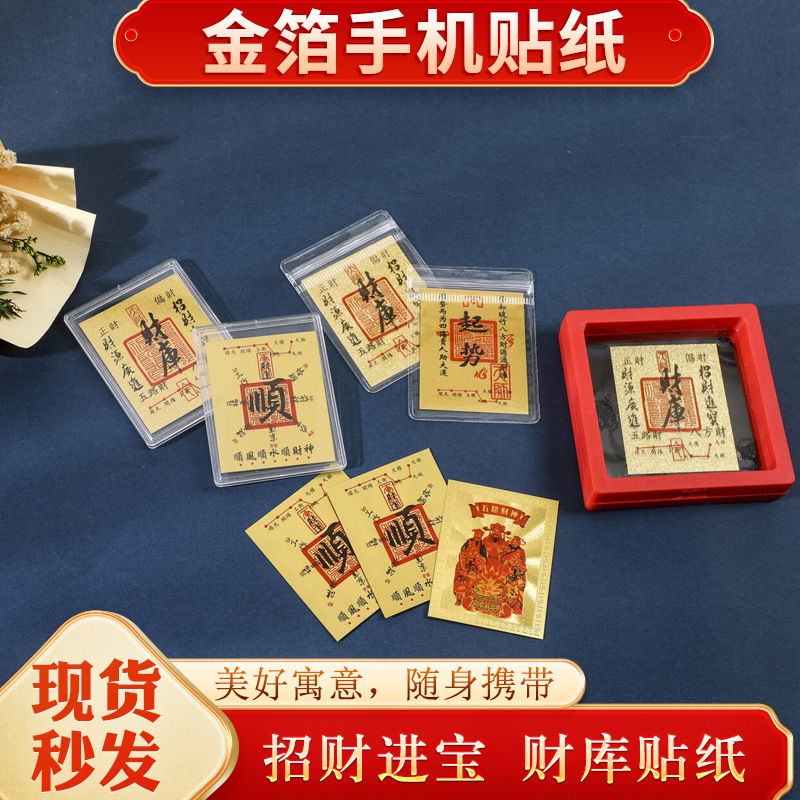 现货仿金箔手机贴2025蛇年贴纸新年金片五路财神财库贴