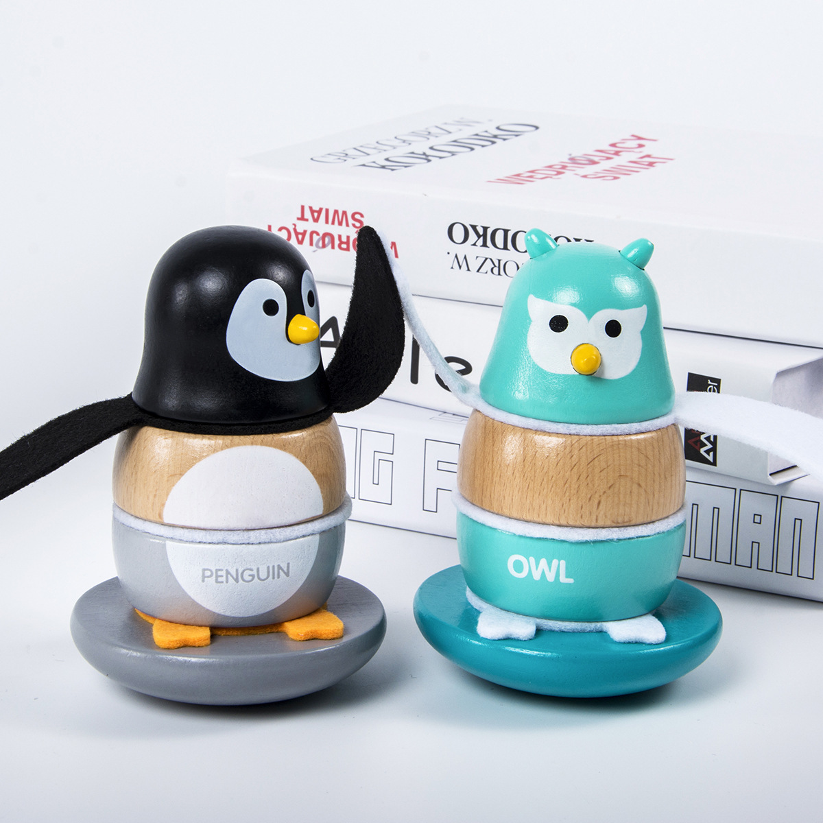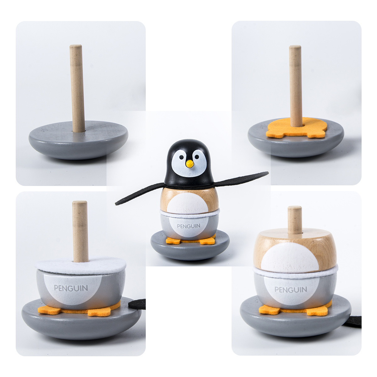 儿童木质益智卡通企鹅不倒翁婴幼儿早教木质套柱叠叠乐玩具1-3岁