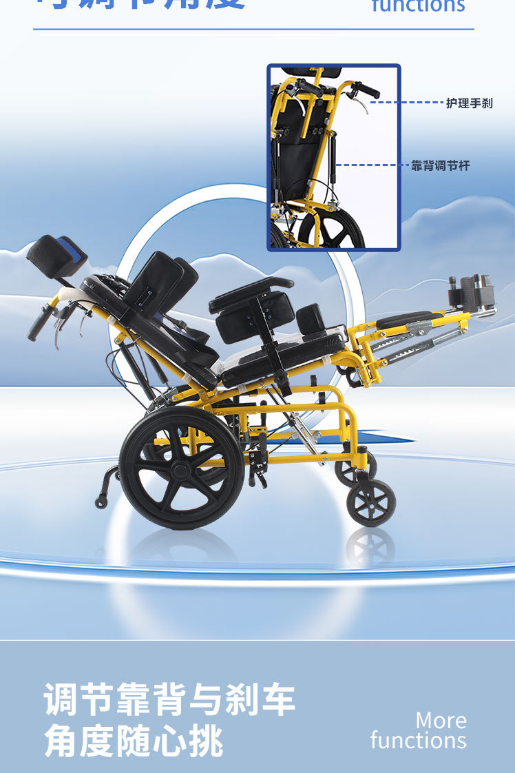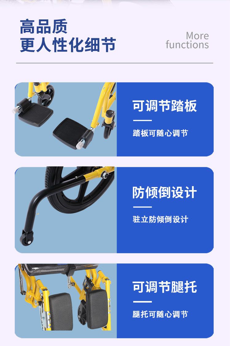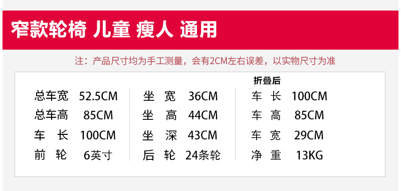 专供出口儿童轮椅代步免充气功能轮椅窄轮轮椅折叠轮椅免充气