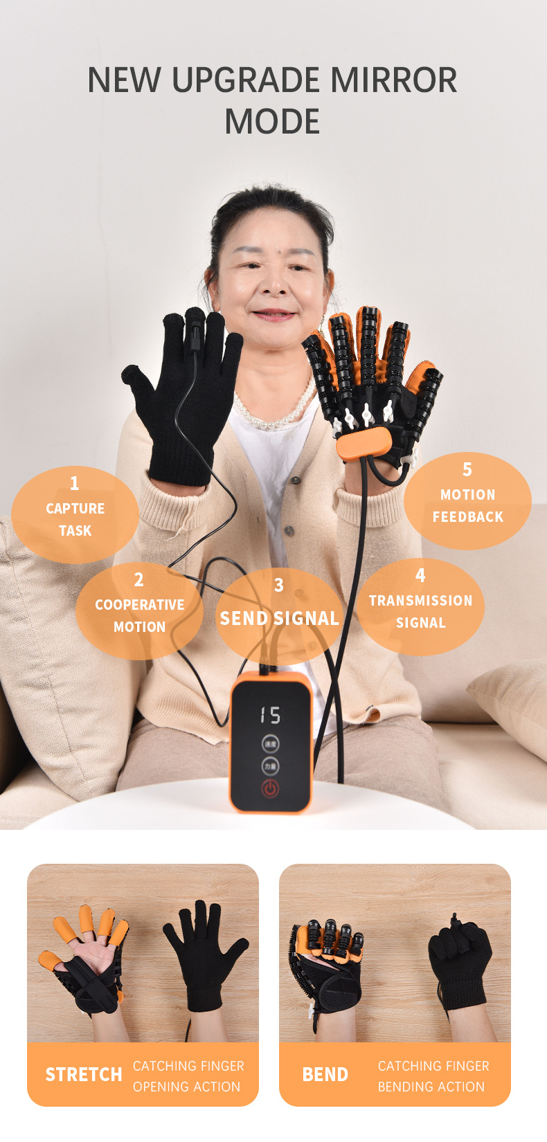 专供出口 老人中风偏瘫五指分指手部训练康复机器人手套