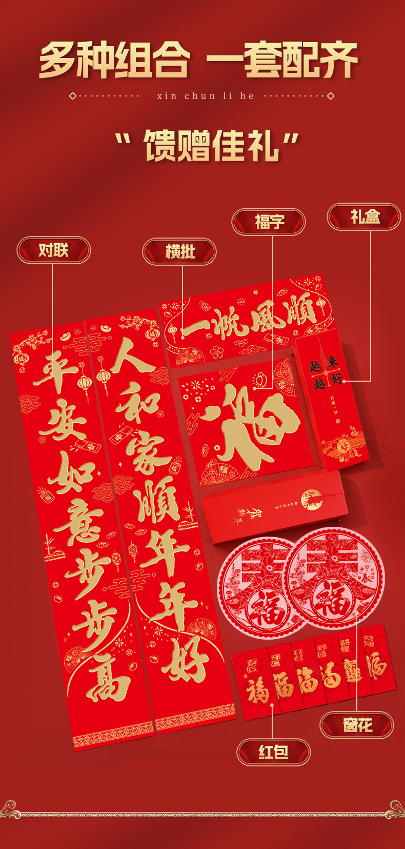 马年2026对联迎春节过年仪式大礼包喜庆创意批发手工春节礼盒套装