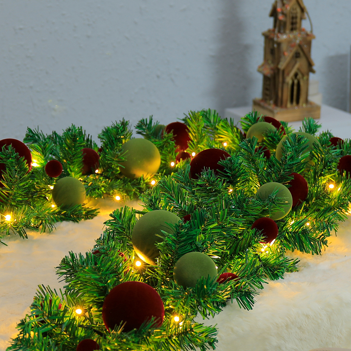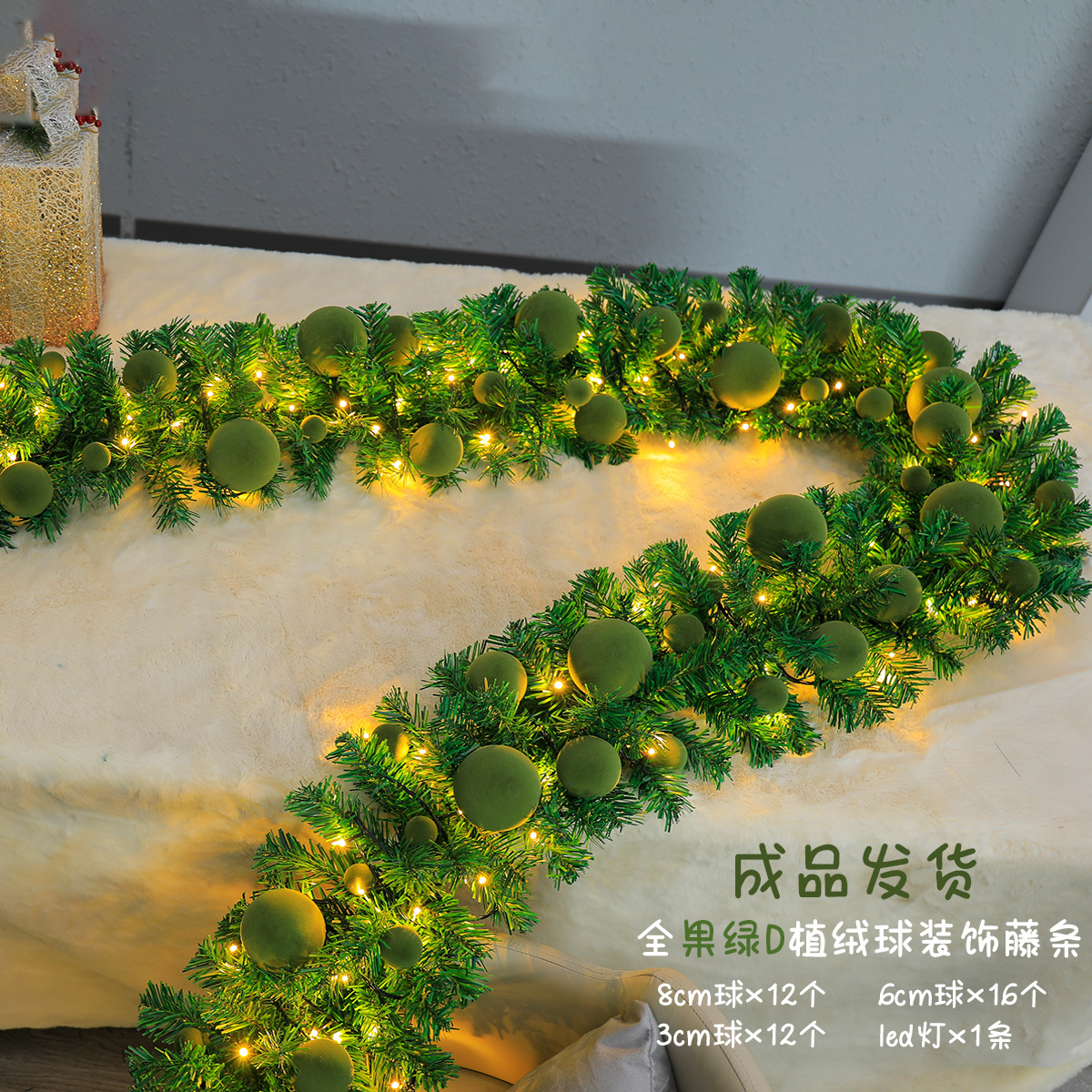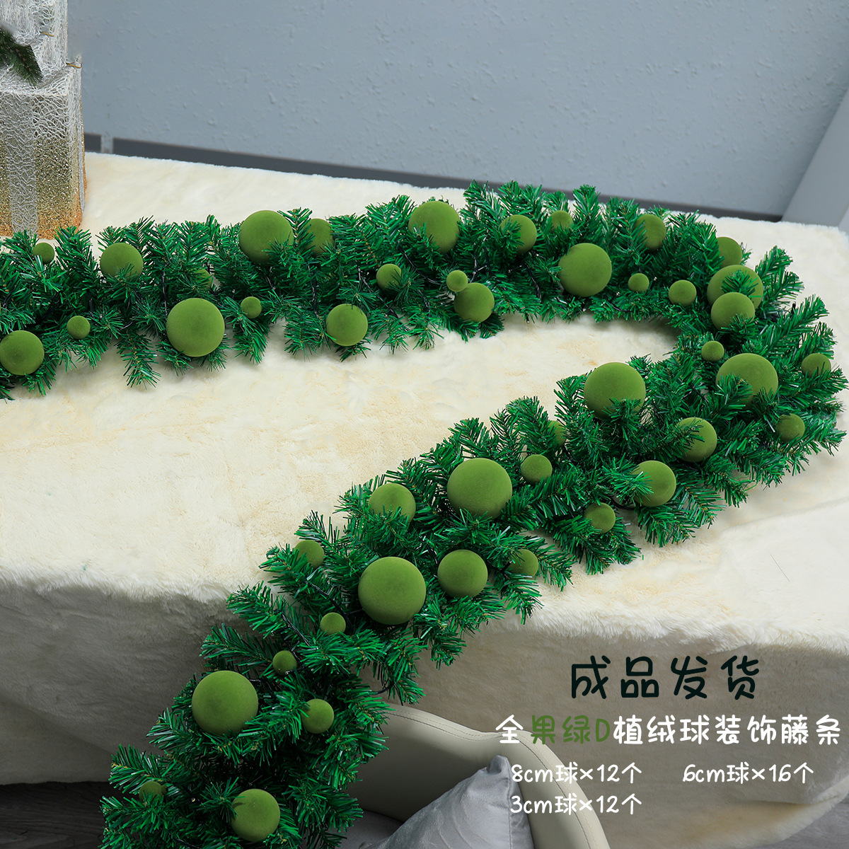 植绒球圣诞装饰藤条酒红色果绿色圣诞节装饰商场酒吧大门橱窗挂件
