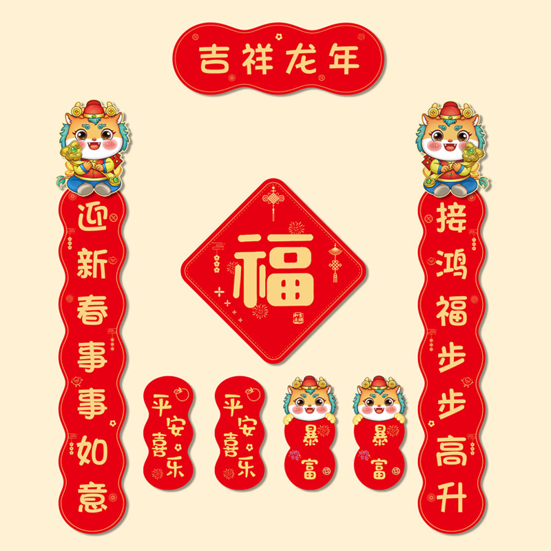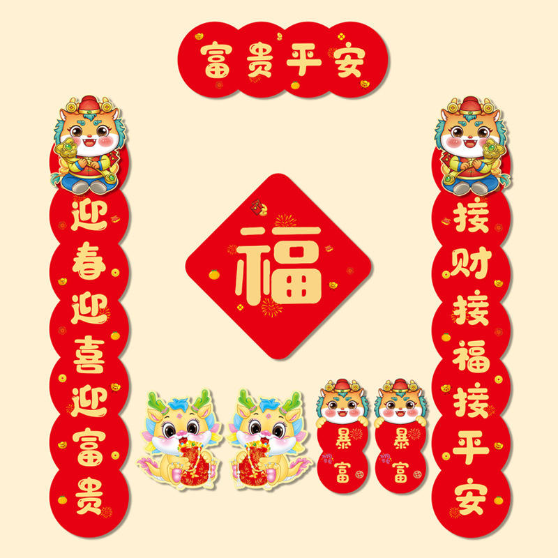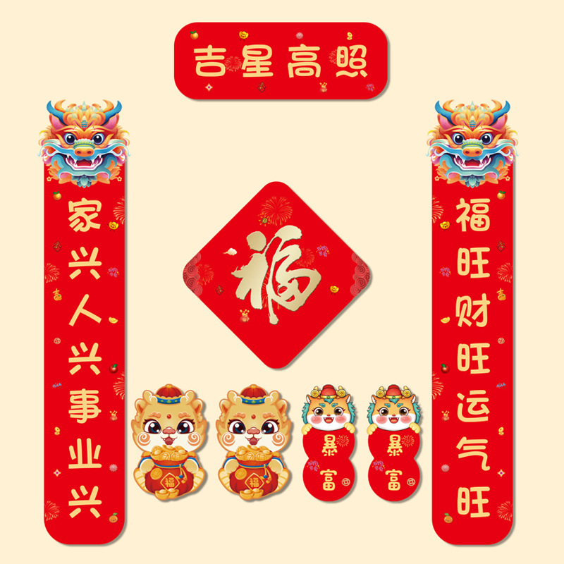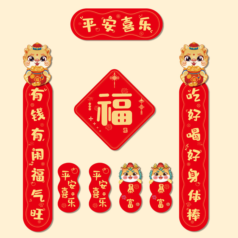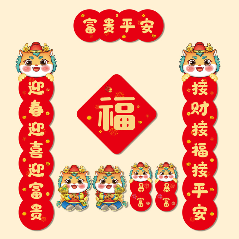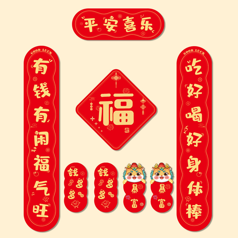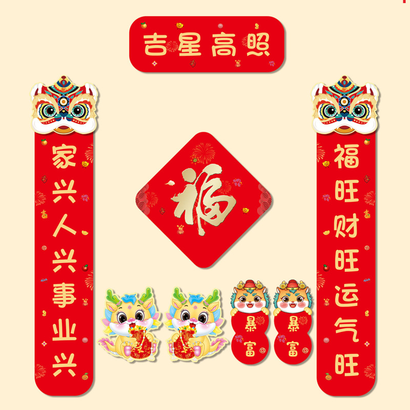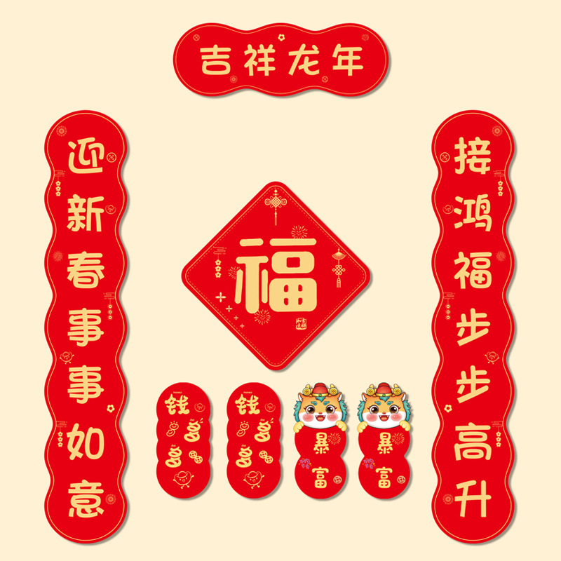 2025磁吸对联定制春节福字烫金大礼包礼盒印logo绸布植绒春联定做