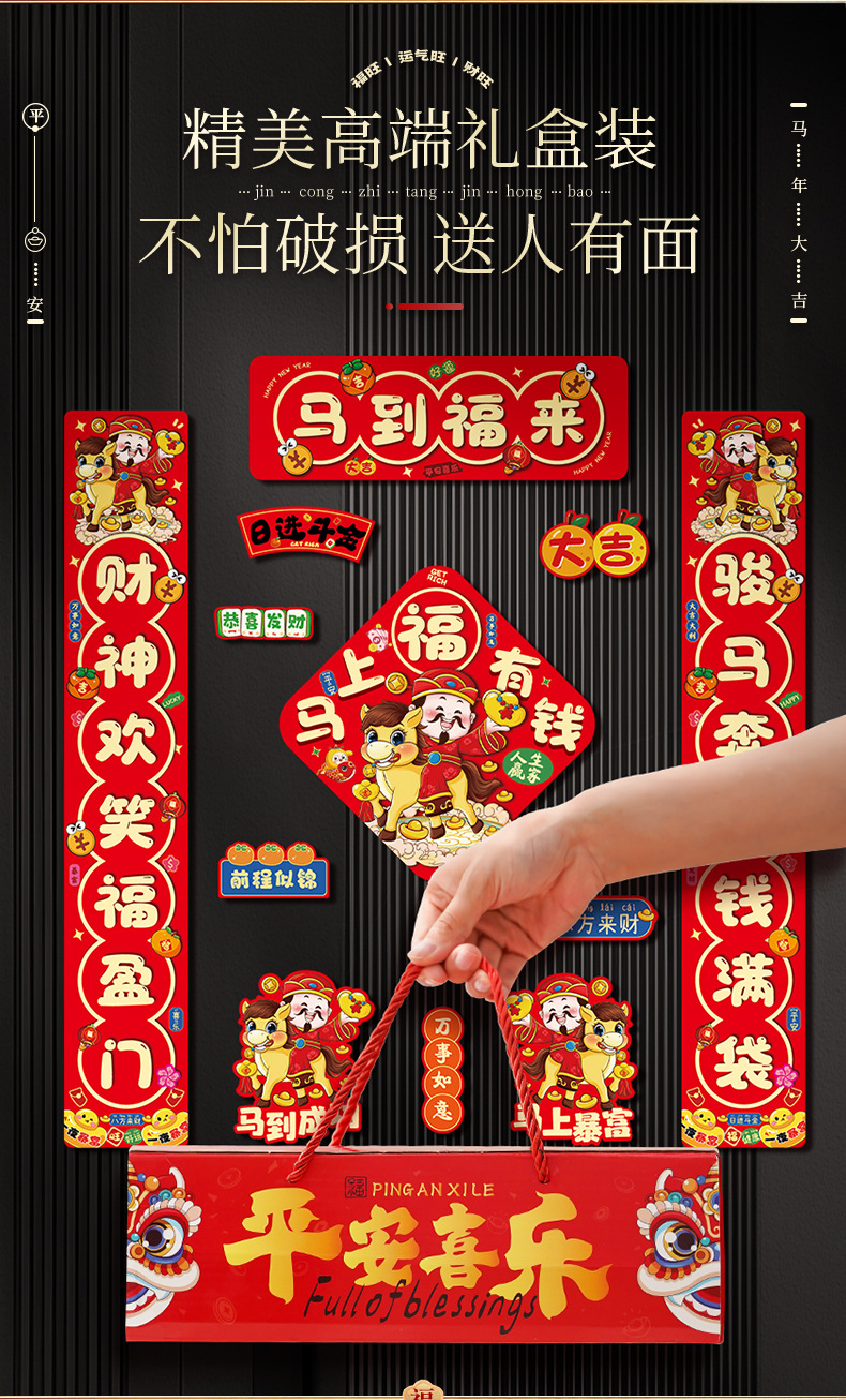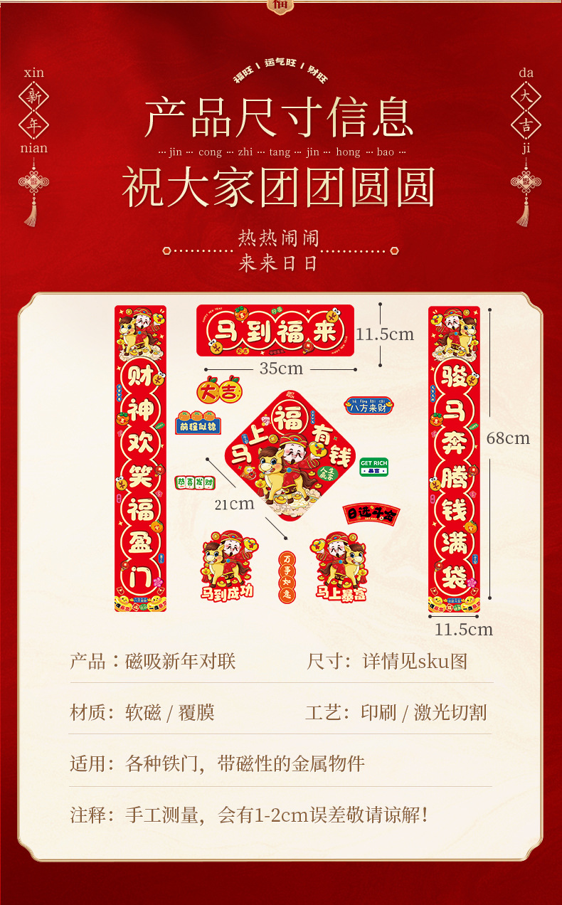 magnetic couplet golden horse blessing [14-piece set]-gift box(磁吸对联┊金马接福【14件套】-礼盒装) USD $1.57 4976 set available