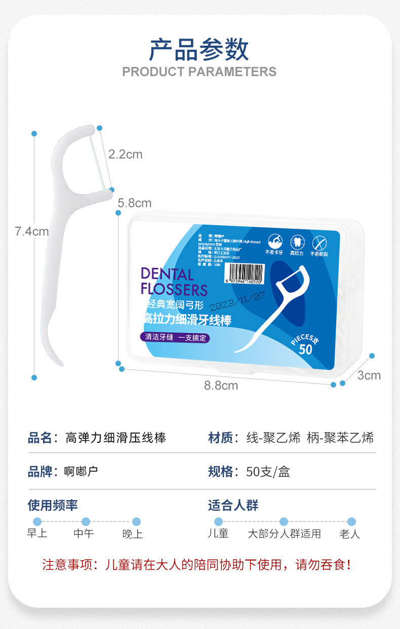 专供出口牙线50支盒装便携清洁牙齿家用牙签超细不伤牙龈牙线棒