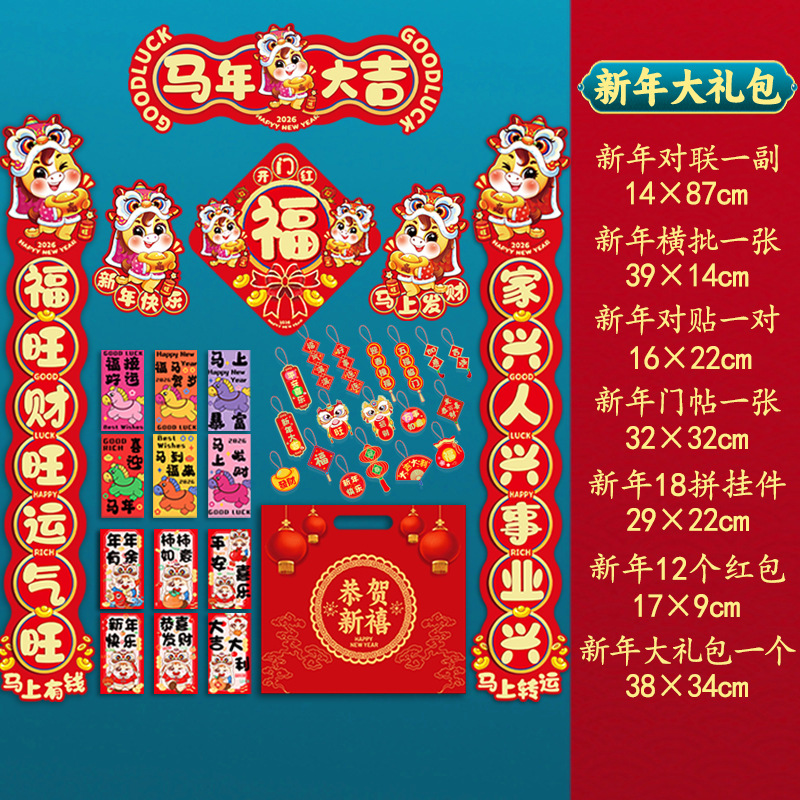 2026马年对联包装袋子手提礼袋春节福字空袋福袋春联对联大礼包
