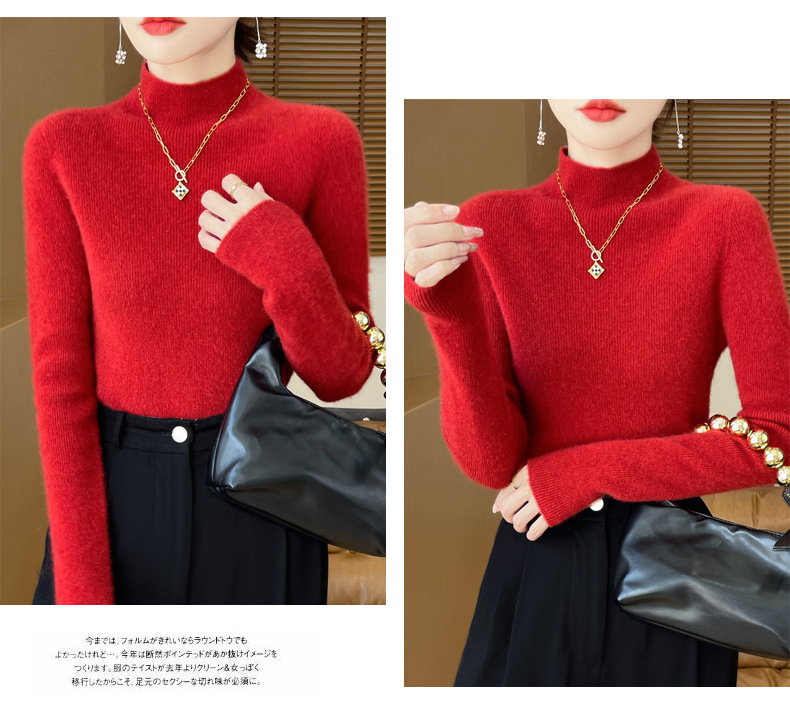 一线成衣半高领毛衣无缝一体打底衫女秋冬简约修身长袖内搭针织衫