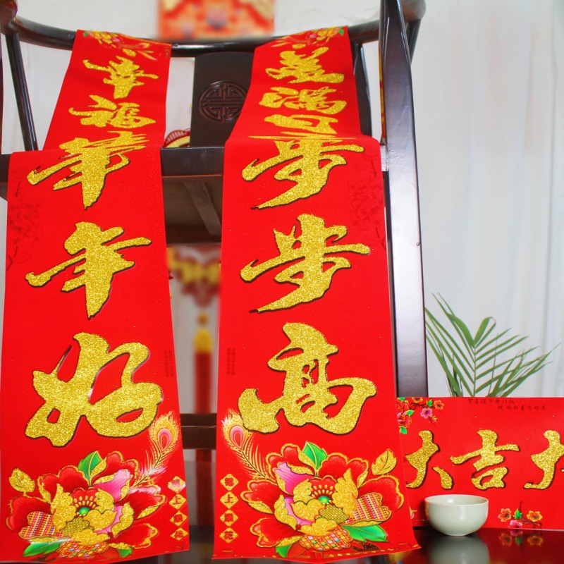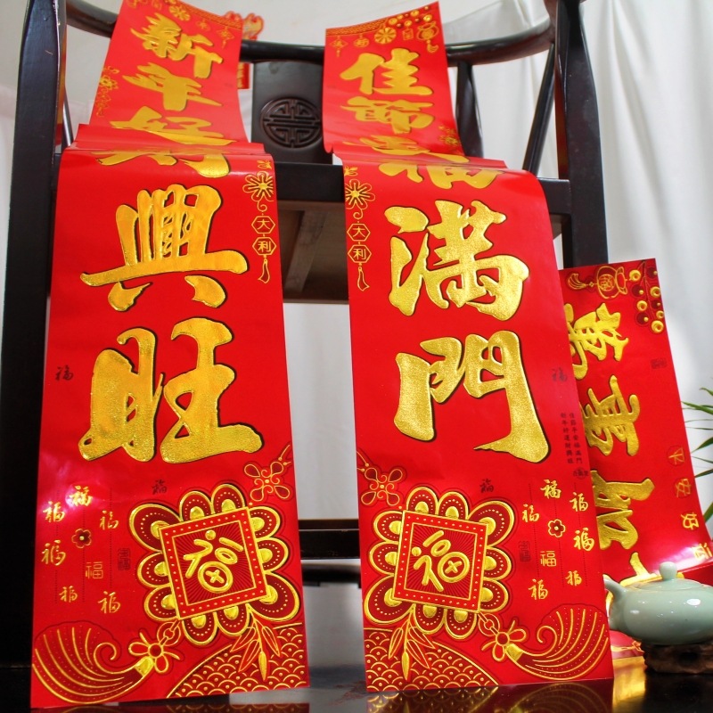 马年对联春联批发春节植绒对联高档金粉烫金春联批货大礼包定制
