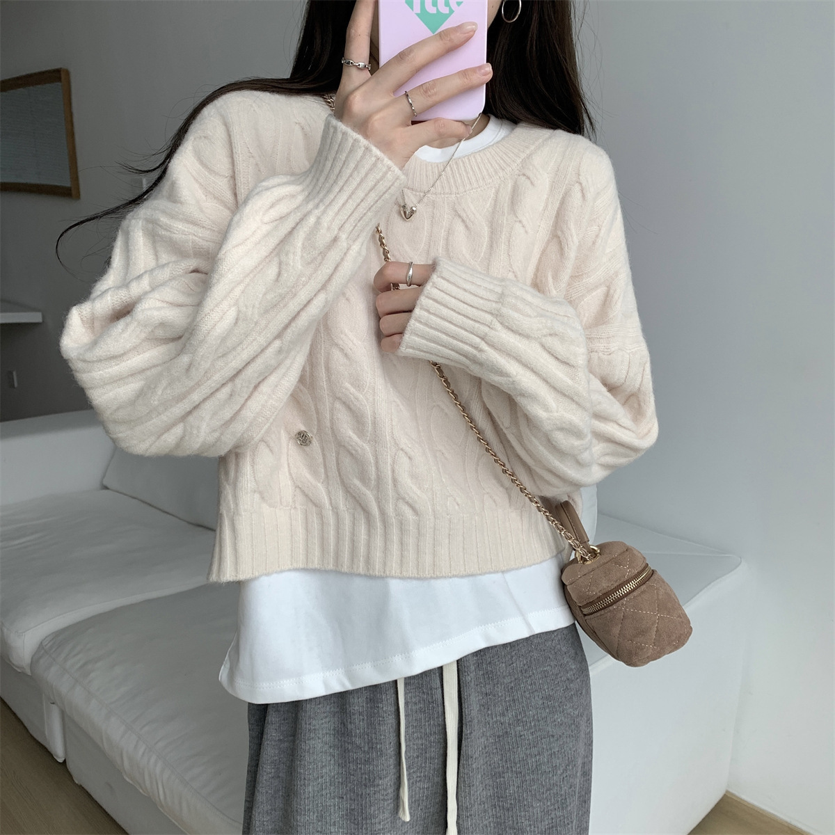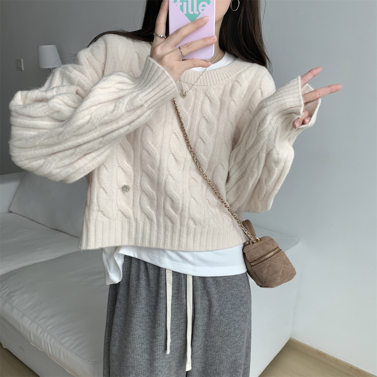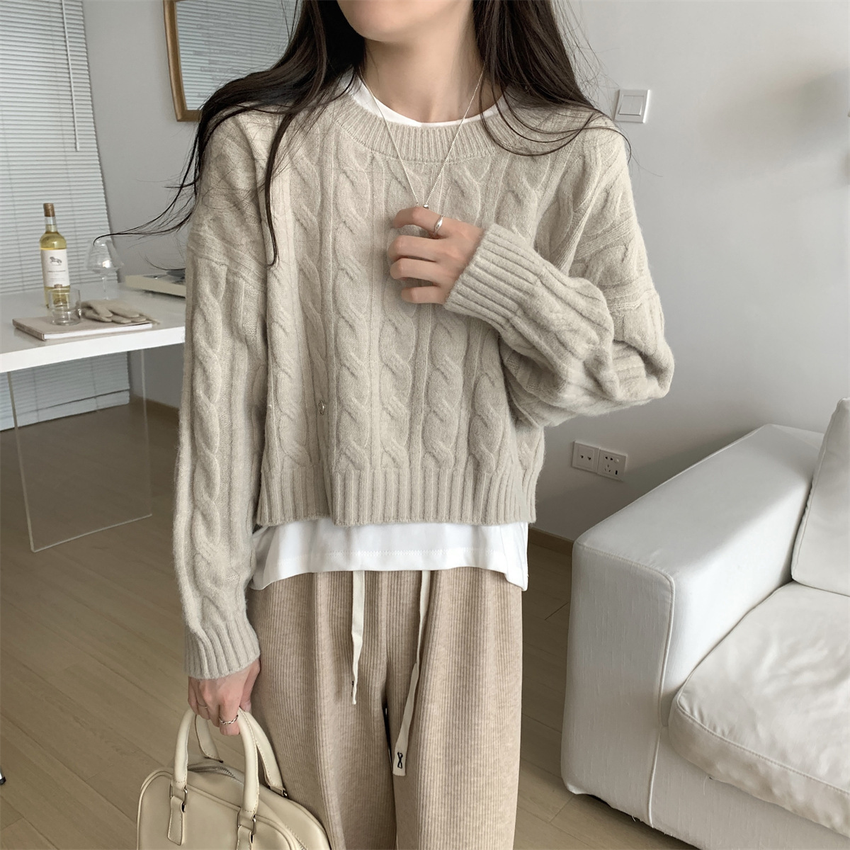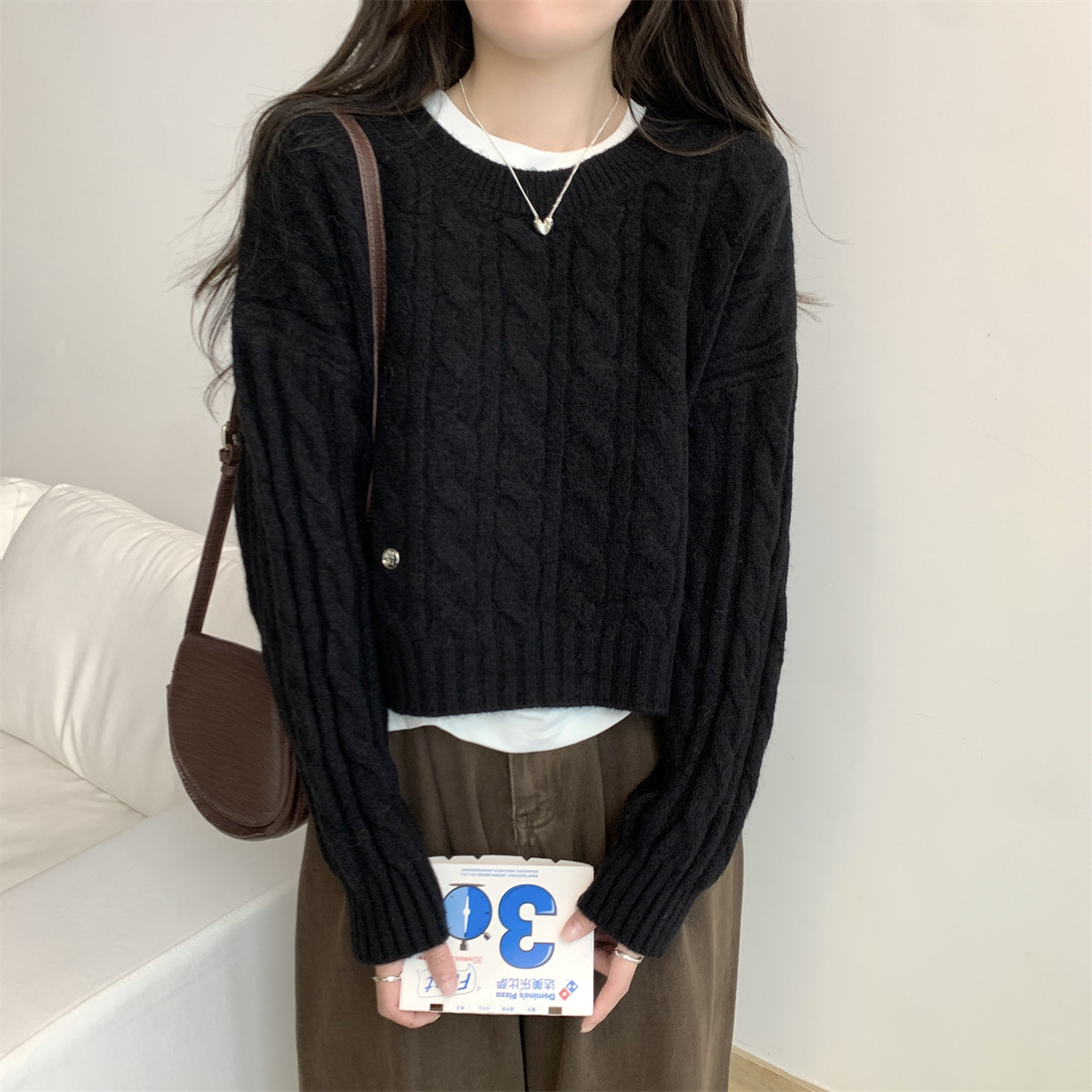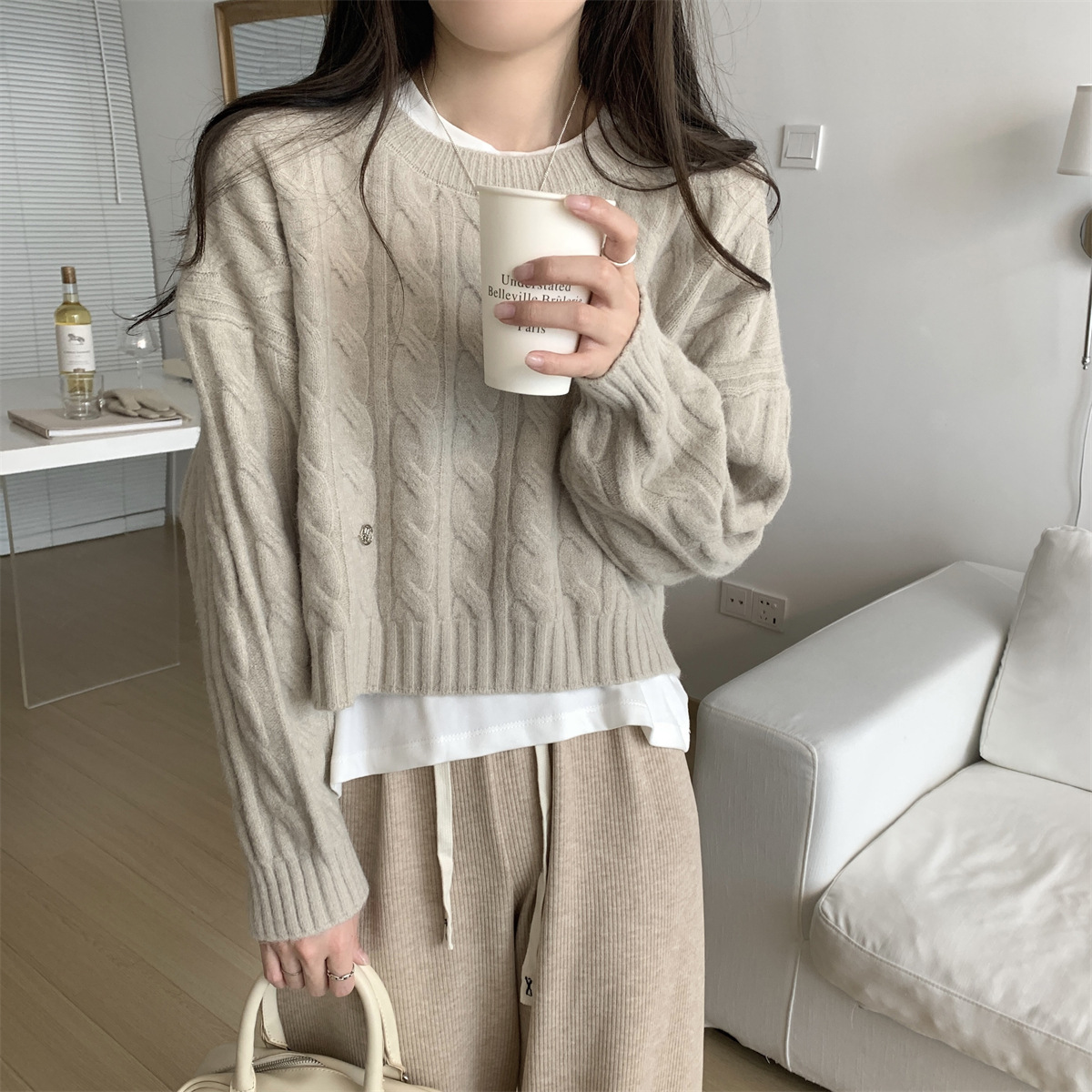 2024秋冬时尚新款圆领麻花针织衫上衣内搭慵懒软糯女毛衣外套女装