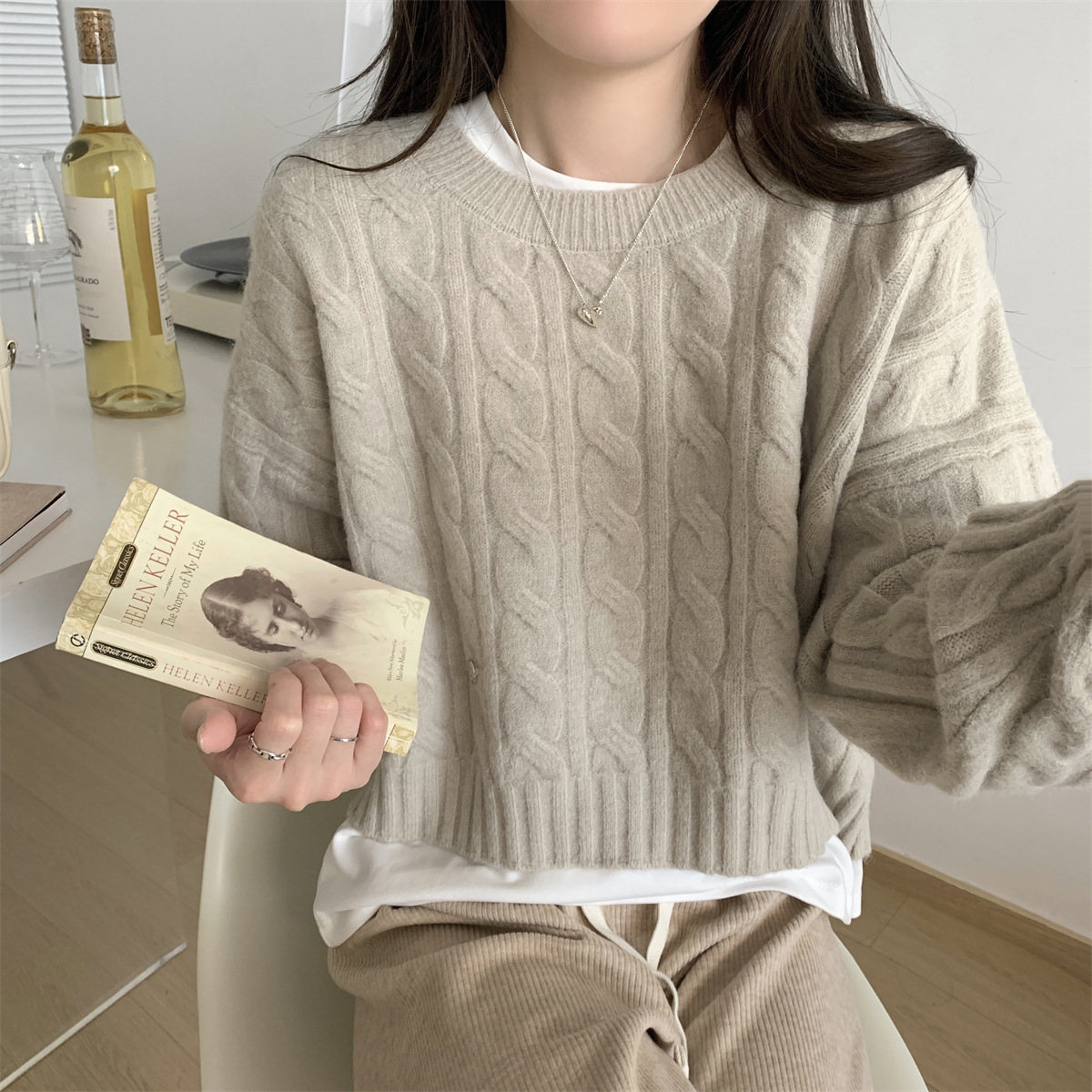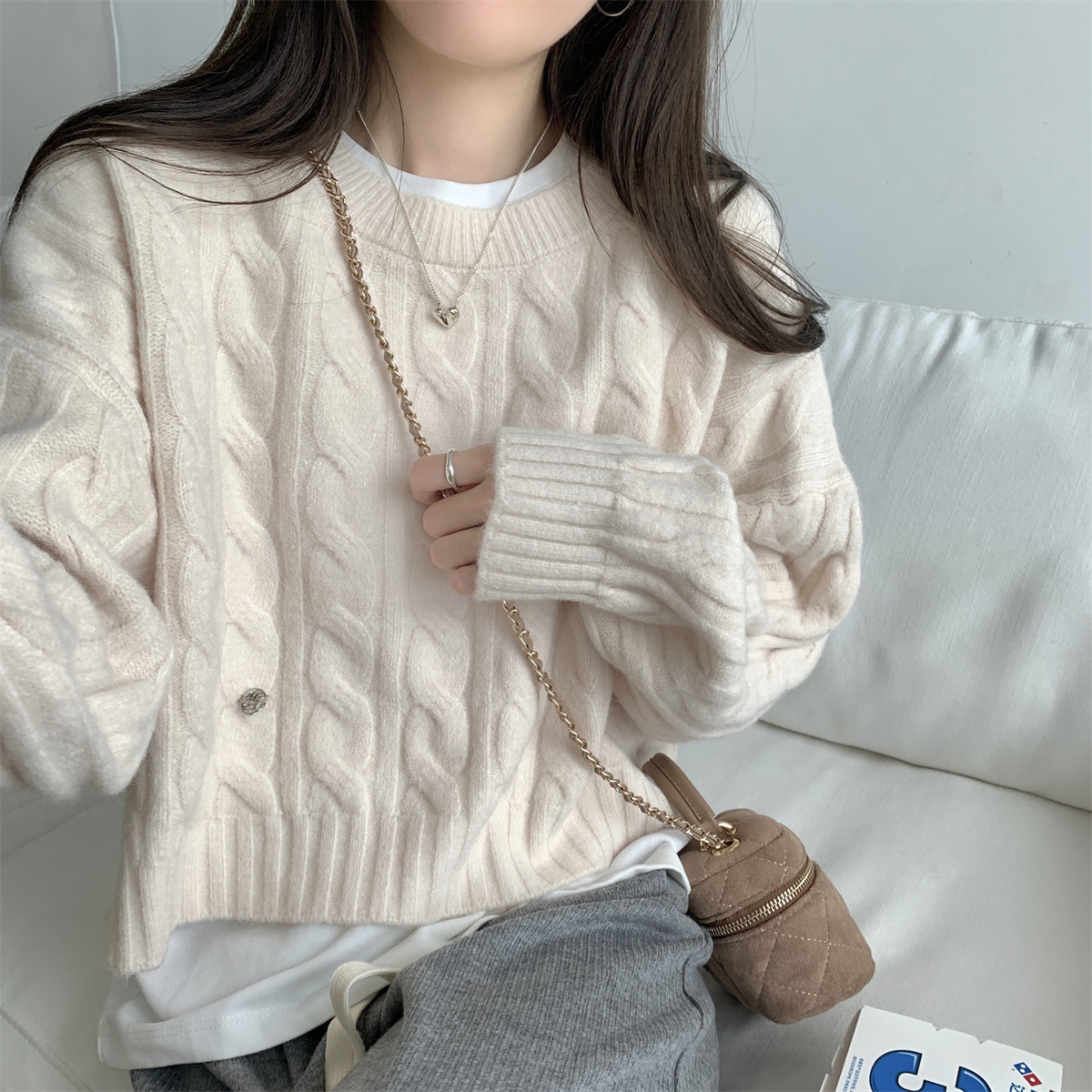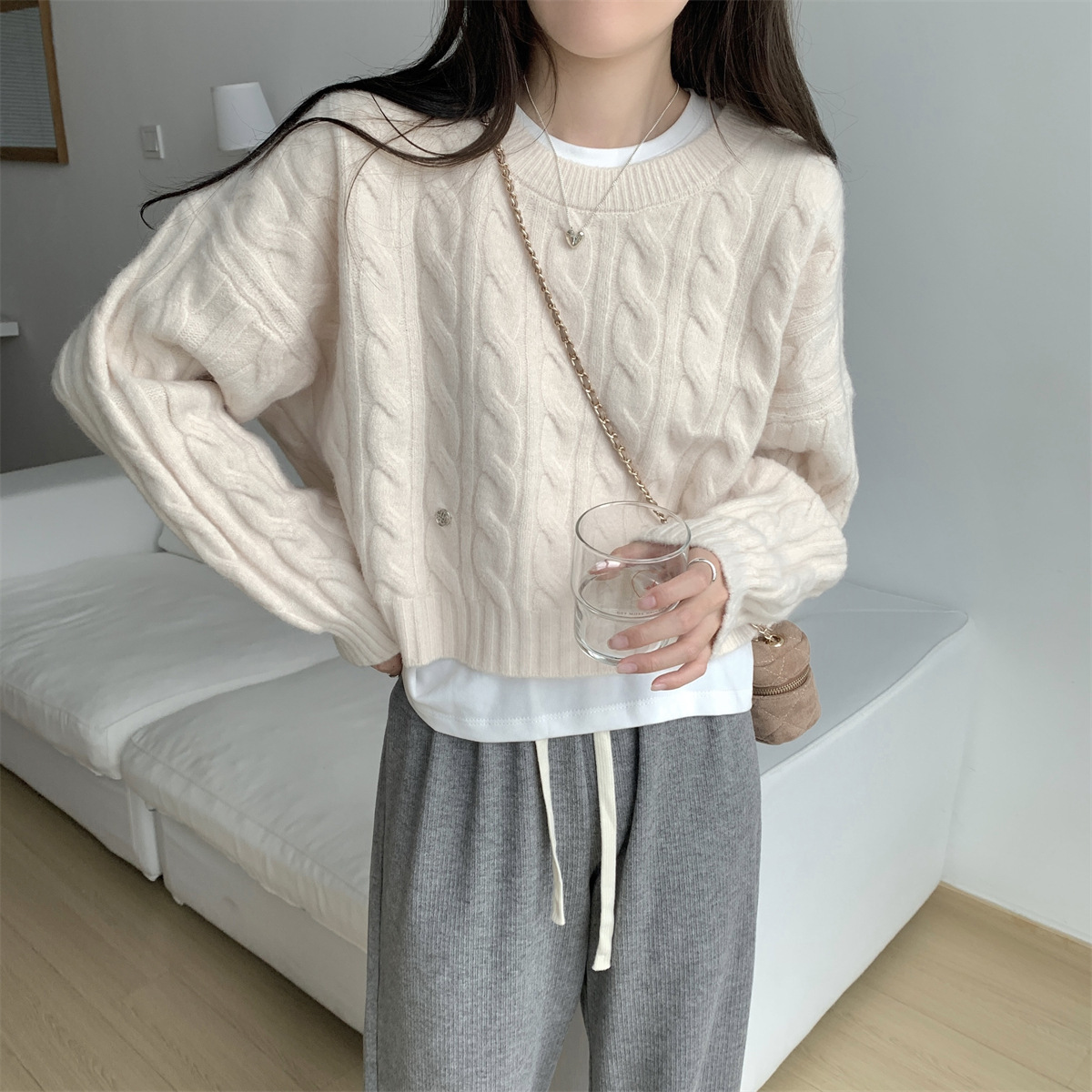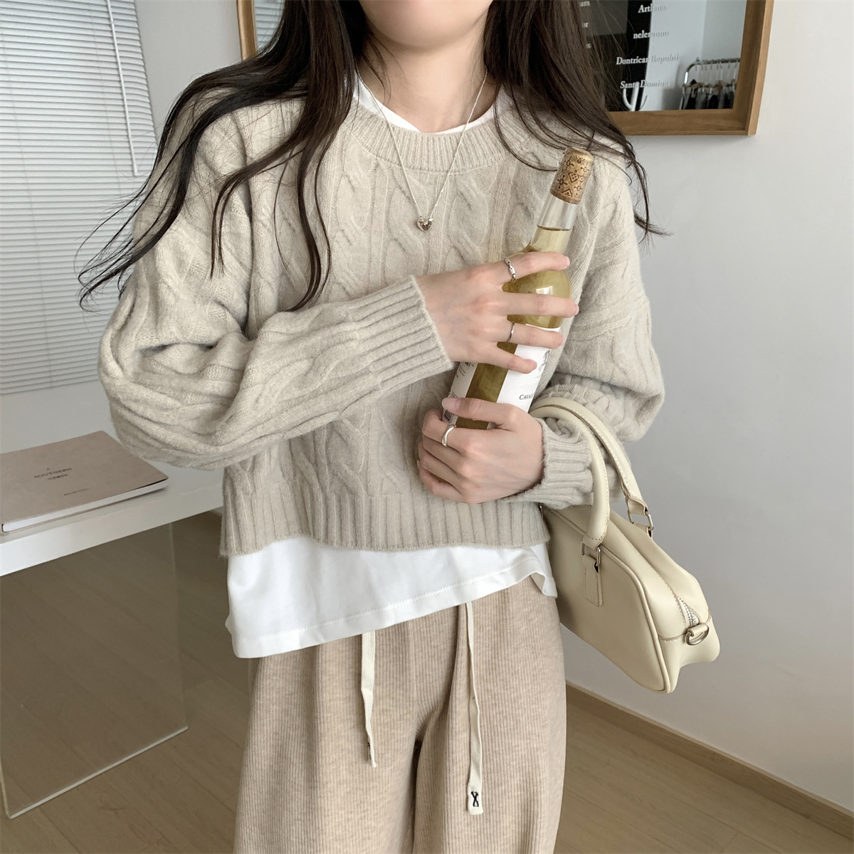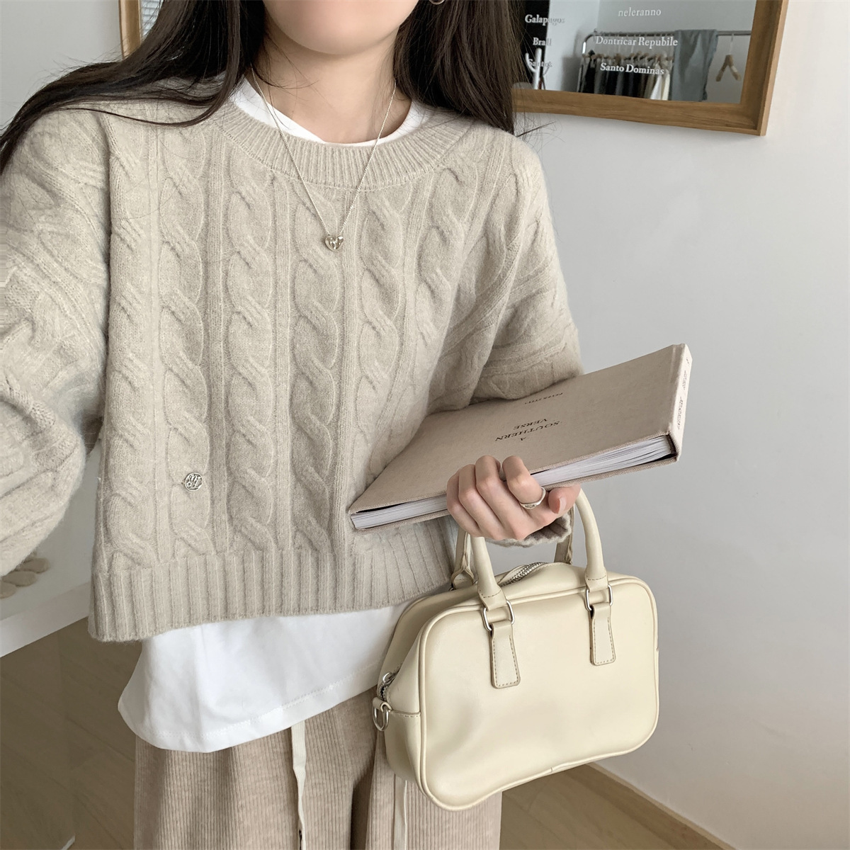 2024秋冬时尚新款圆领麻花针织衫上衣内搭慵懒软糯女毛衣外套女装