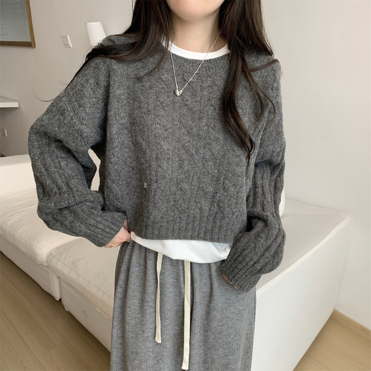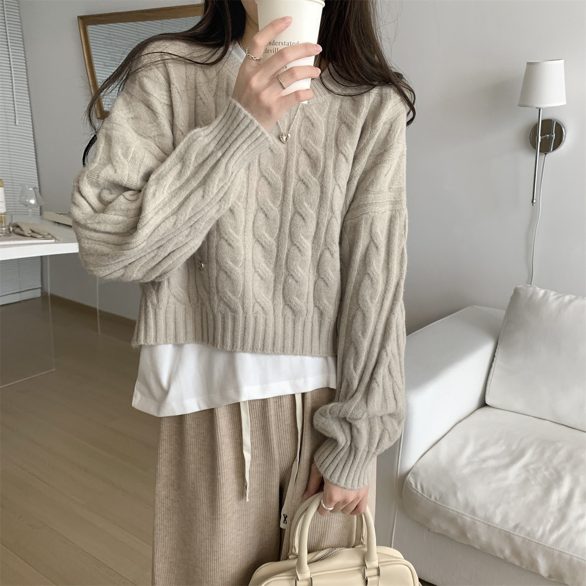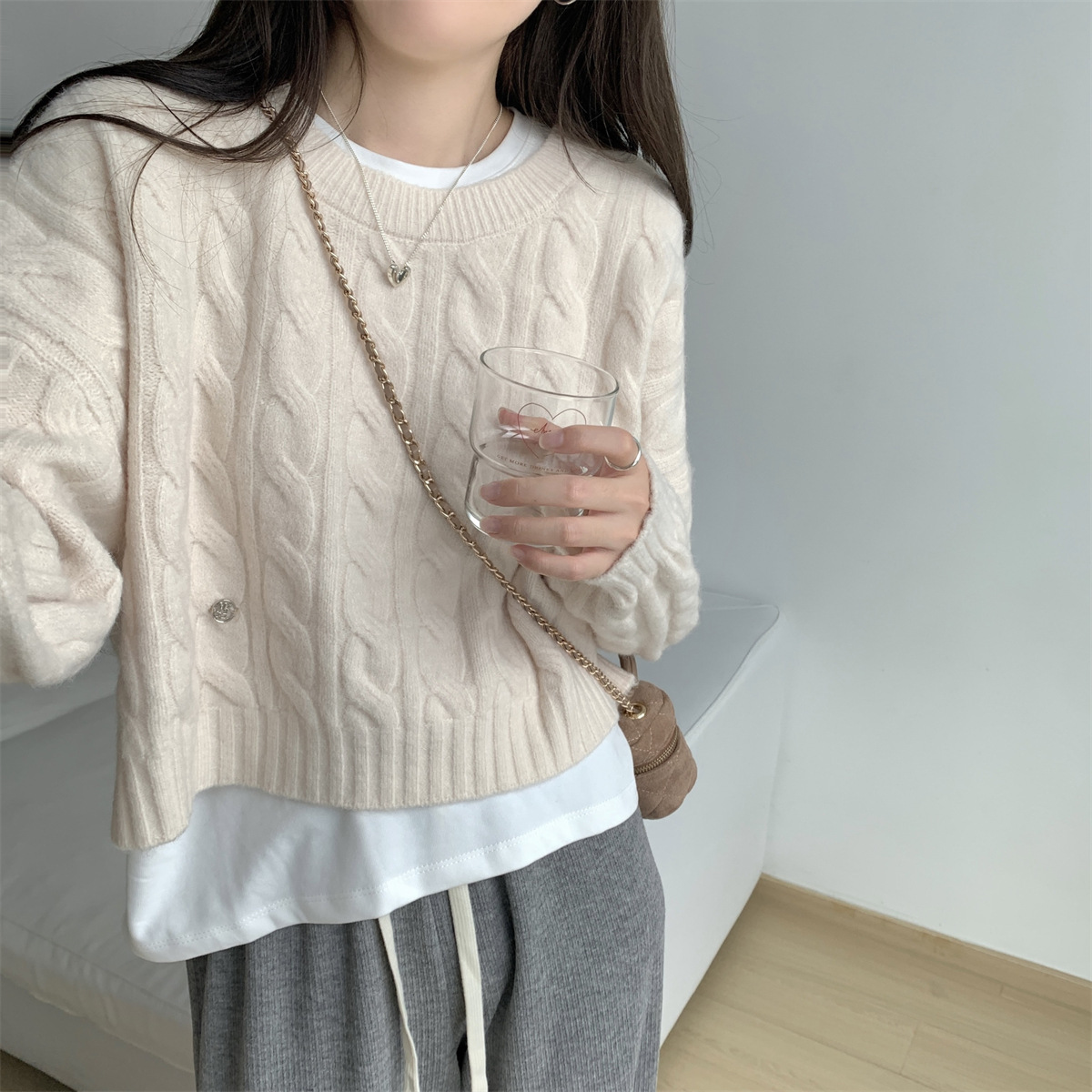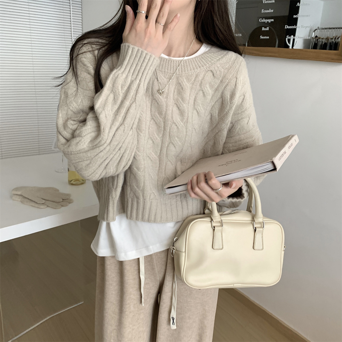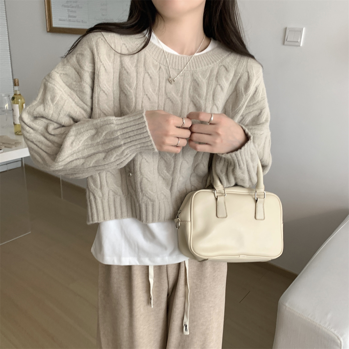 2024秋冬时尚新款圆领麻花针织衫上衣内搭慵懒软糯女毛衣外套女装