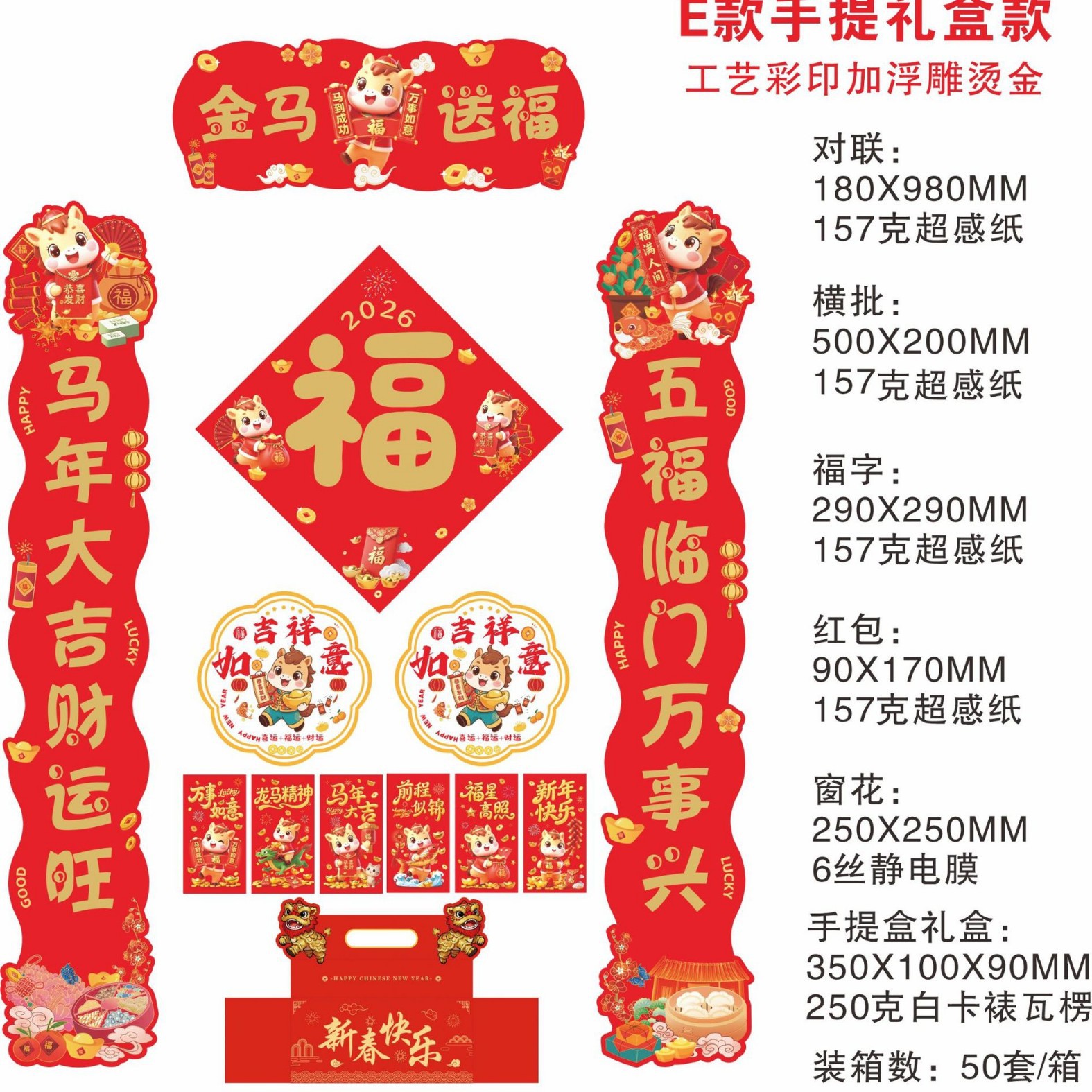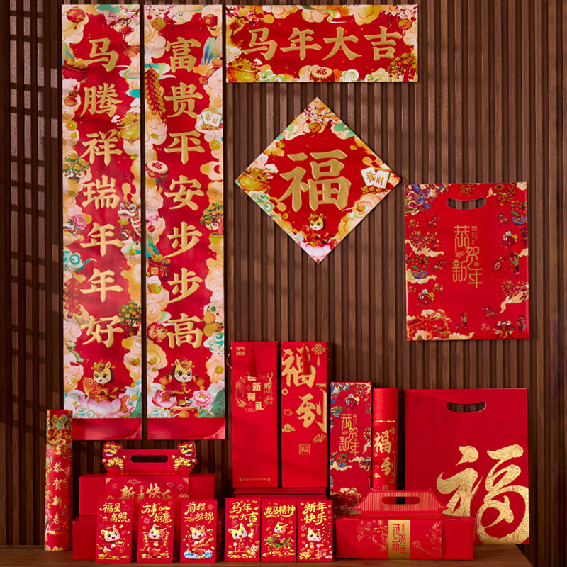 2026马对联定制故宫异形烫金大礼包专版植绒广告春联礼盒印logo