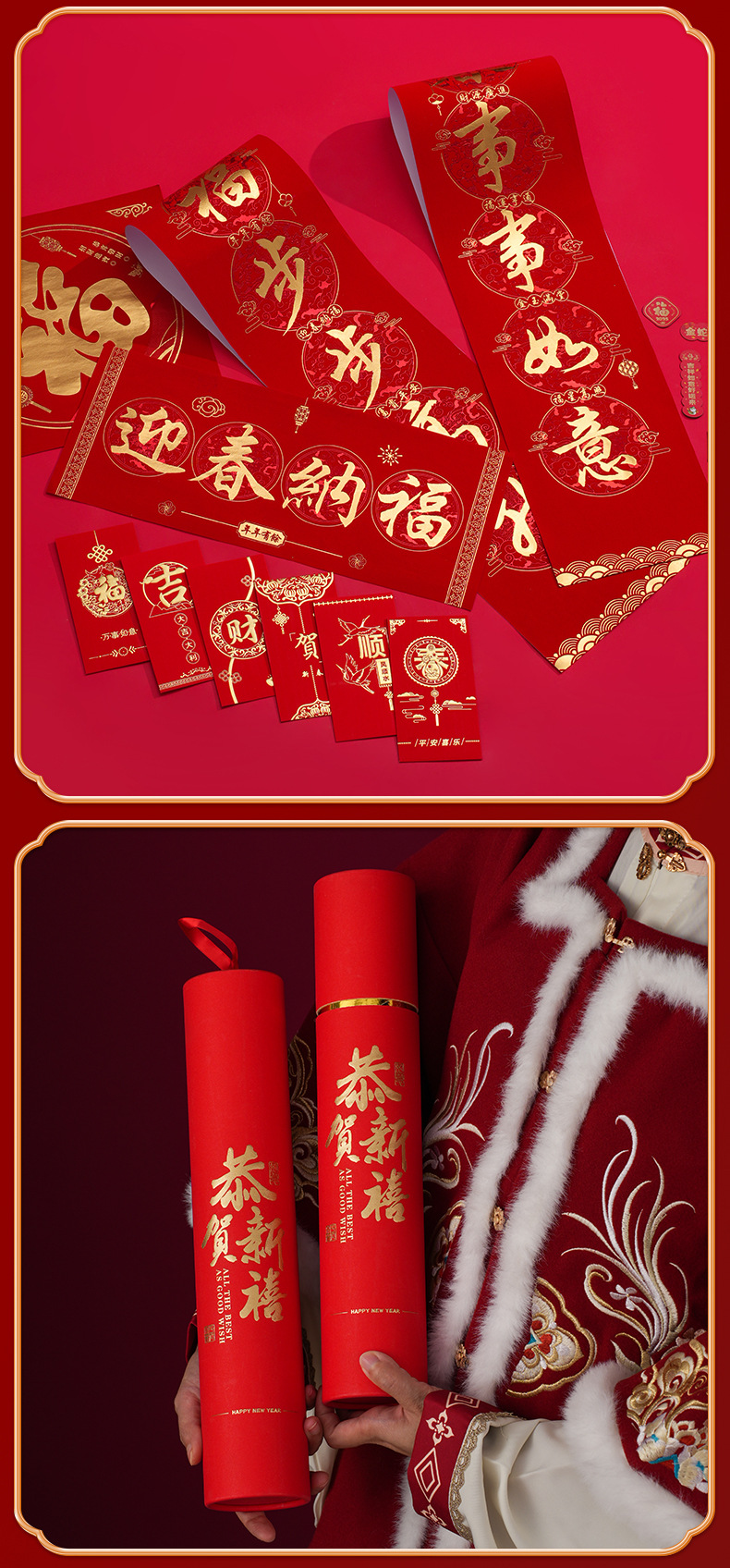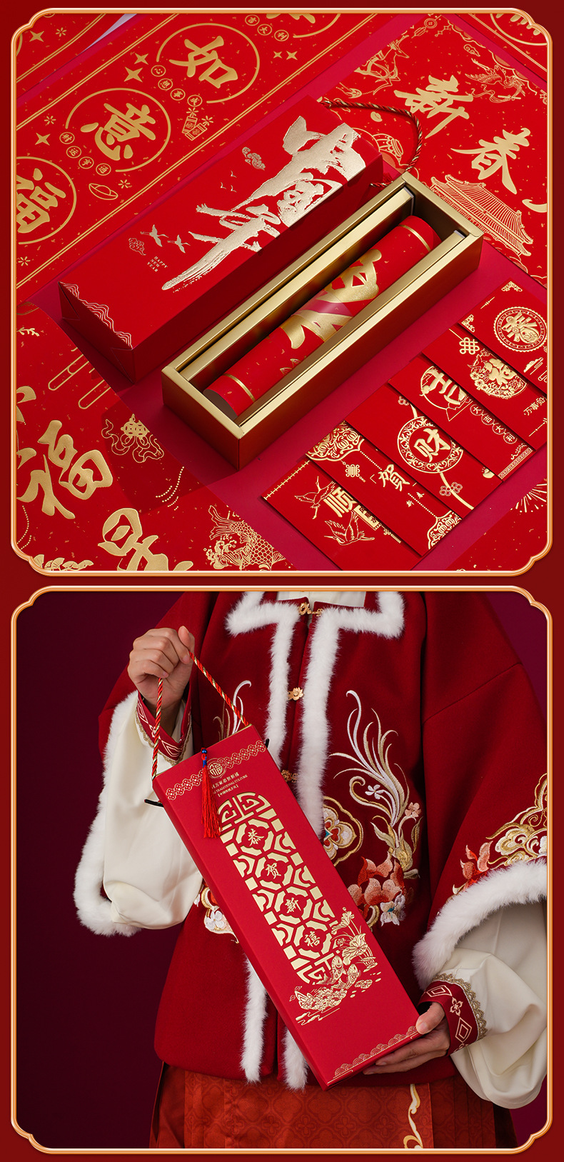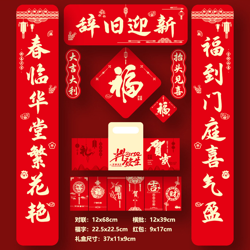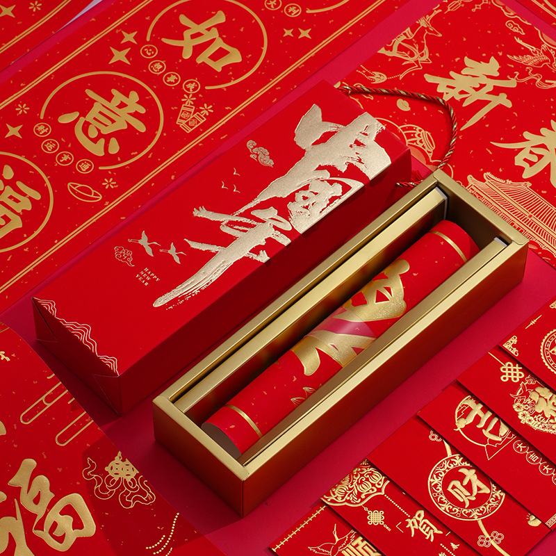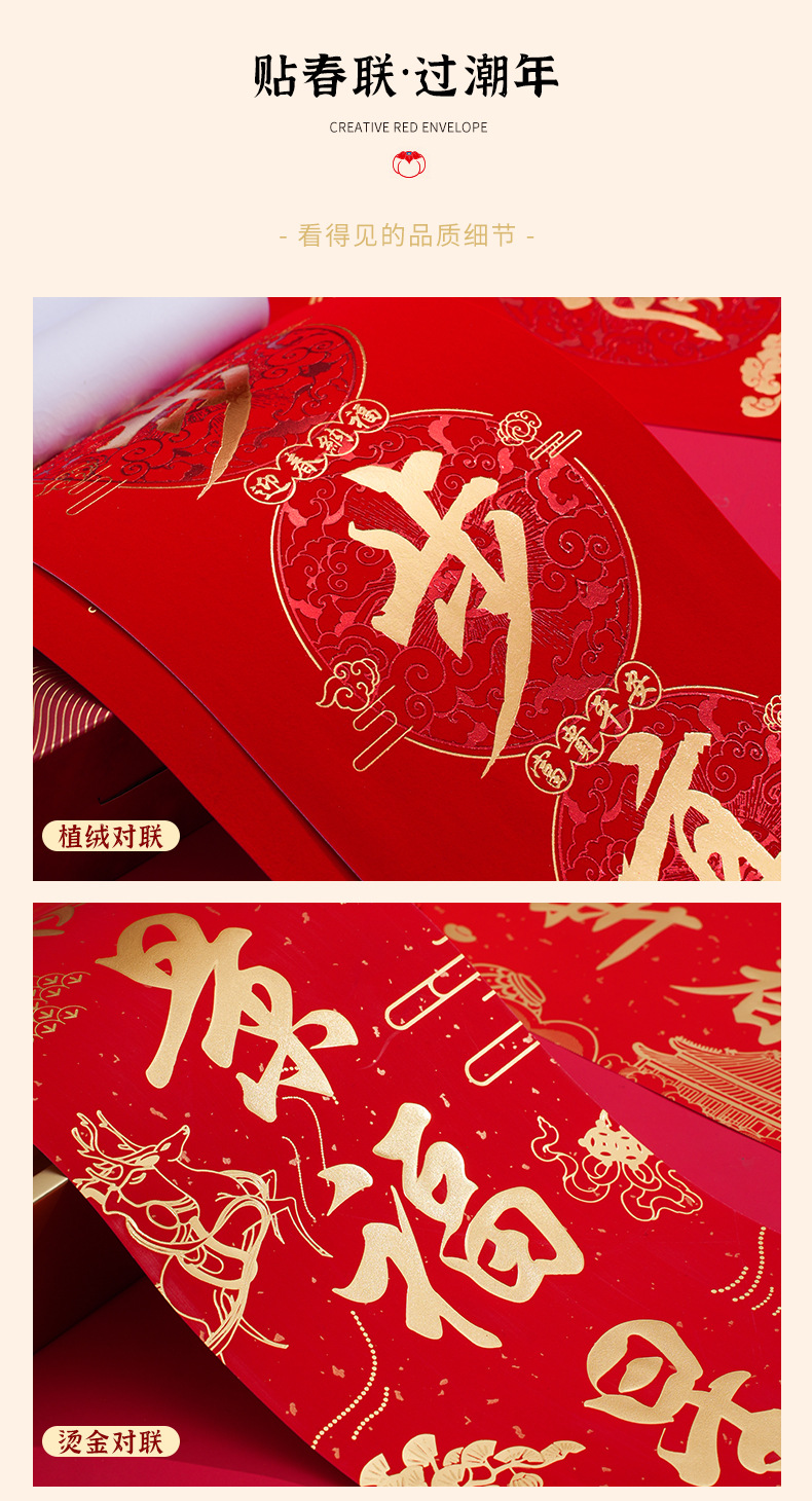 2026植绒对联定制马年防晒烫金礼盒春节礼包套装丝绸春联定做logo